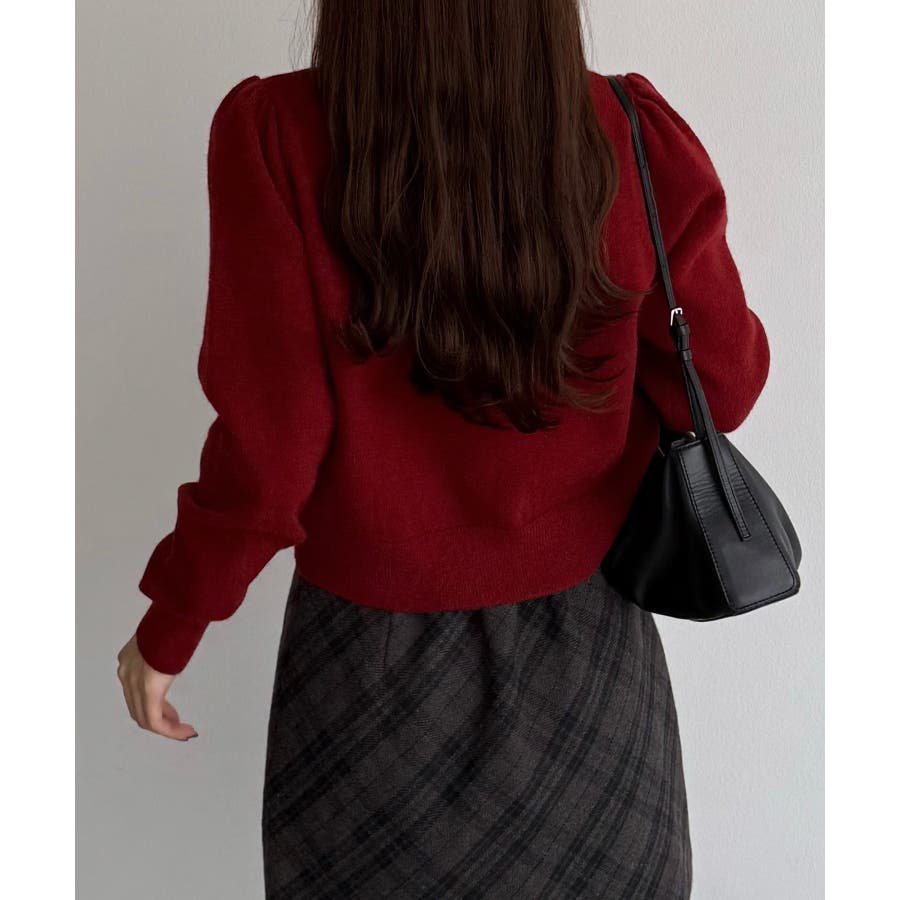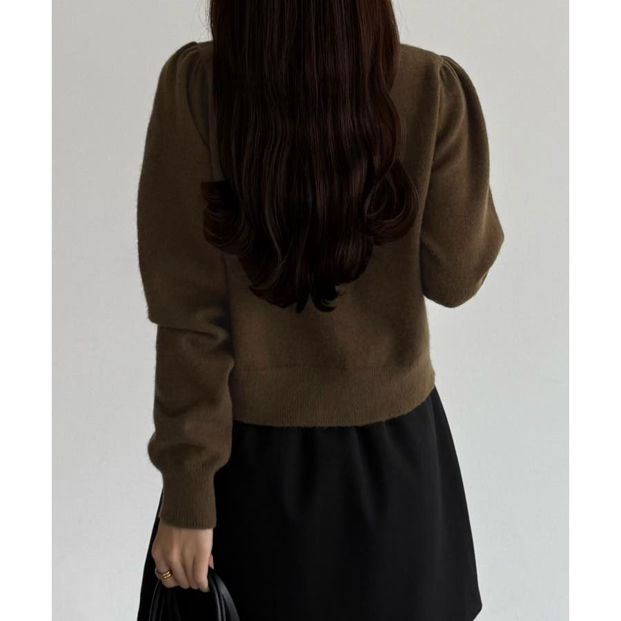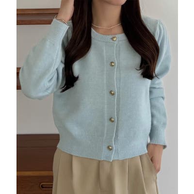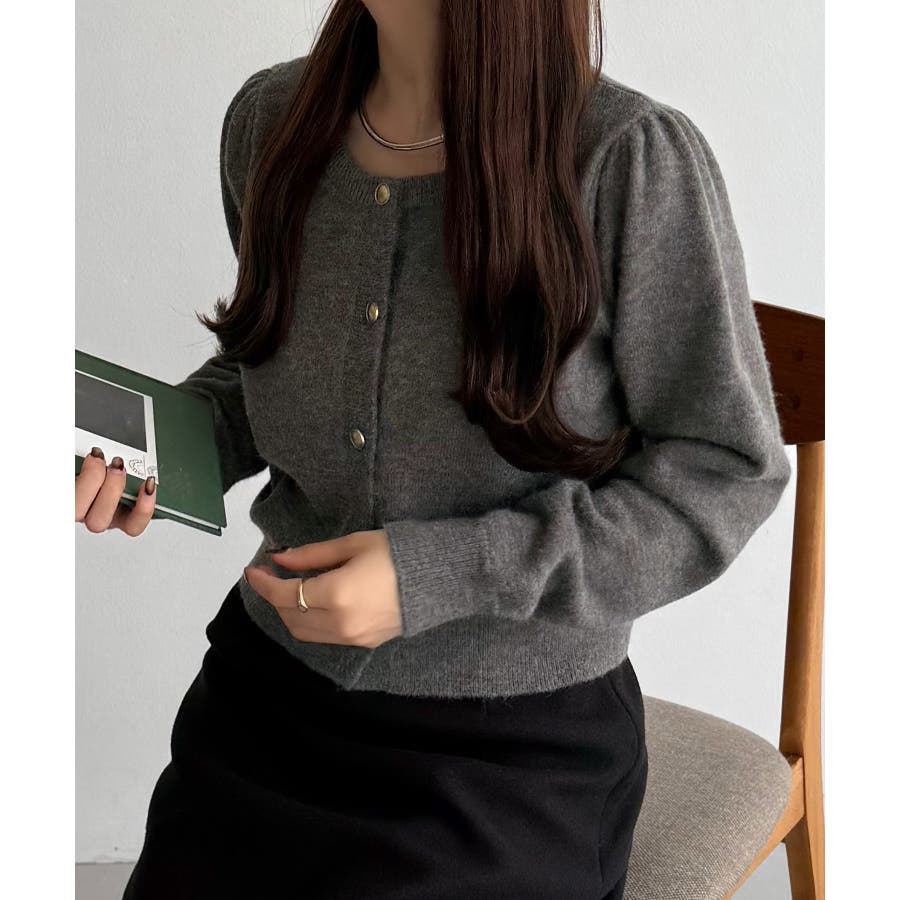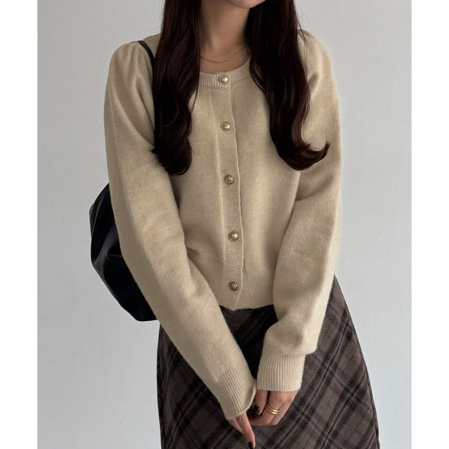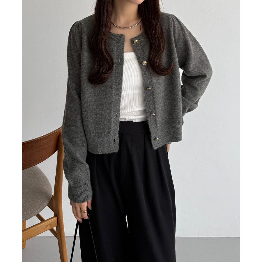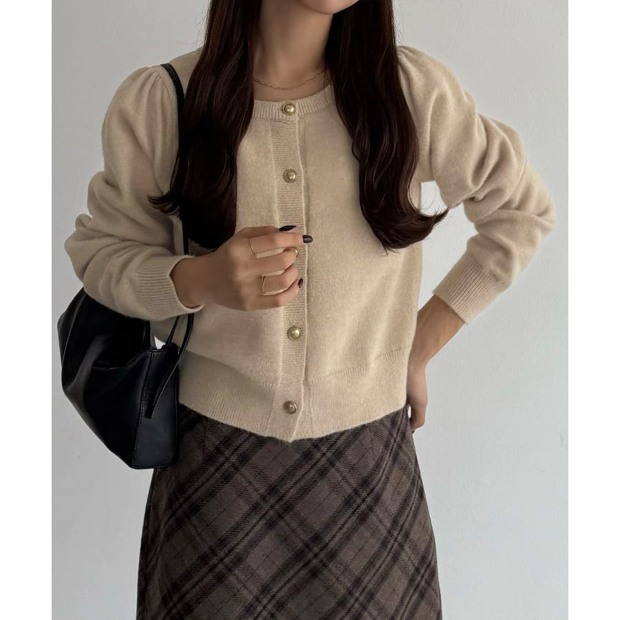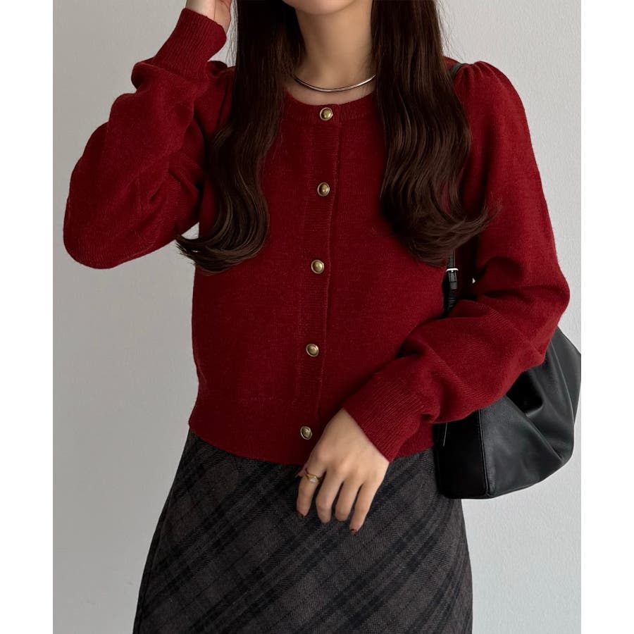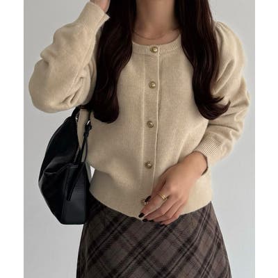 callautia 金ボタンパフスリーブショートニットカーディガン