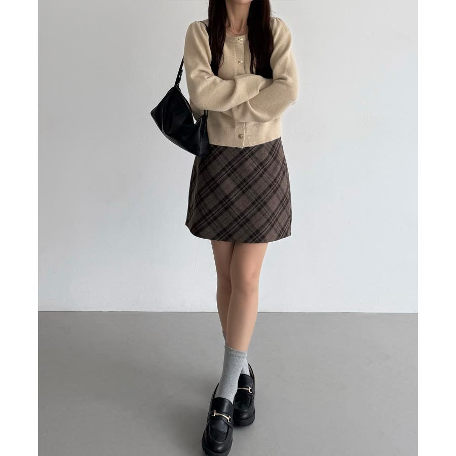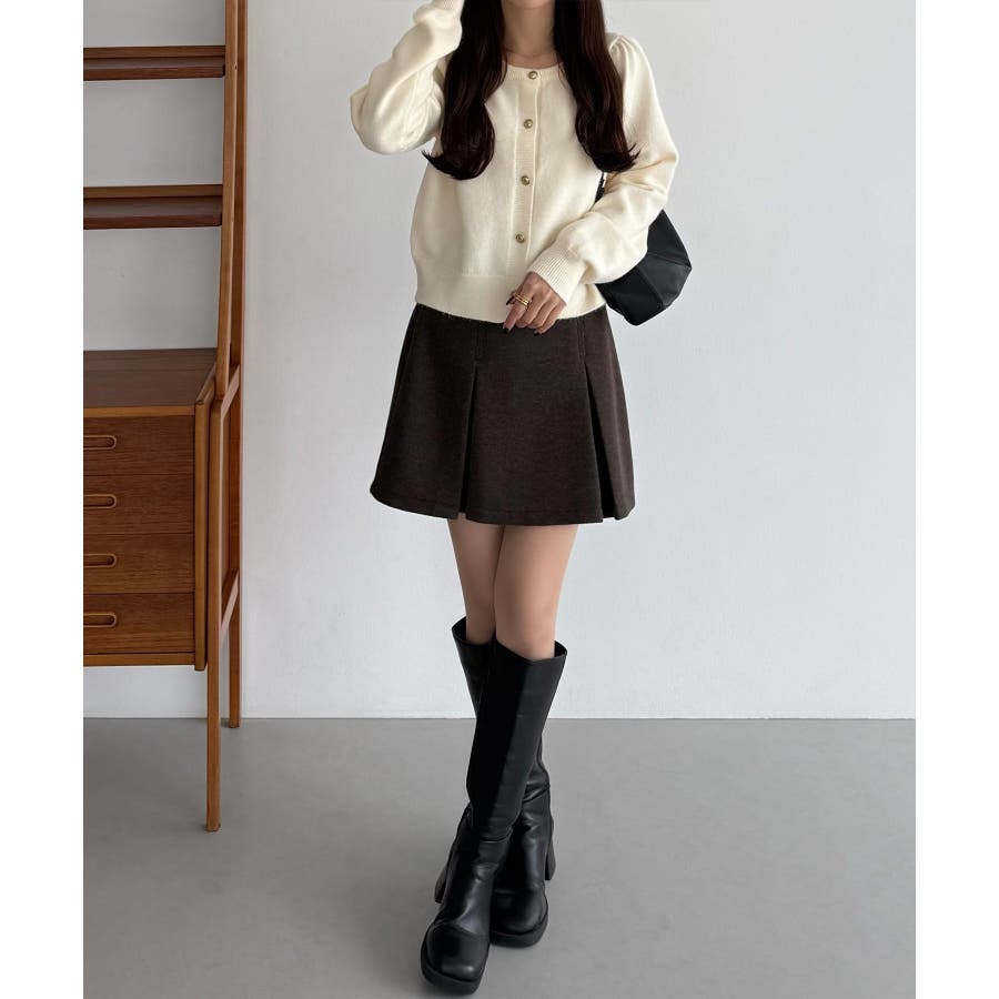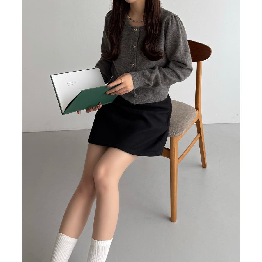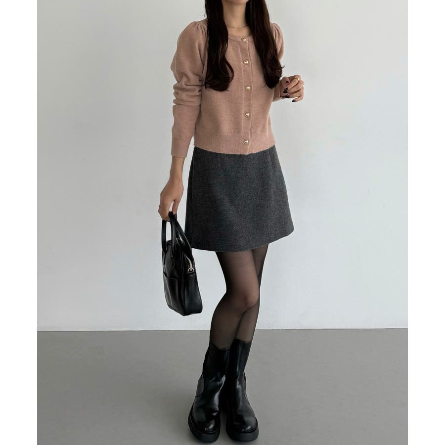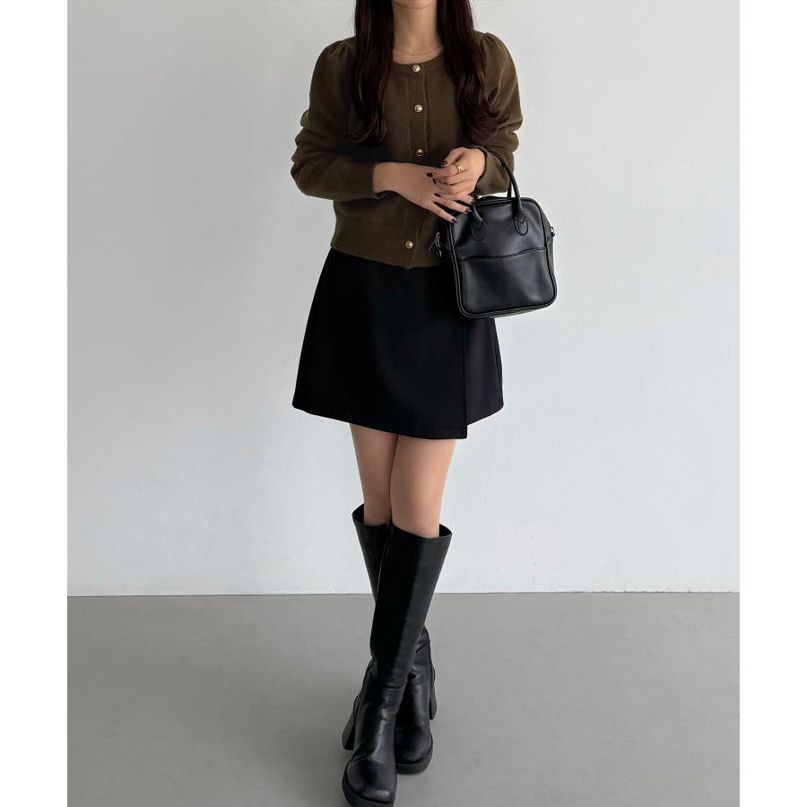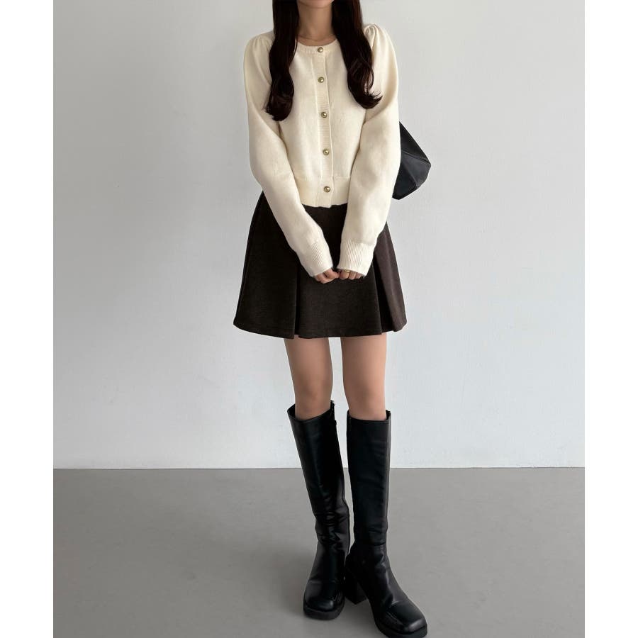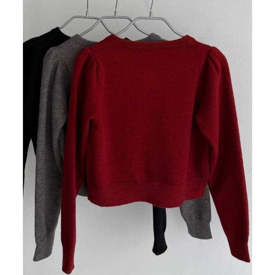 callautia 金ボタンパフスリーブショートニットカーディガン