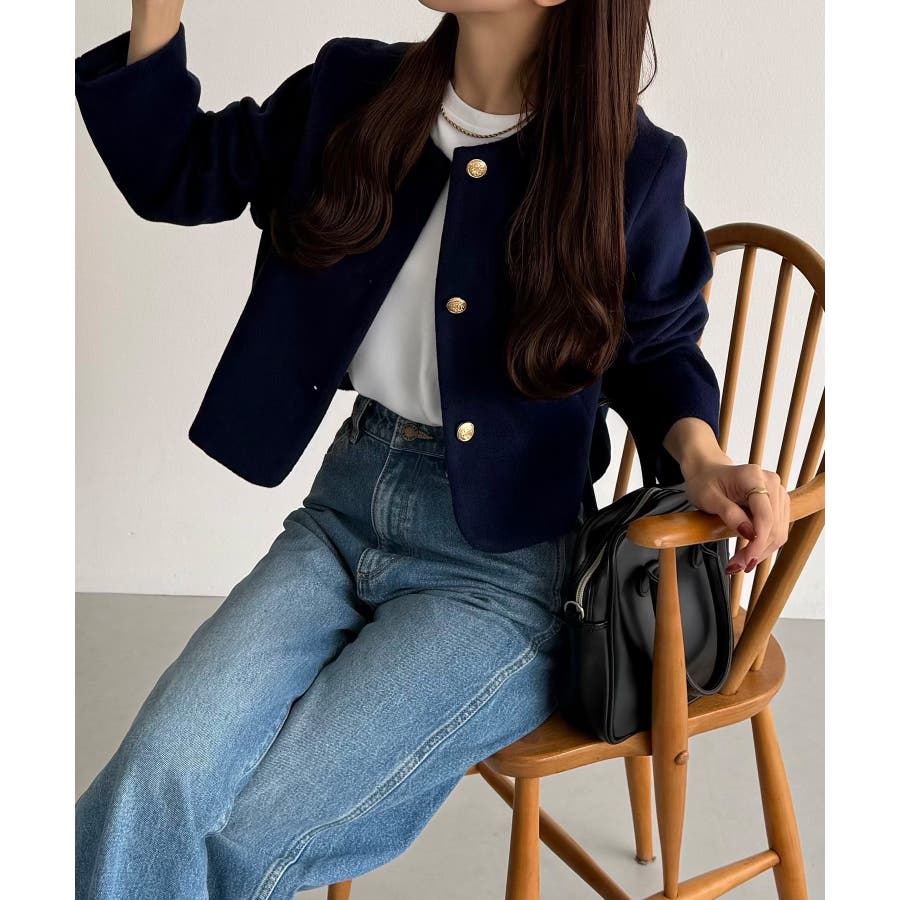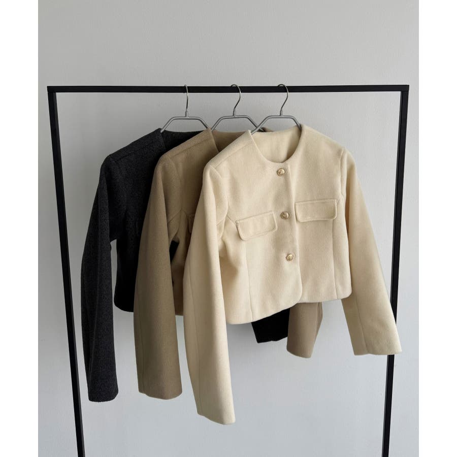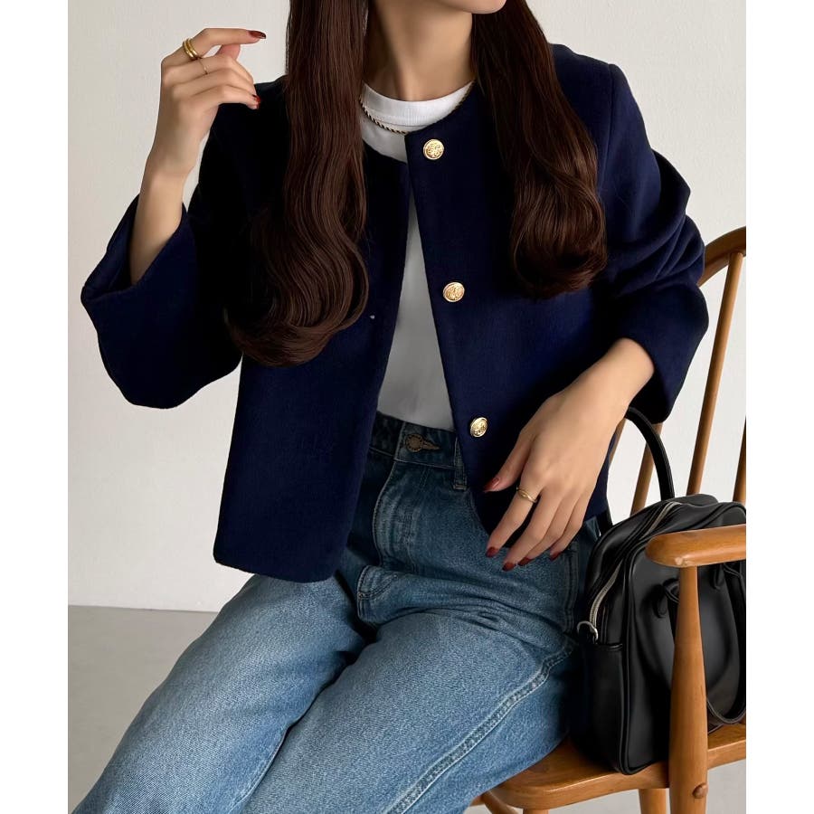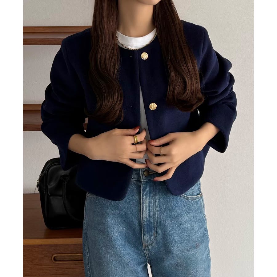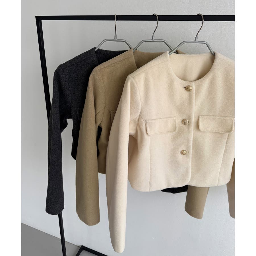 callautia ウールライクゴールドボタンノーカラージャケット