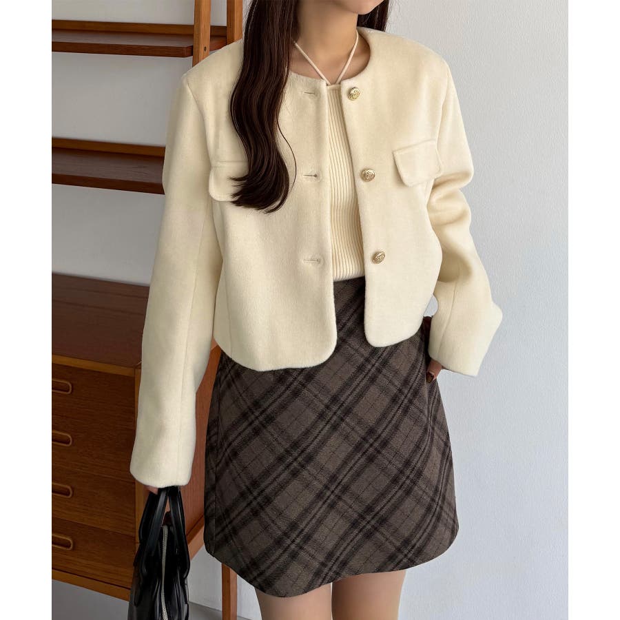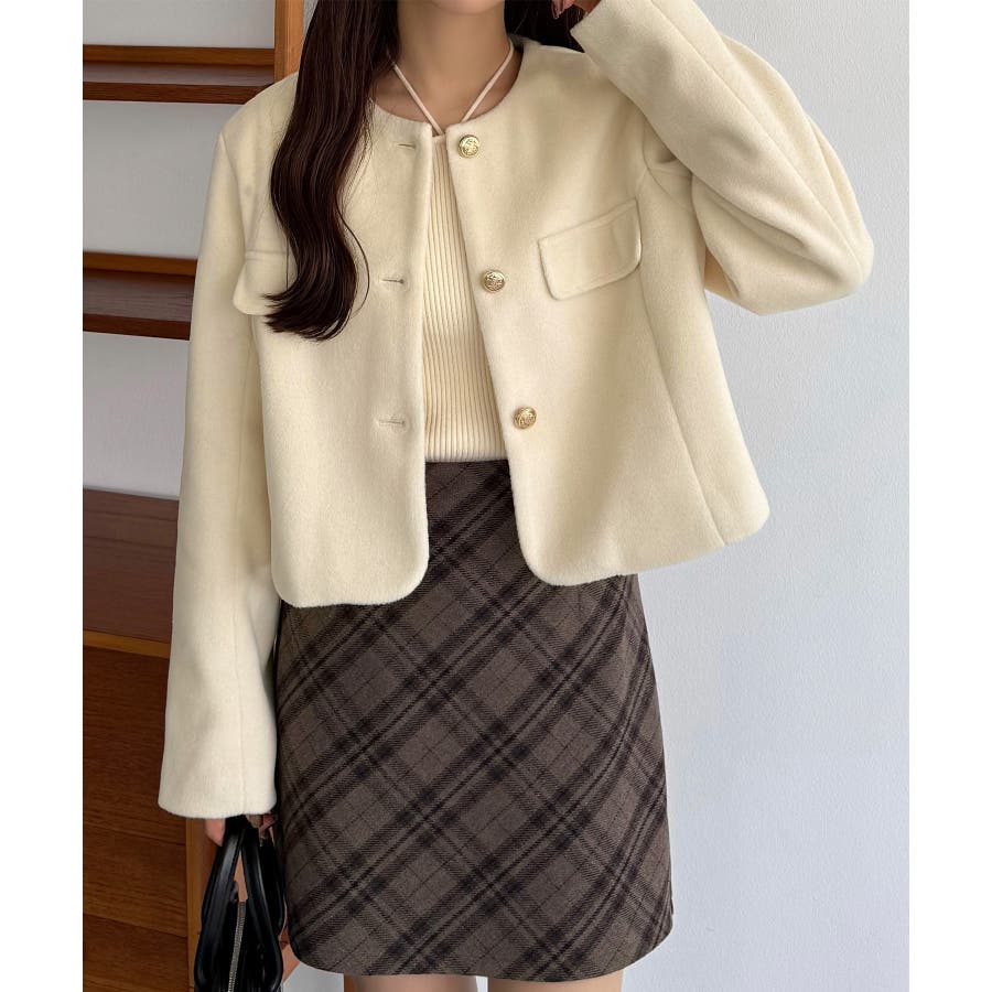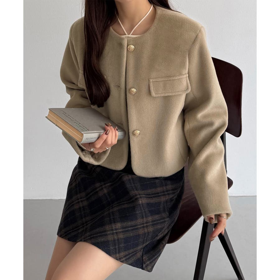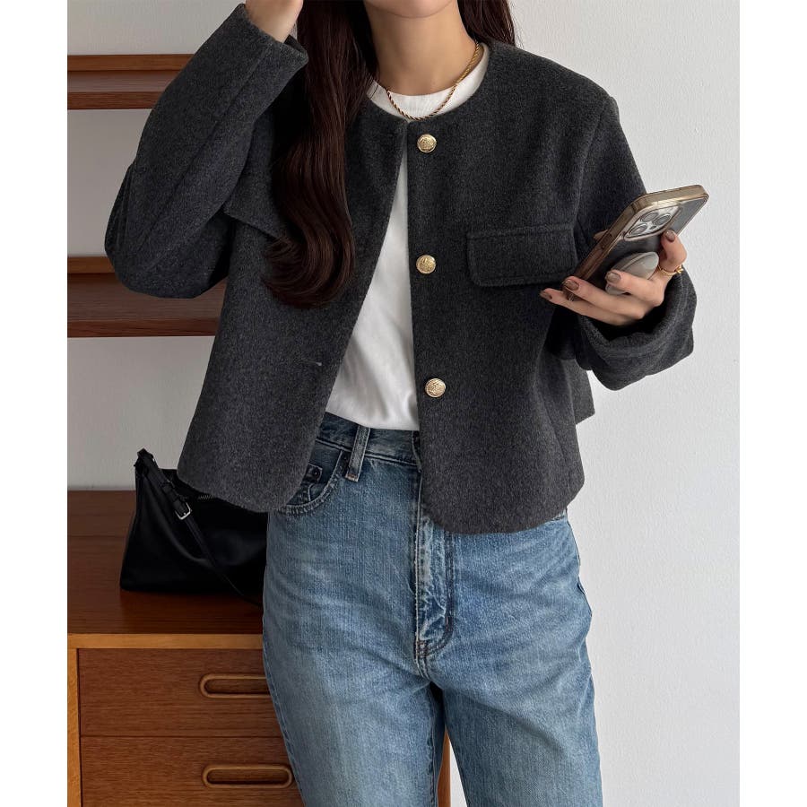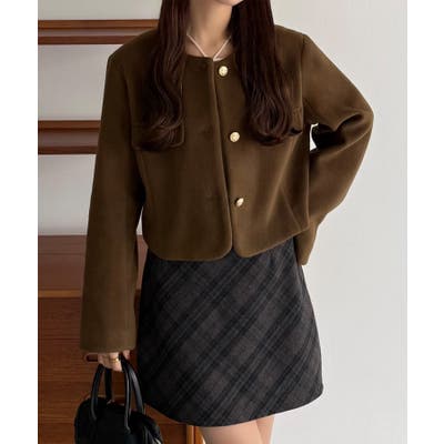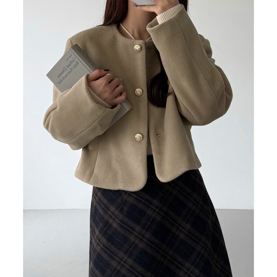 callautia ウールライクゴールドボタンノーカラージャケット