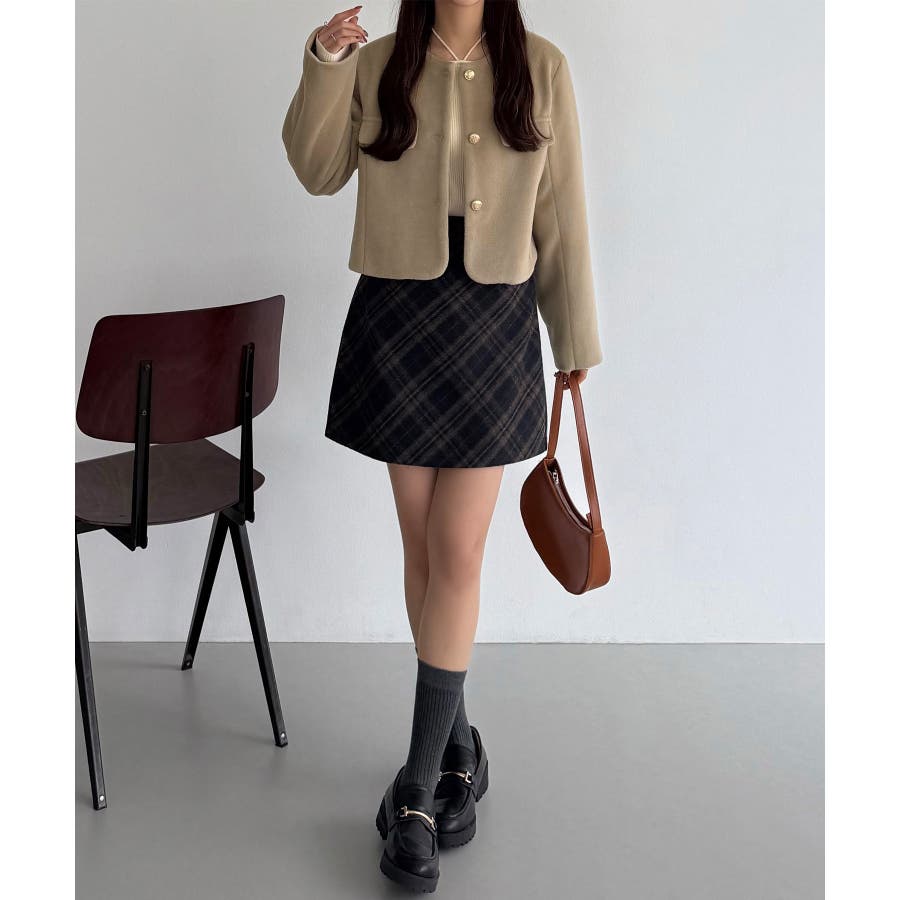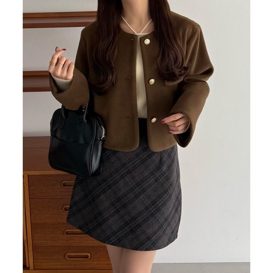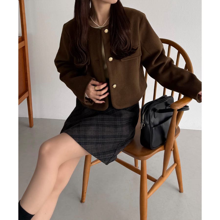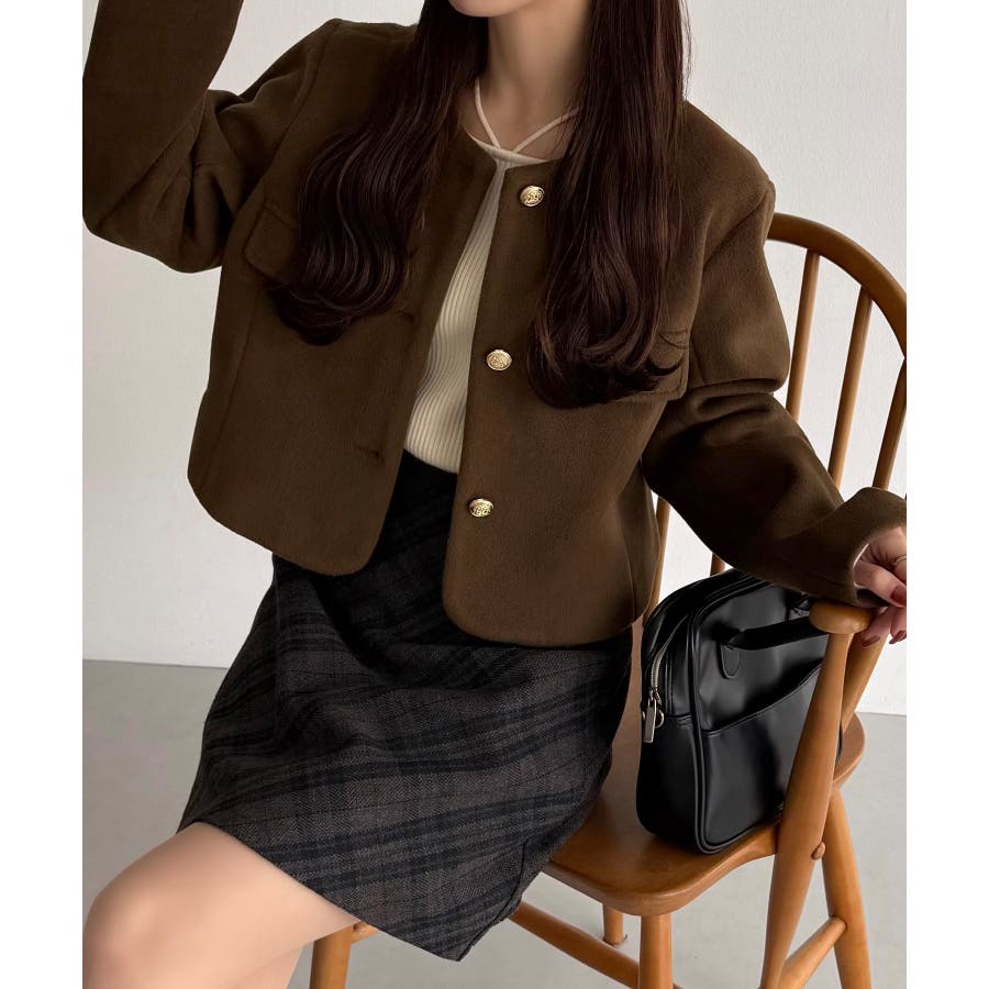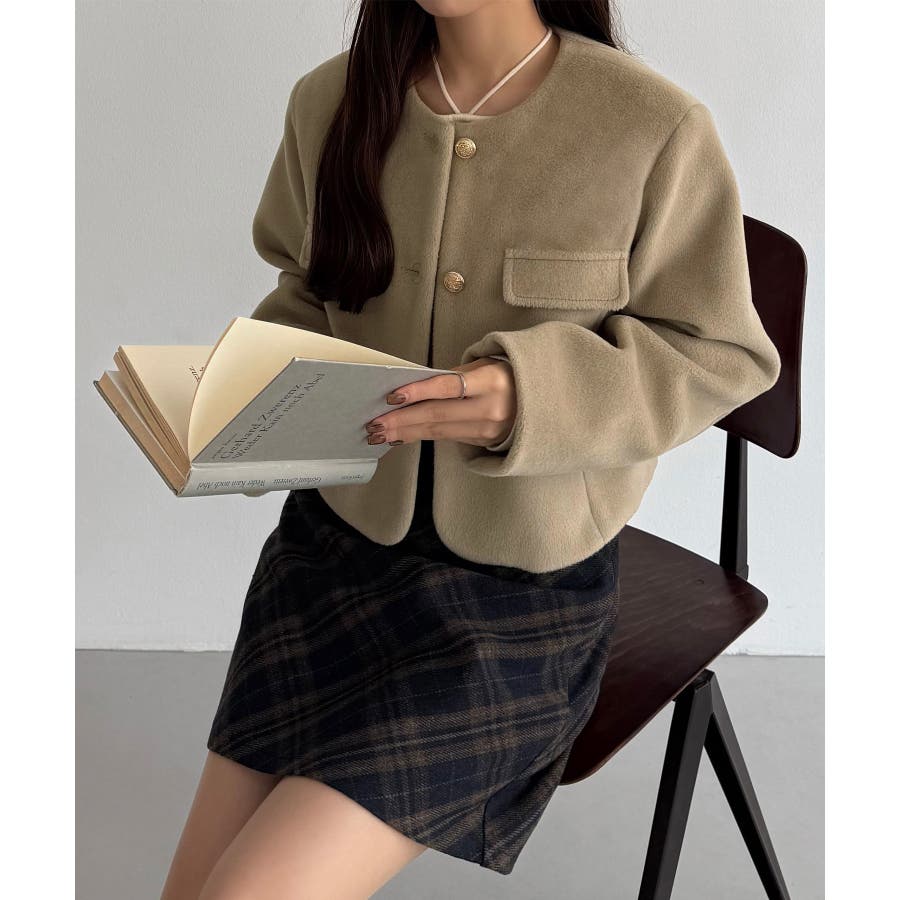 callautia ウールライクゴールドボタンノーカラージャケット