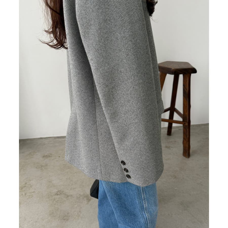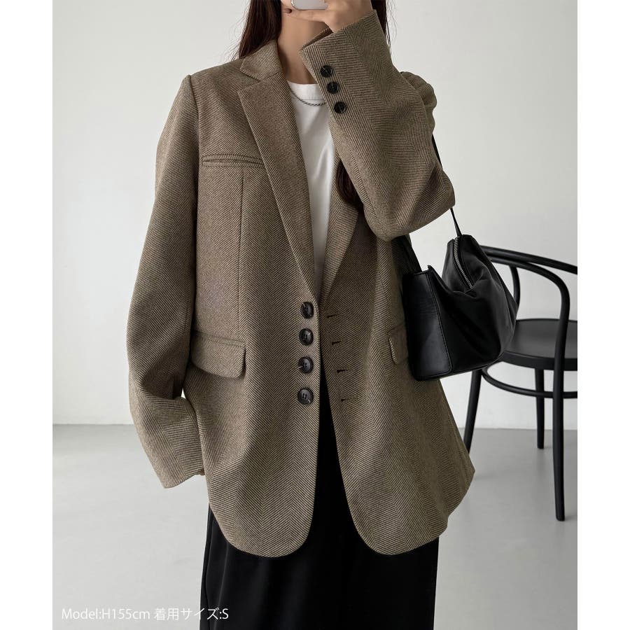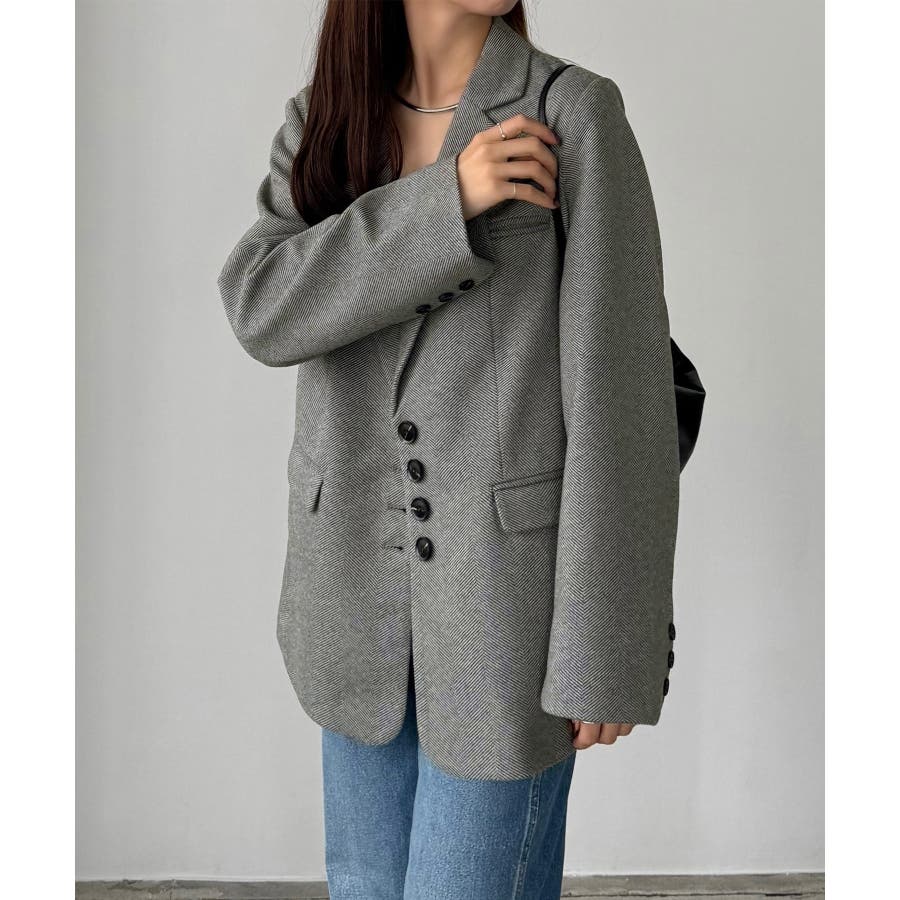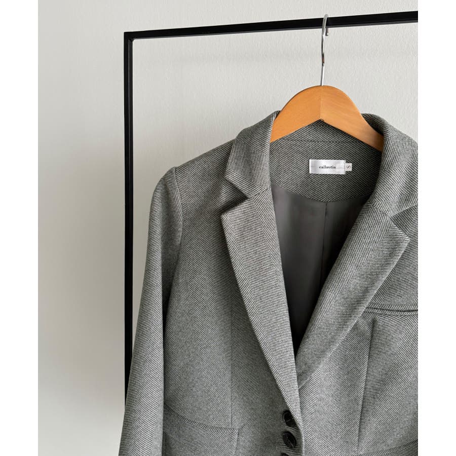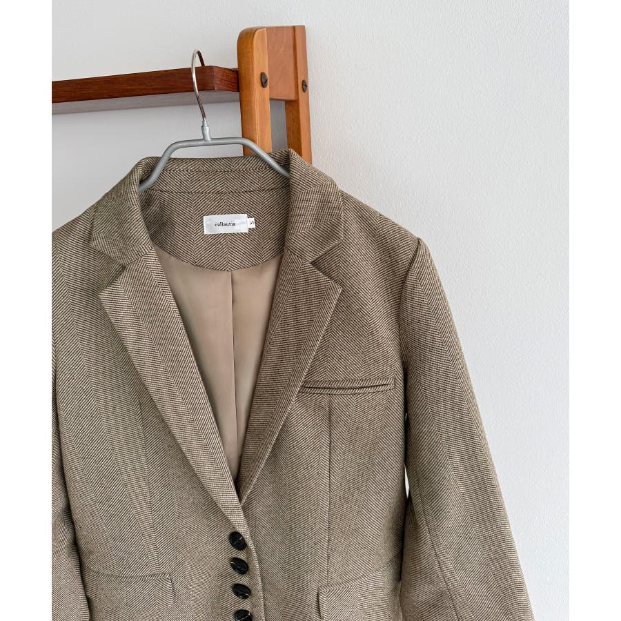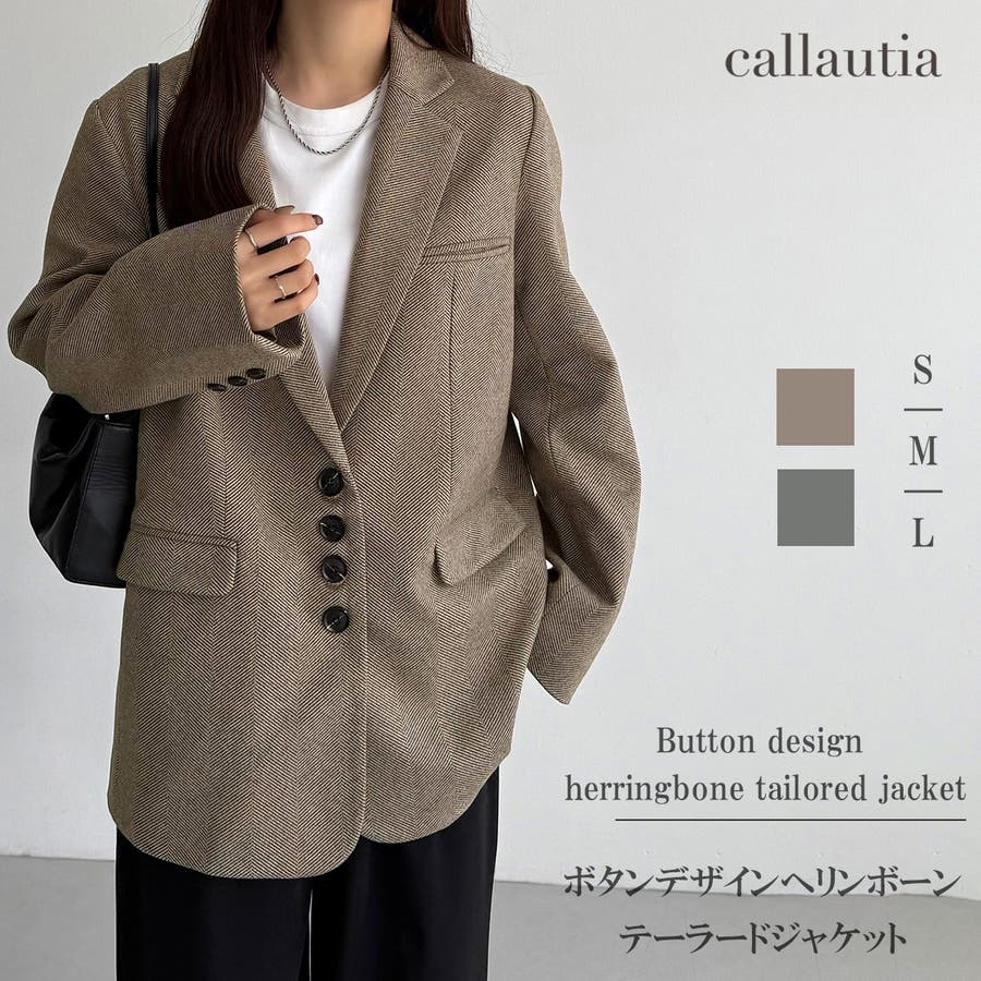 callautia ボタンデザインヘリンボーンテーラードジャケット