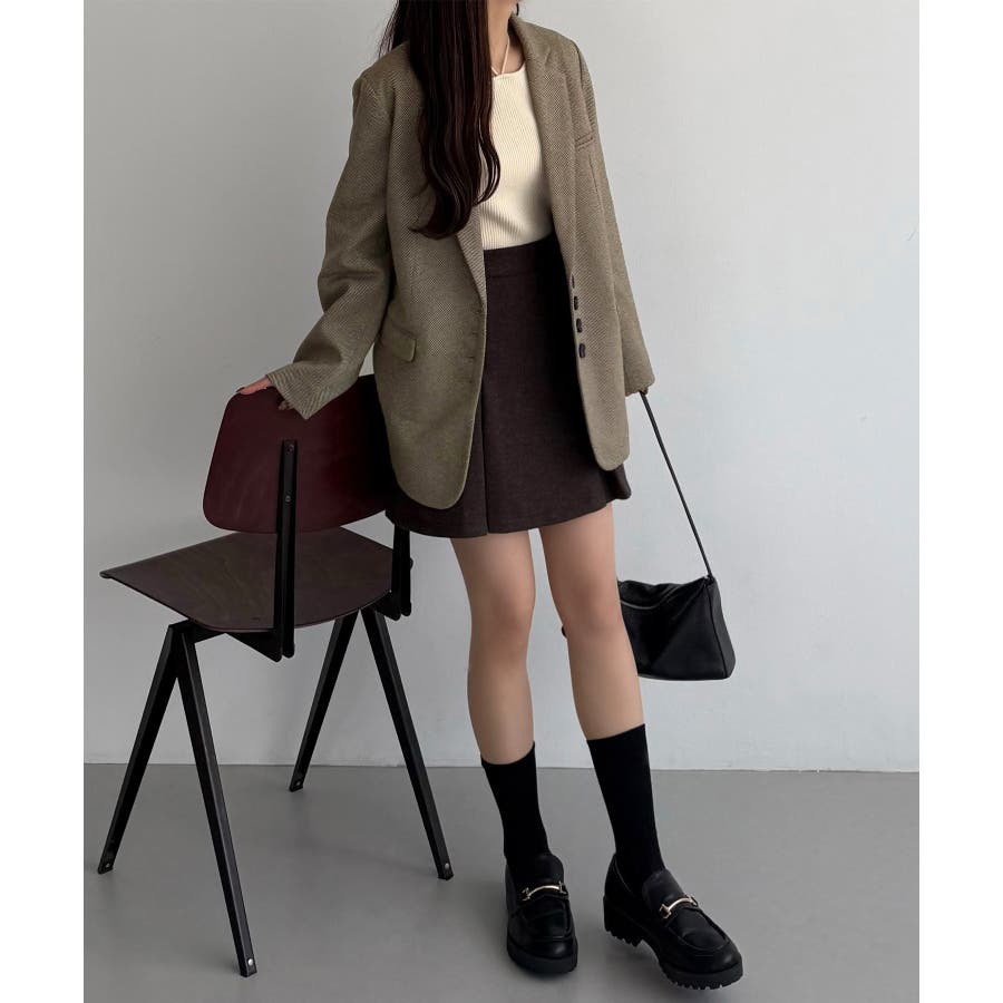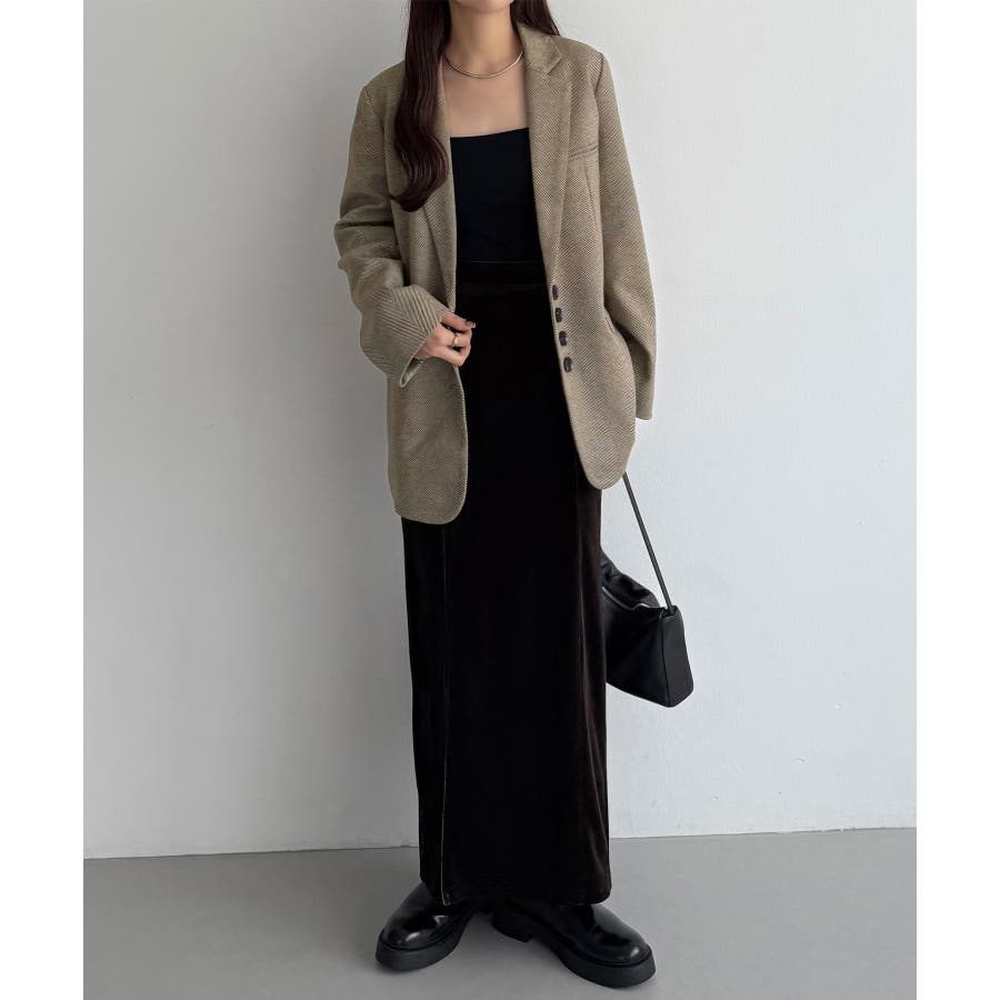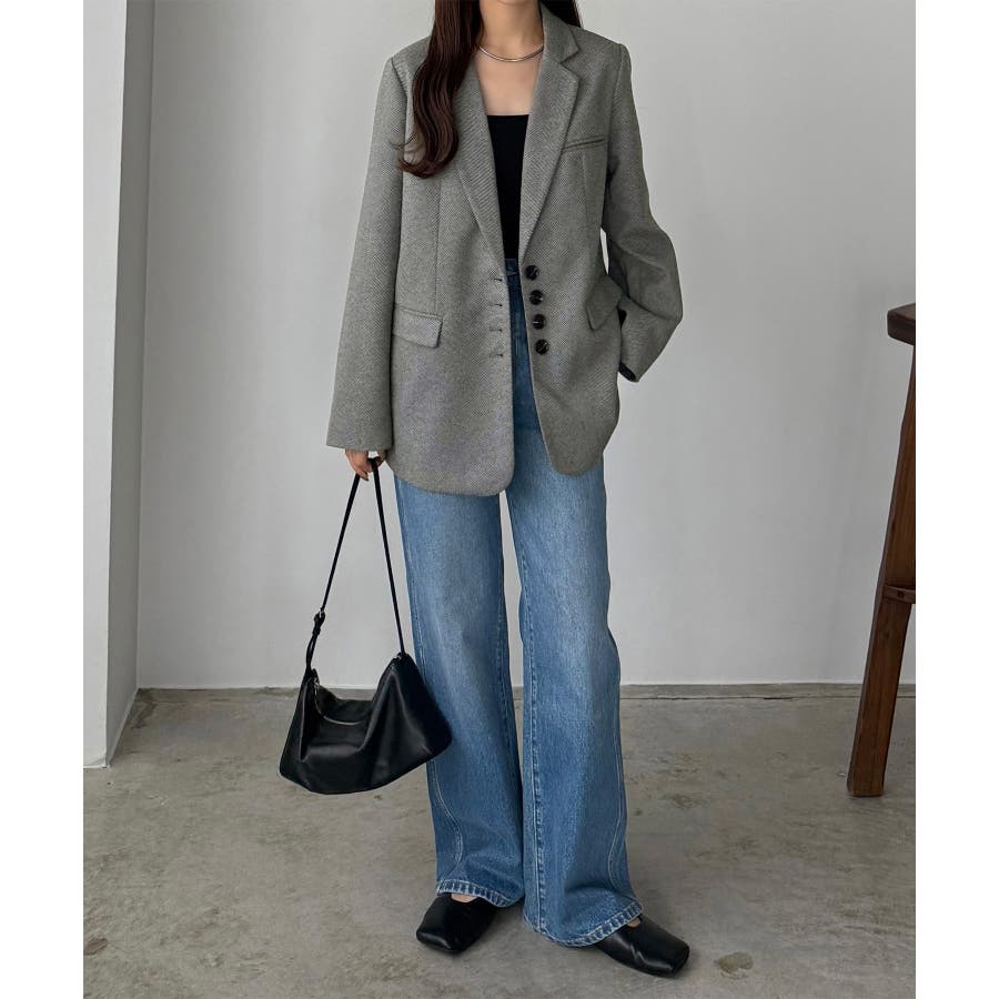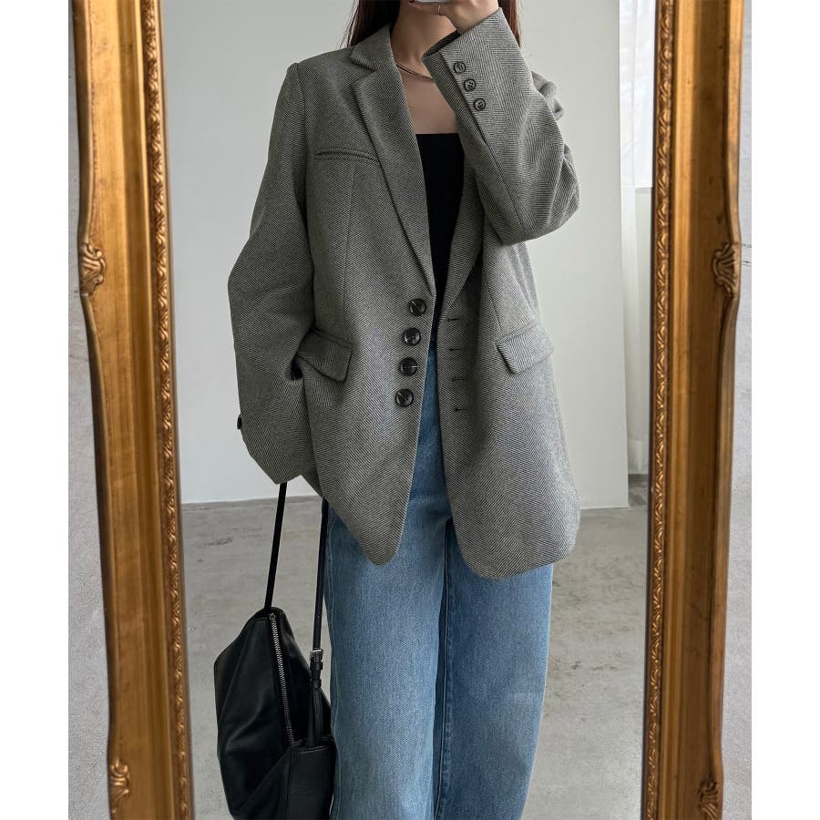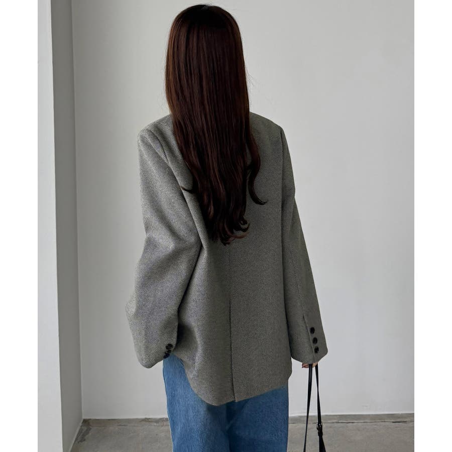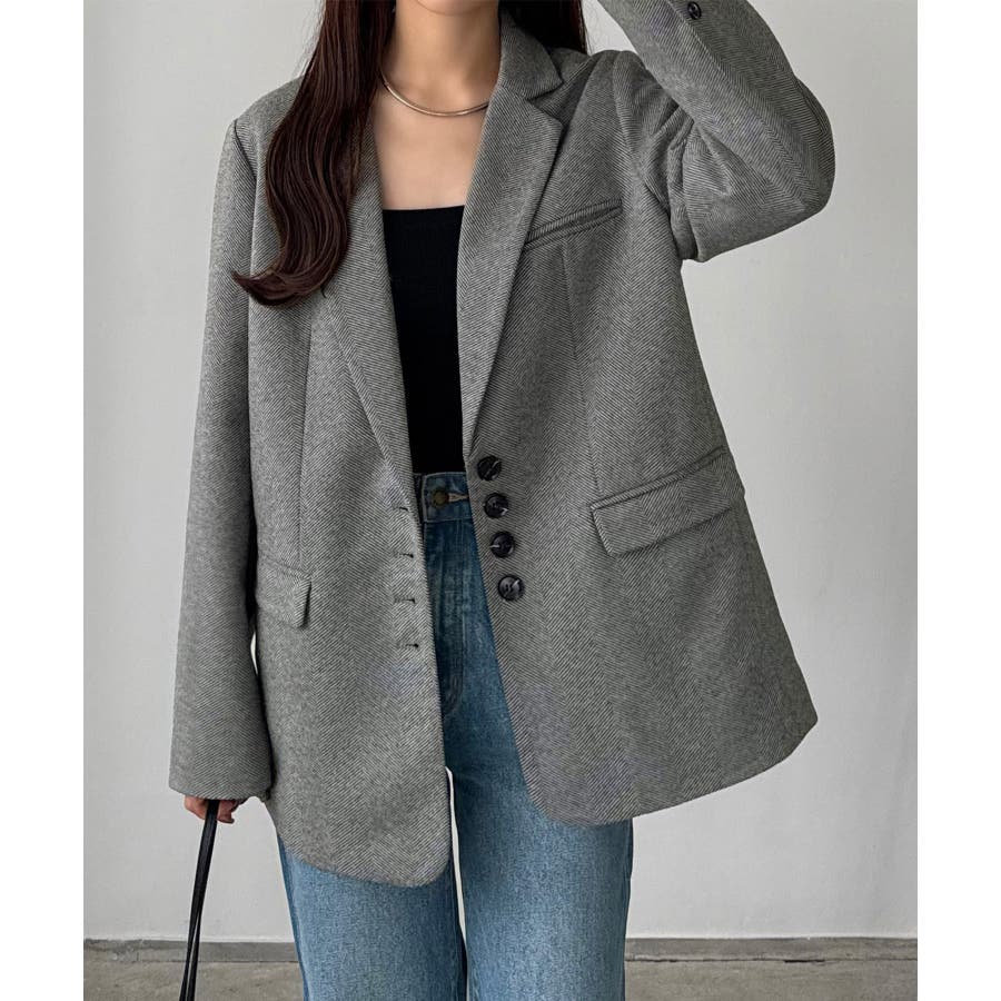 callautia ボタンデザインヘリンボーンテーラードジャケット