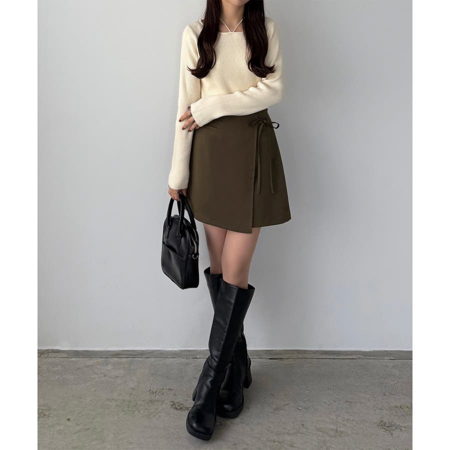 callautia ラップ風リボンミニスカート(インパン付き)