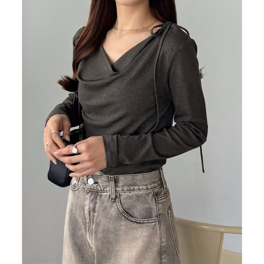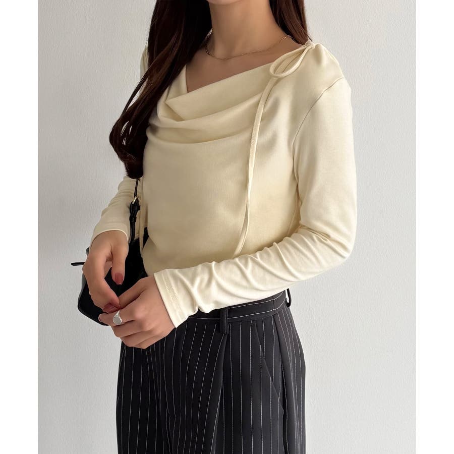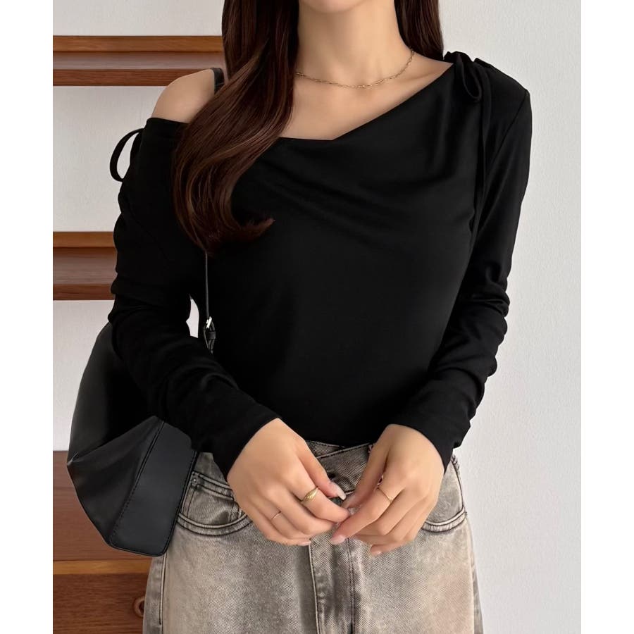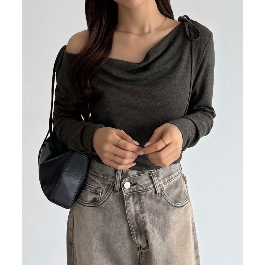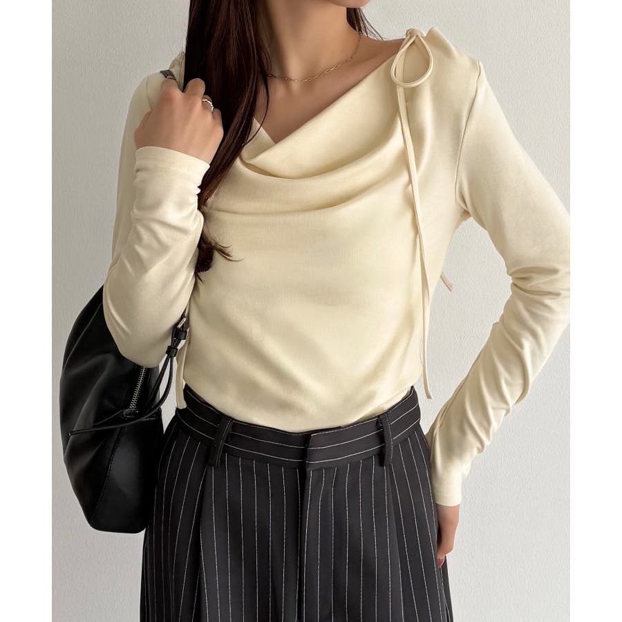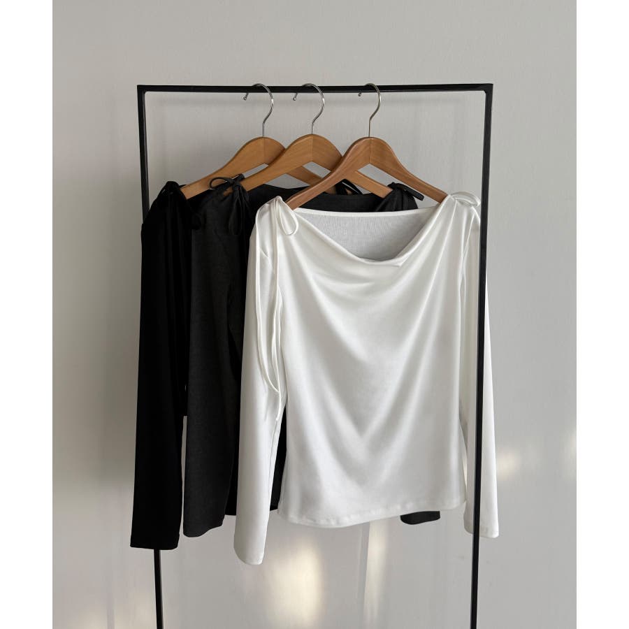 callautia 薄手2way肩リボンドレープトップス