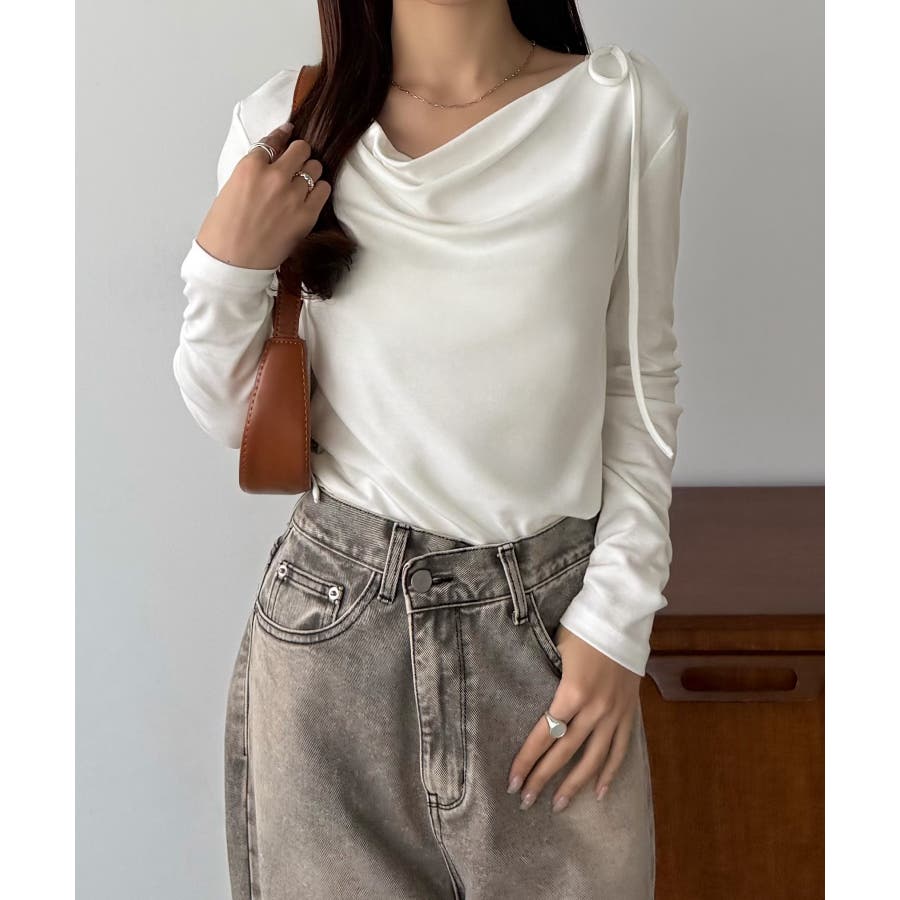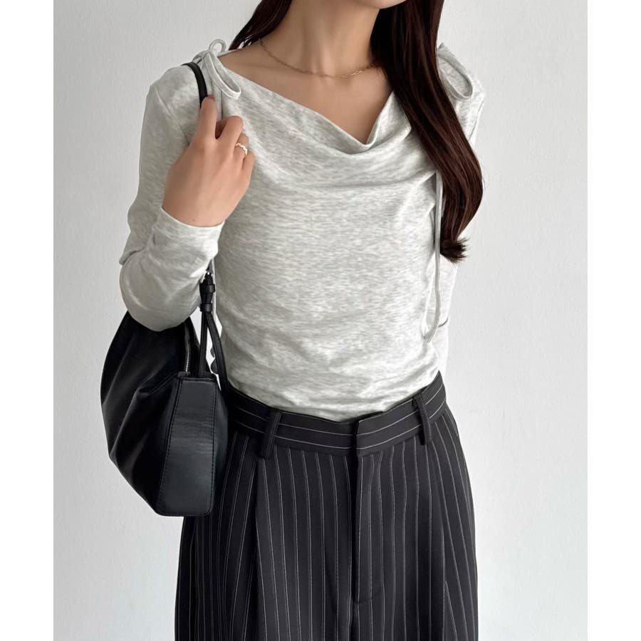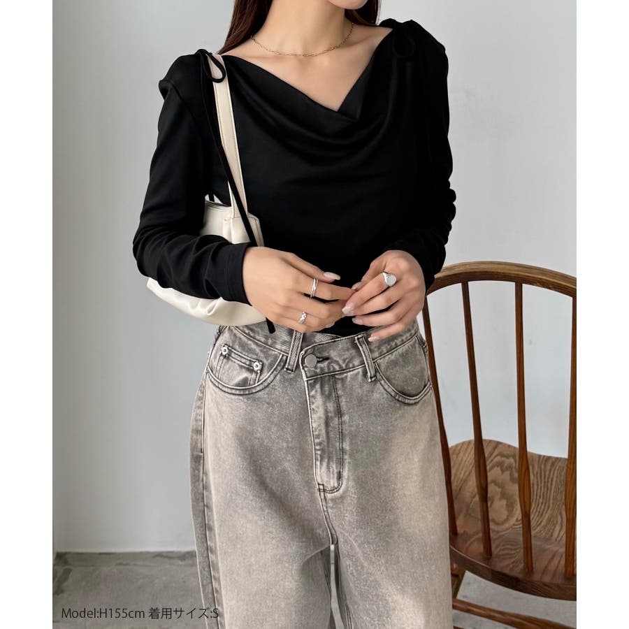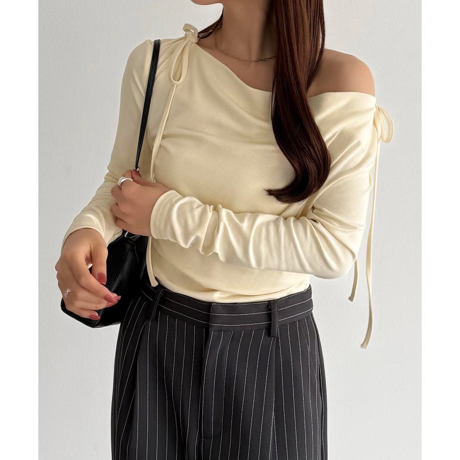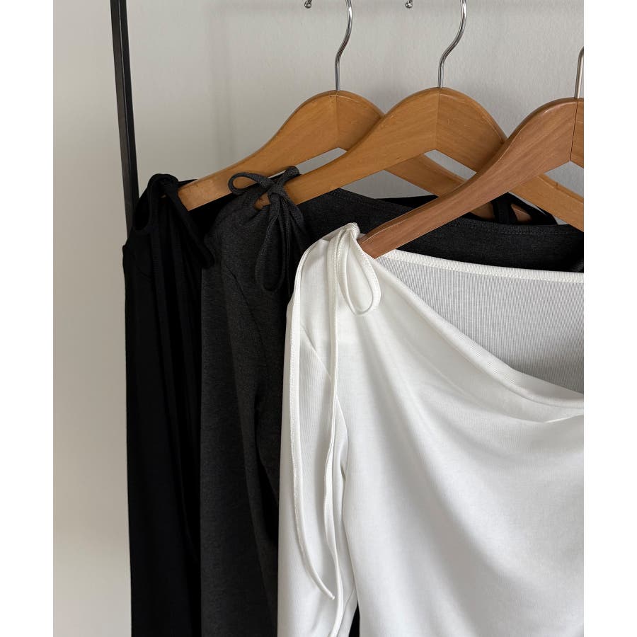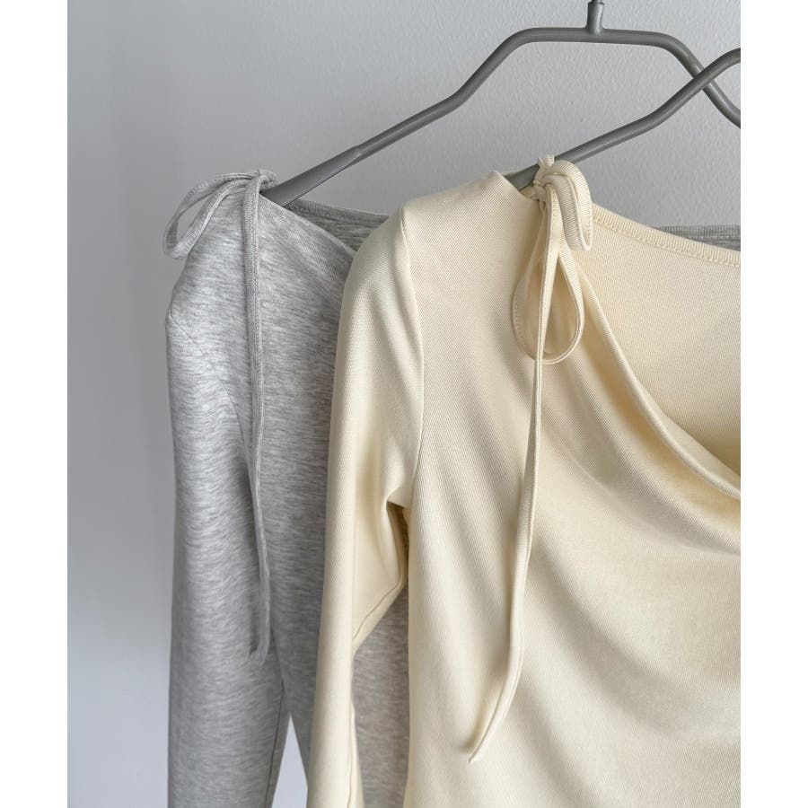 callautia 薄手2way肩リボンドレープトップス