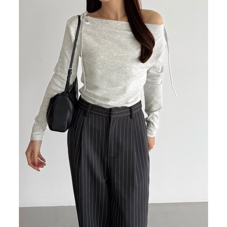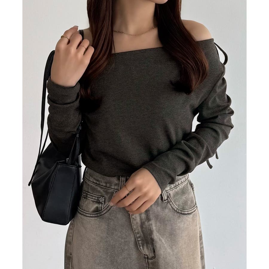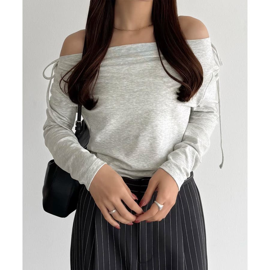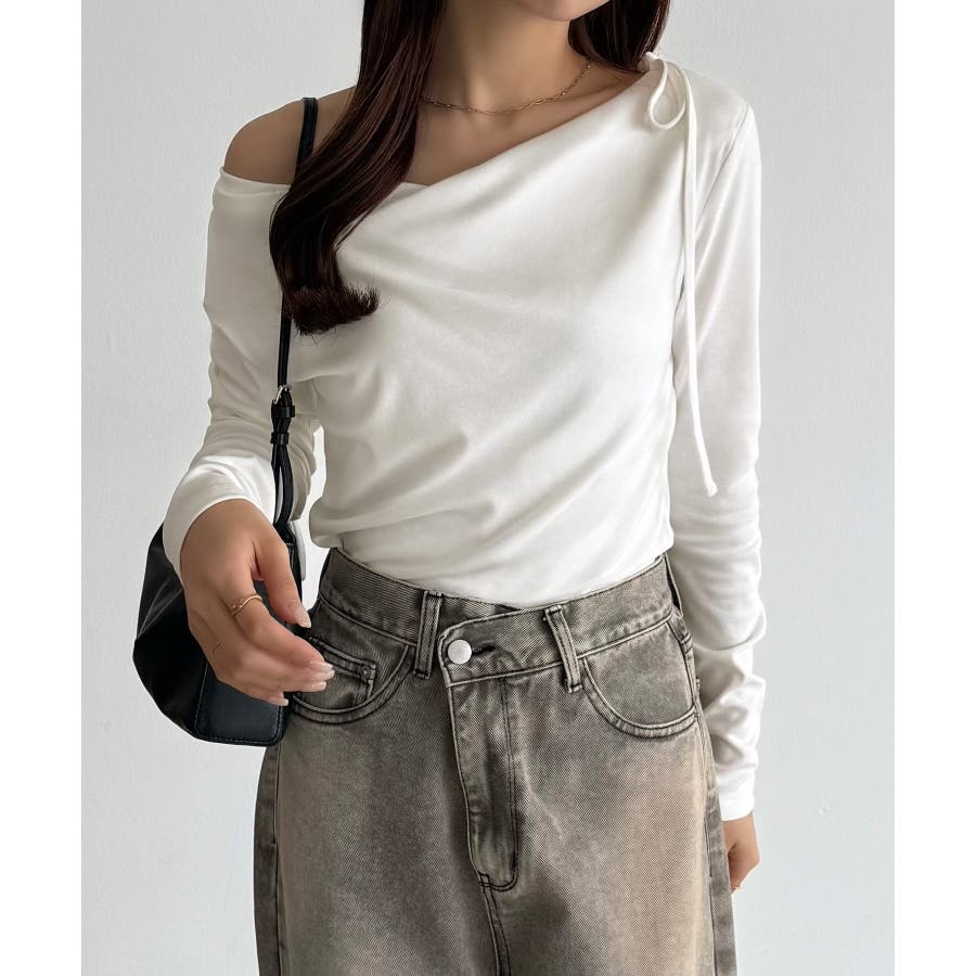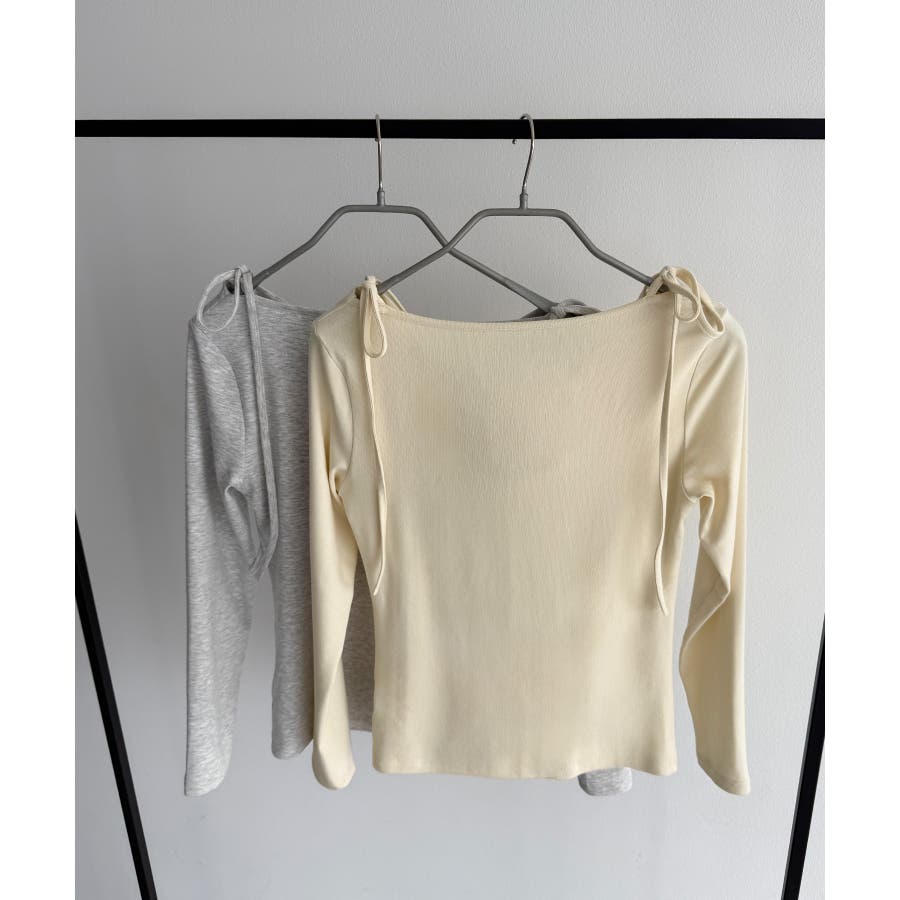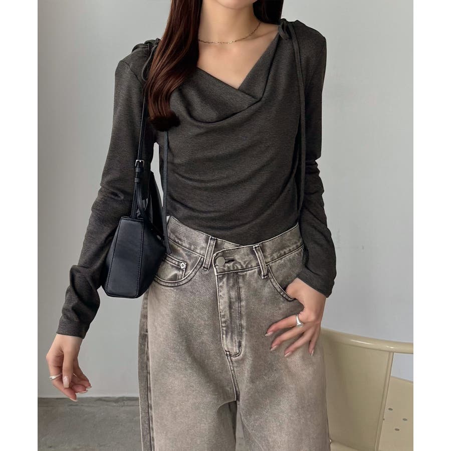 callautia 薄手2way肩リボンドレープトップス