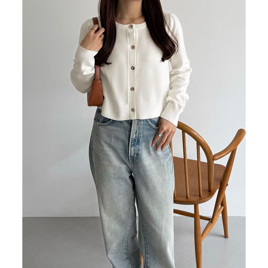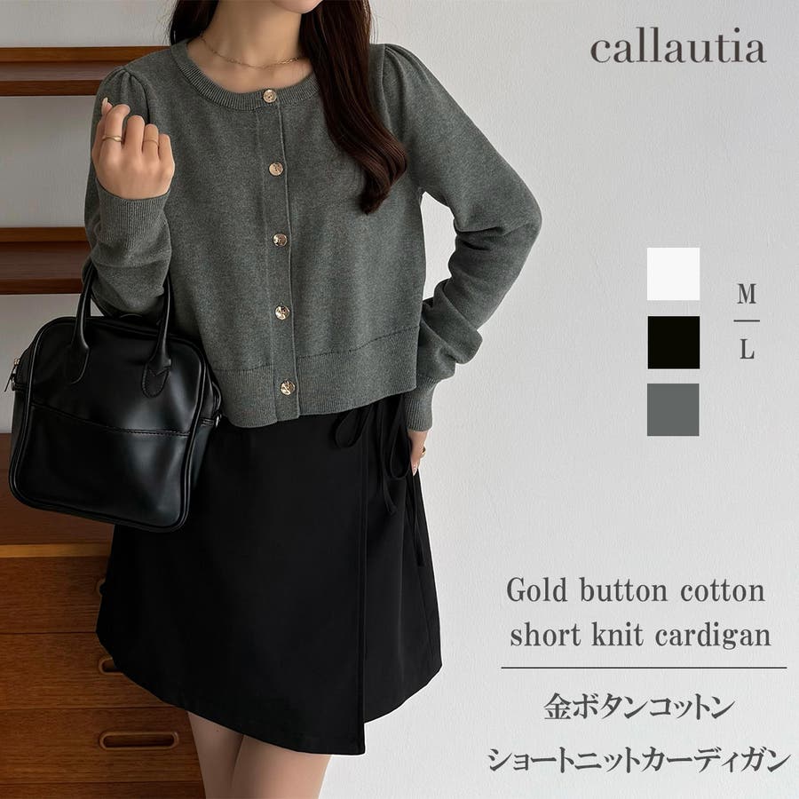 callautia 金ボタンコットンショートニットカーディガン