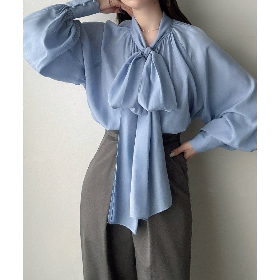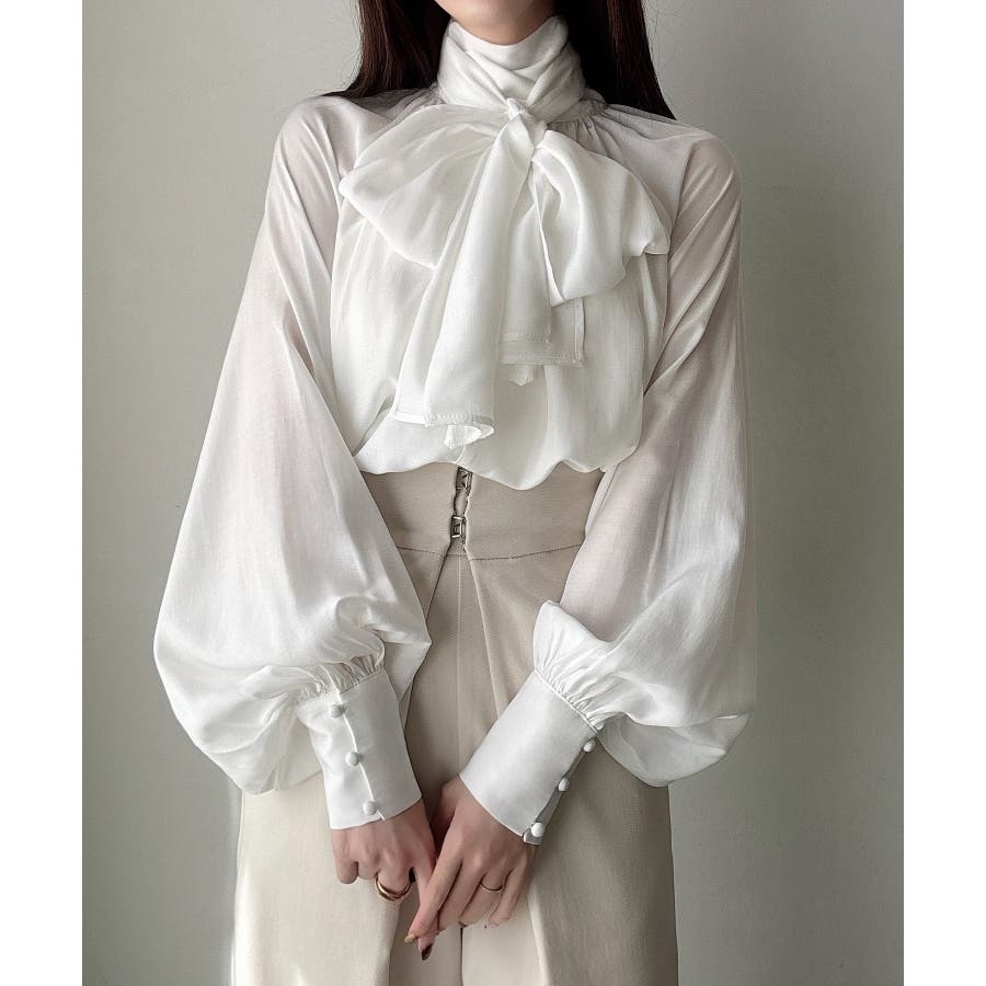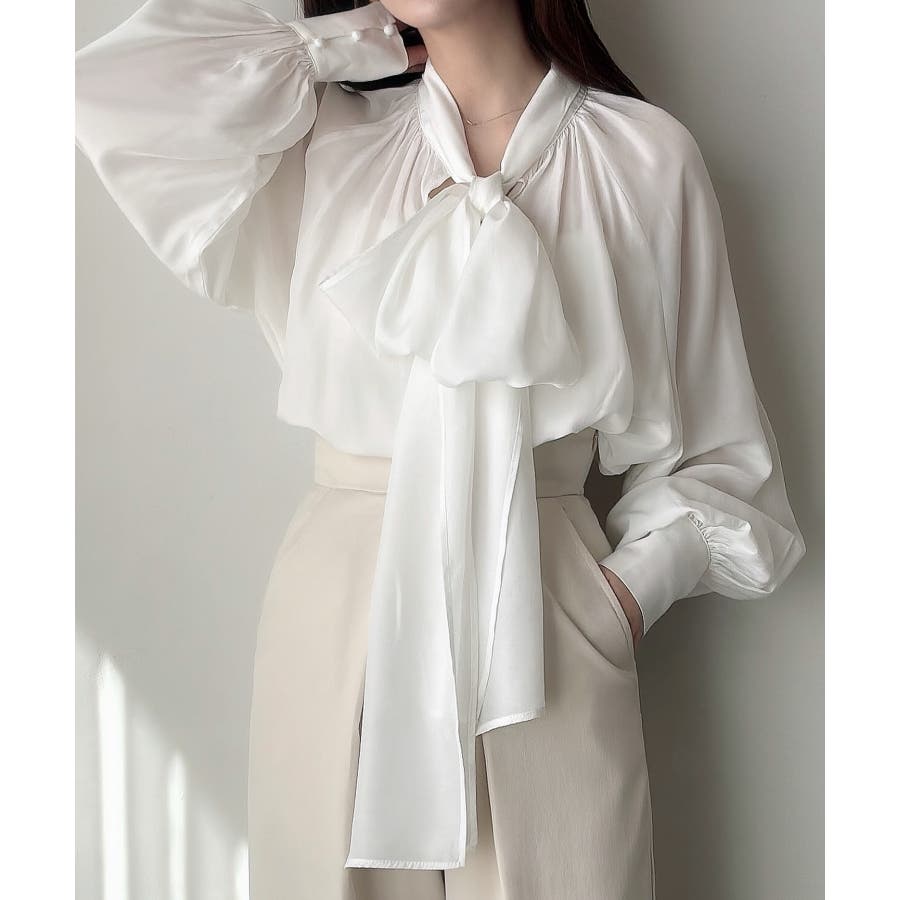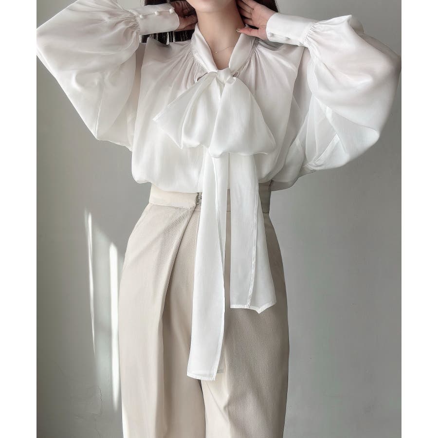 Meiru 2wayシアーボウタイリボンブラウス