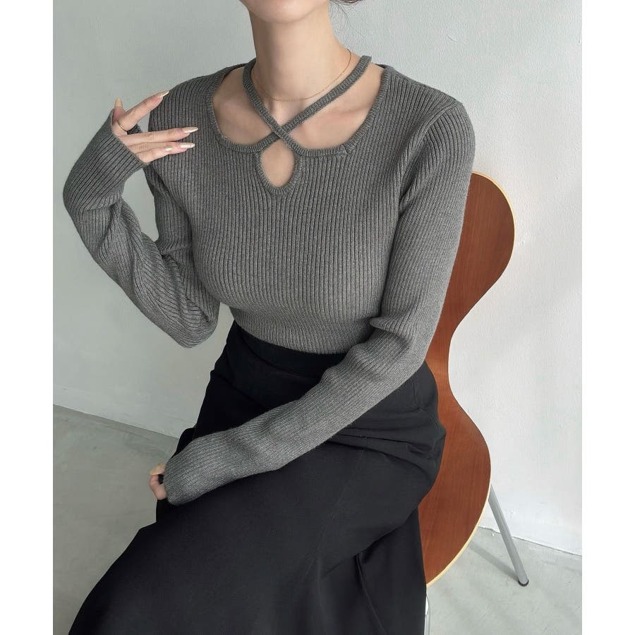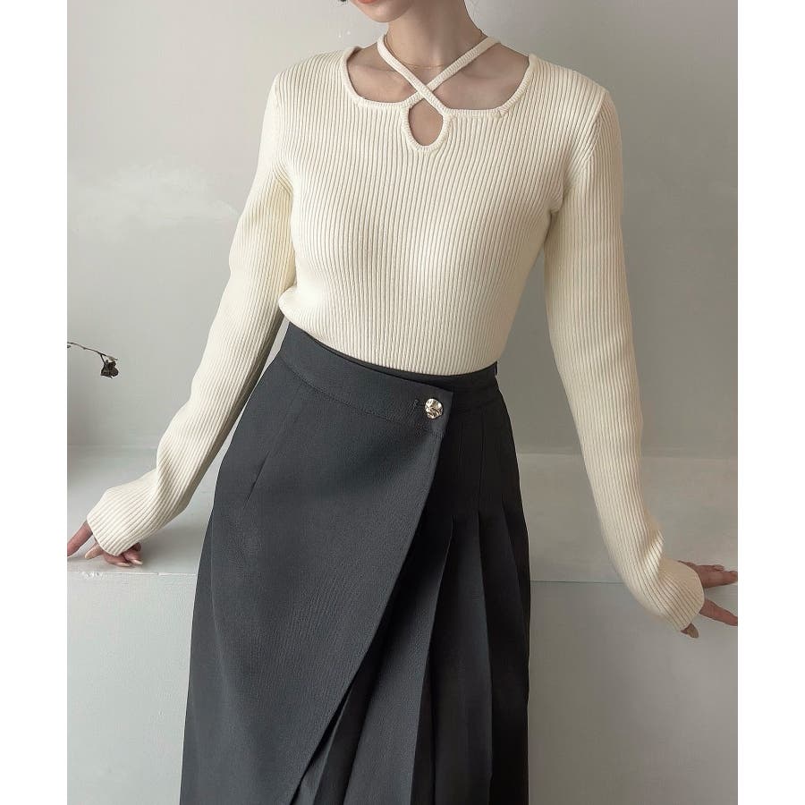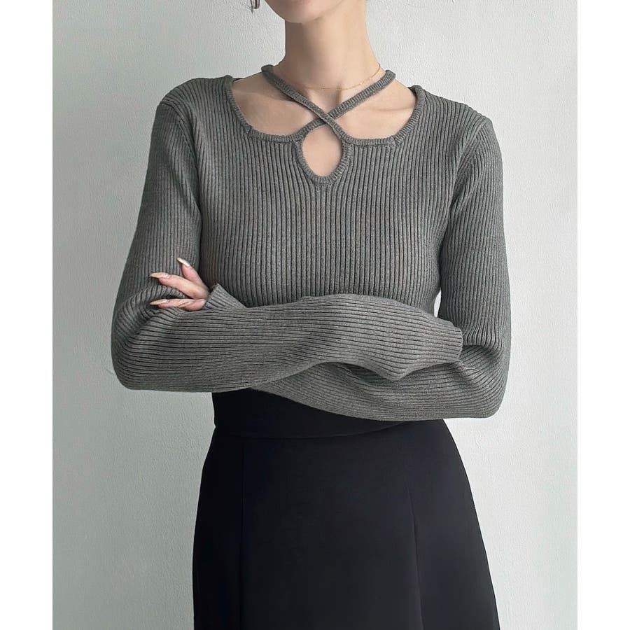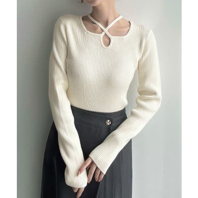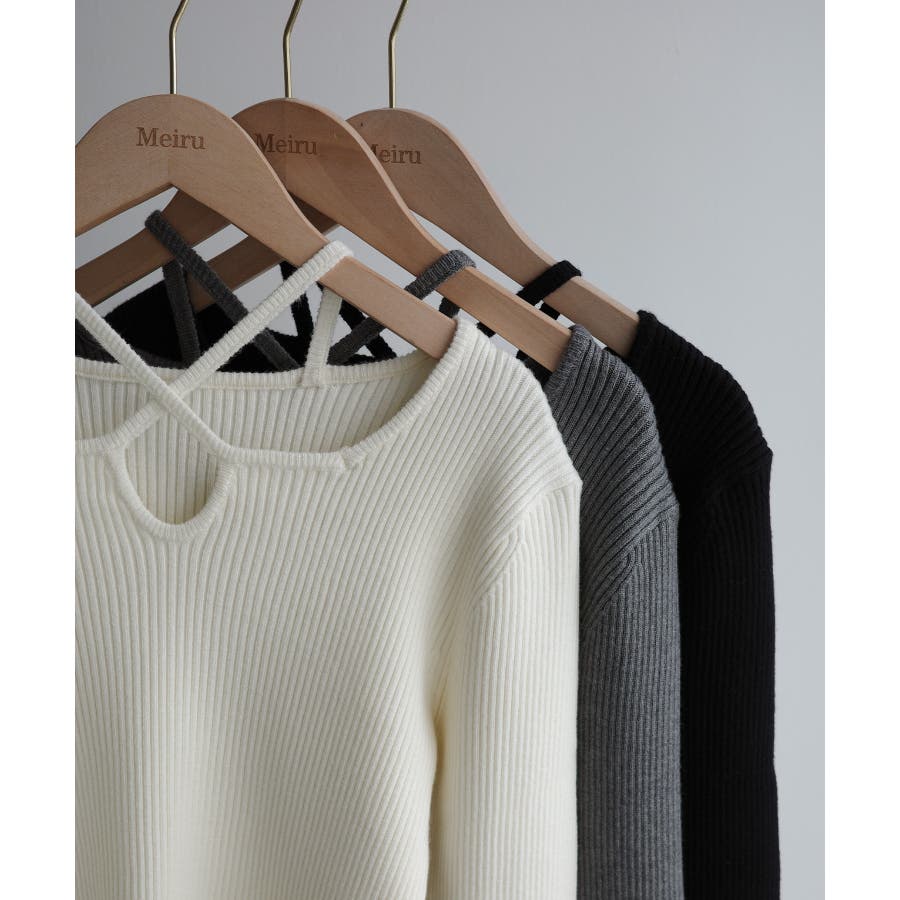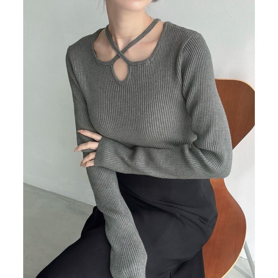 Meiru クロスネックリブニット