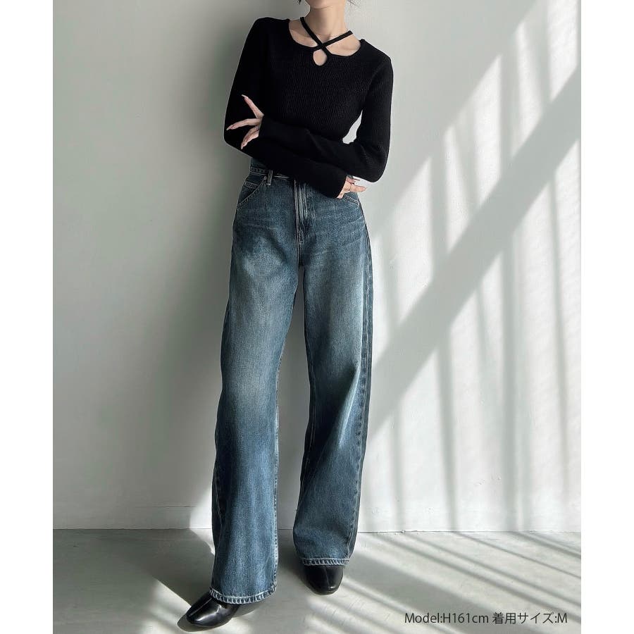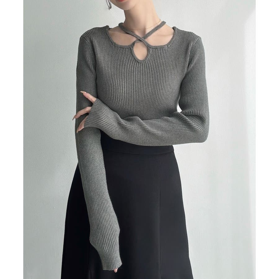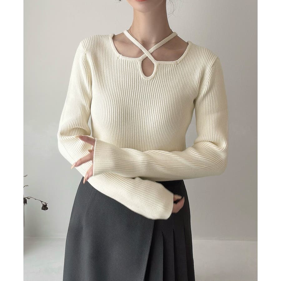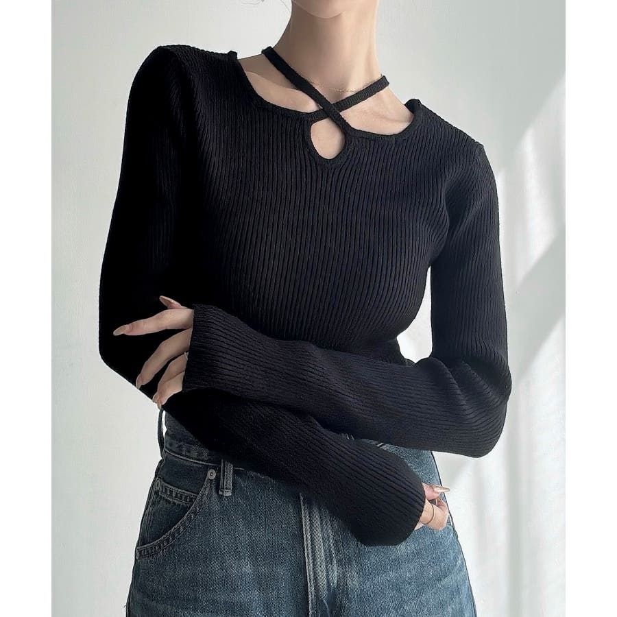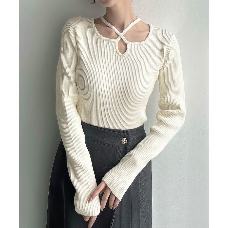 Meiru クロスネックリブニット