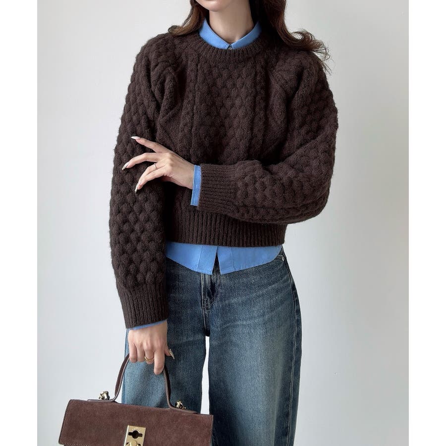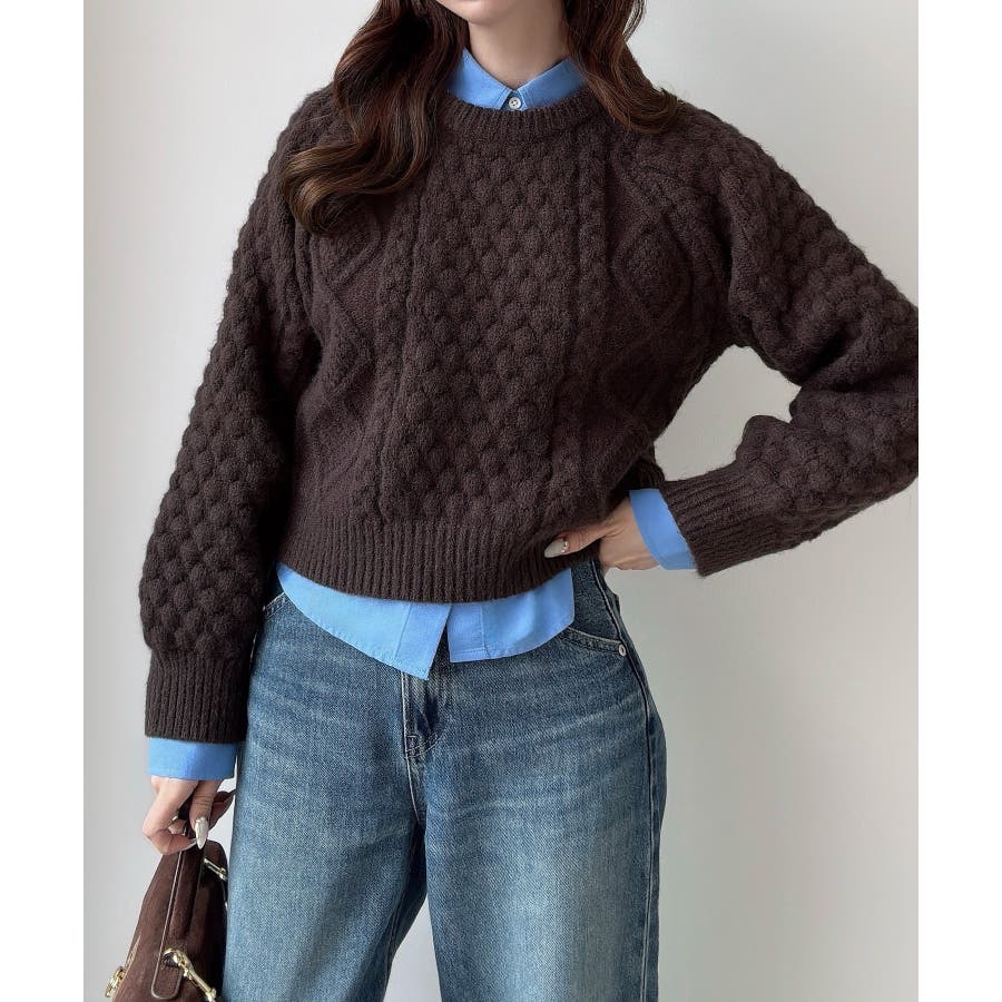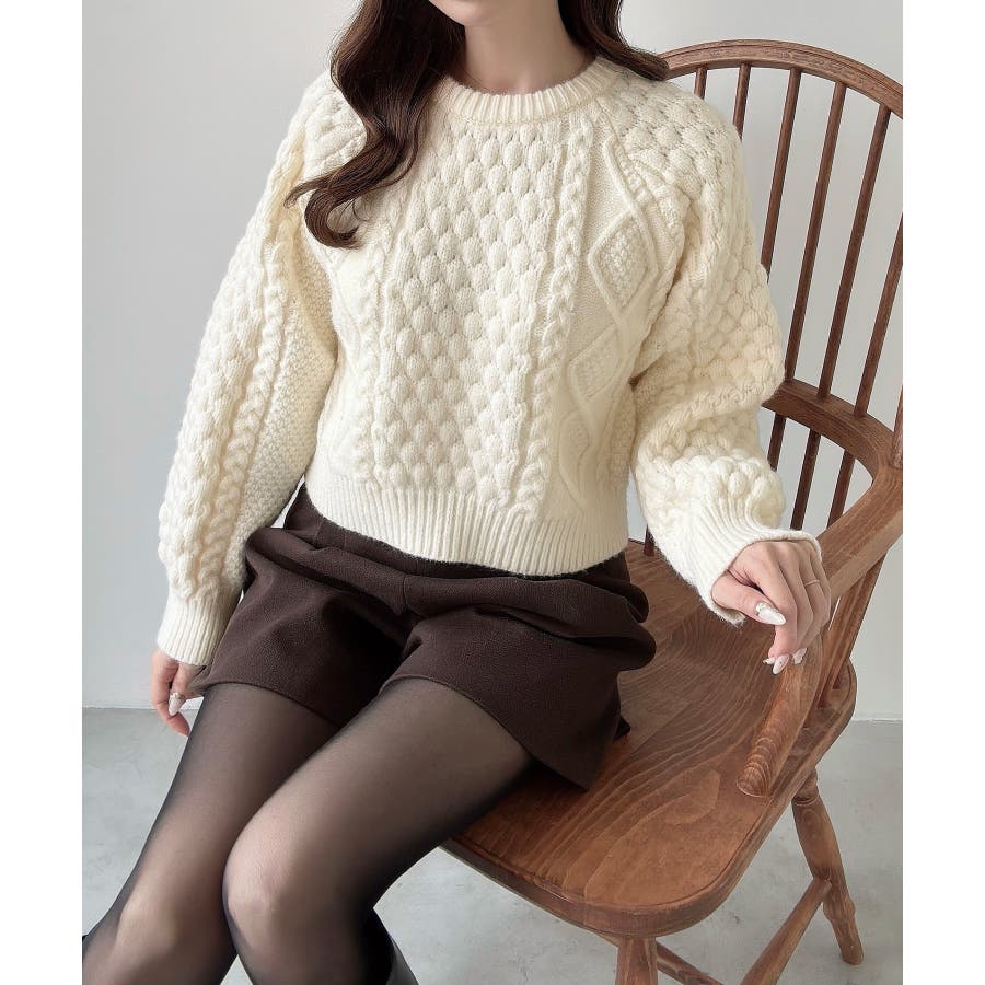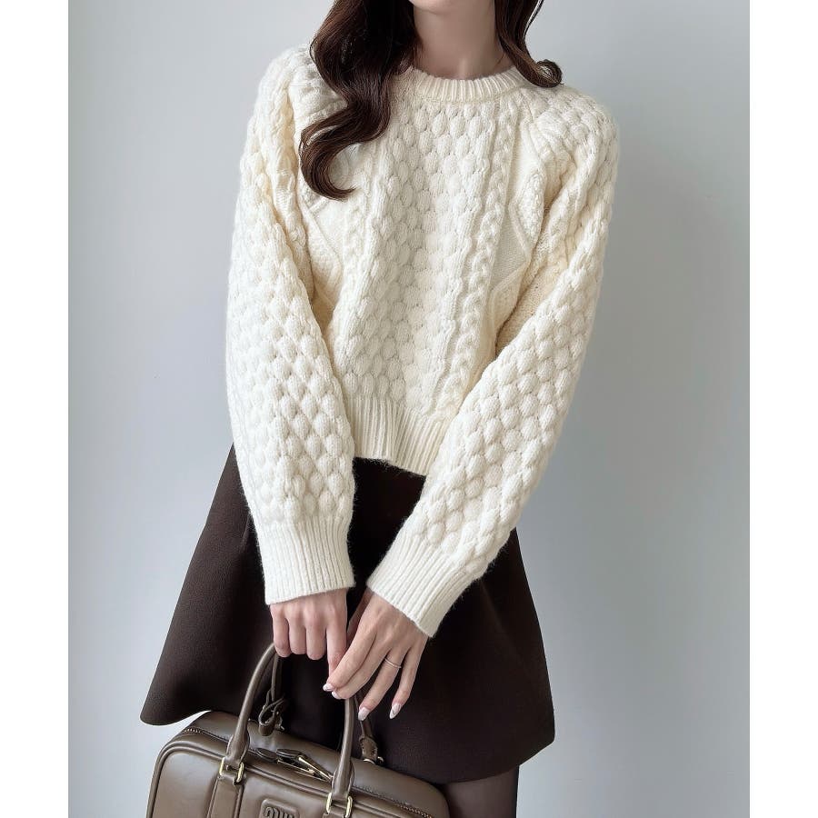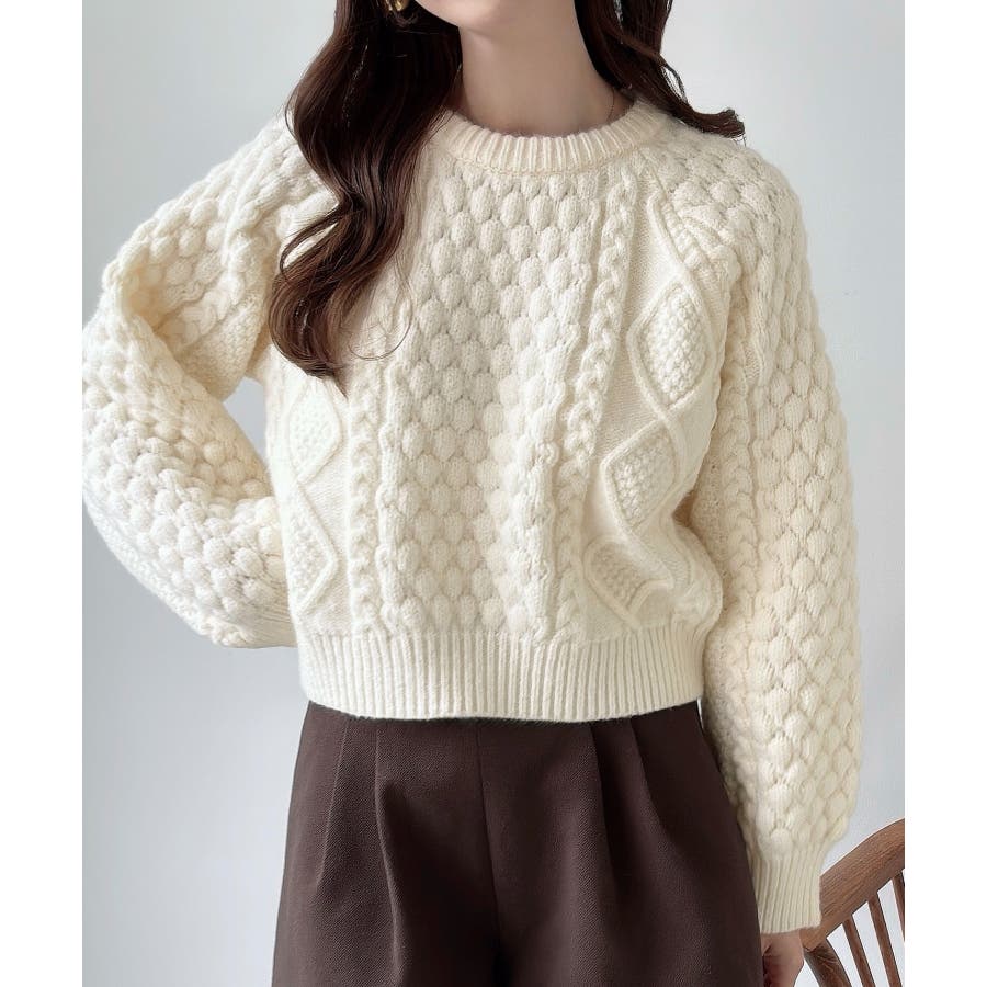 Meiru ポップコーンケーブルニット