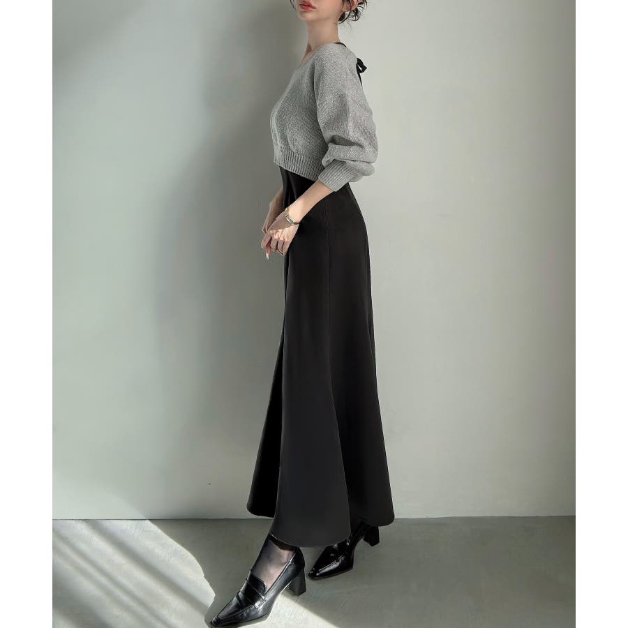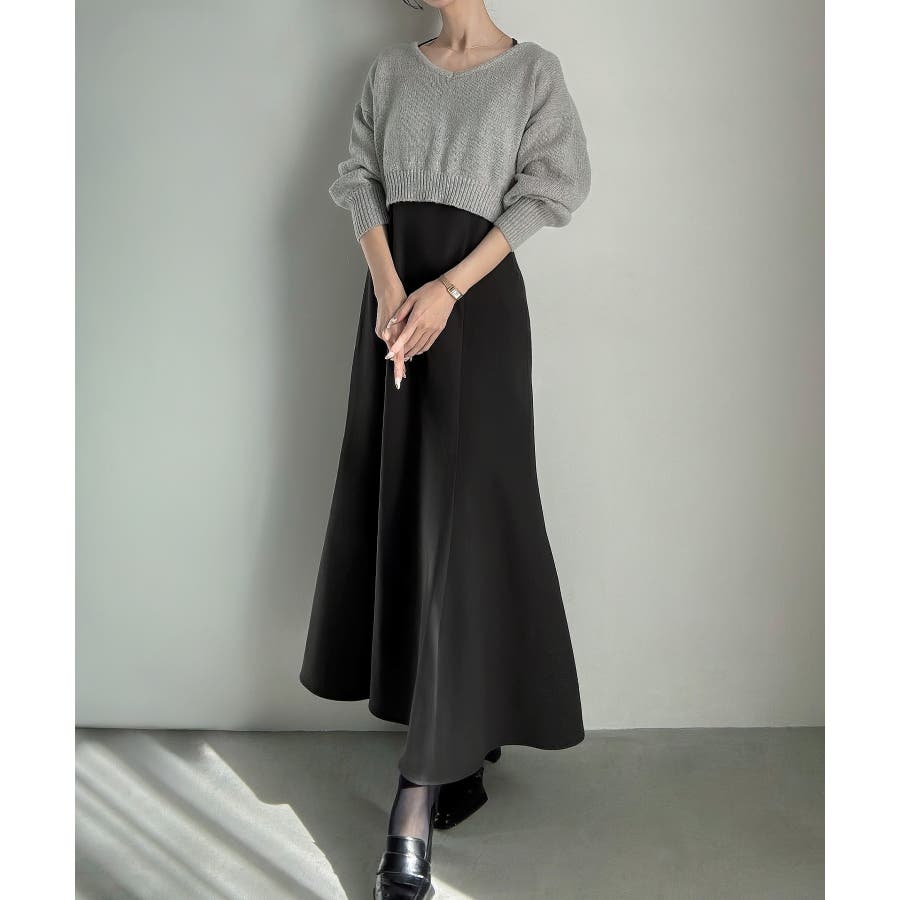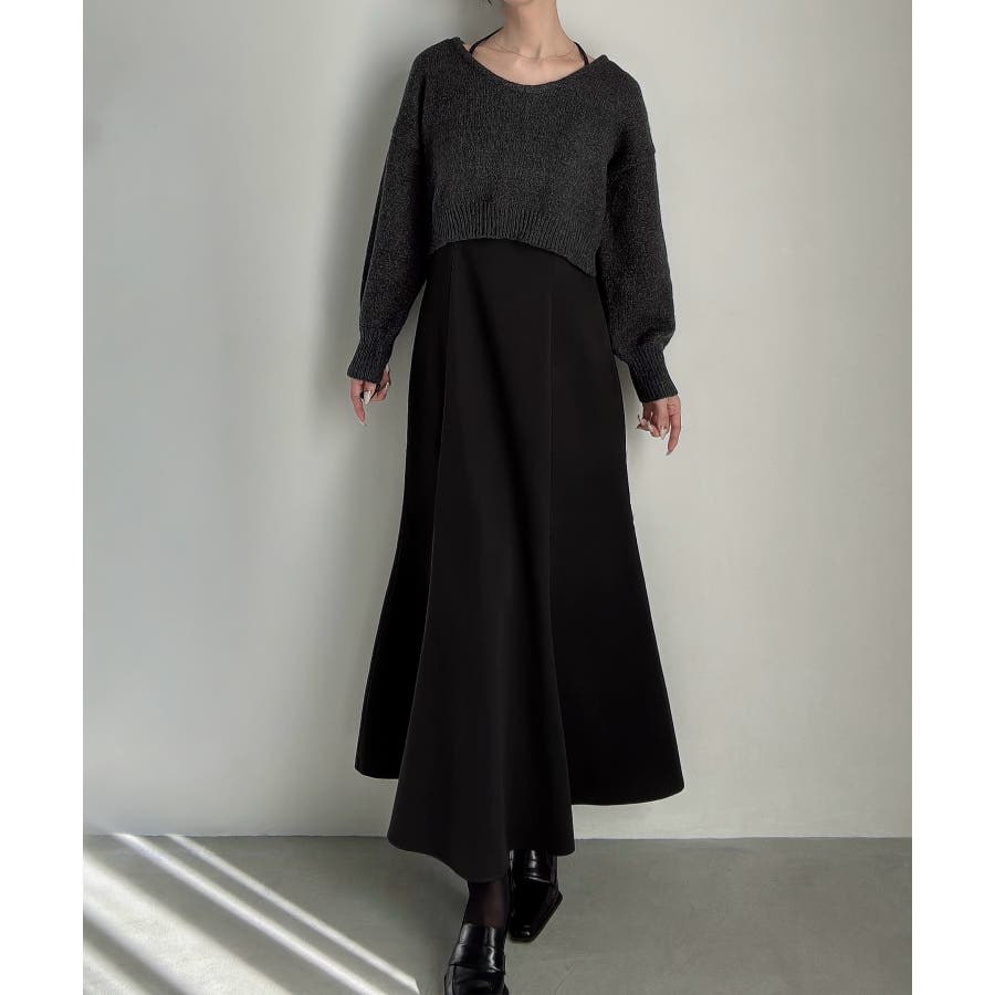 ショートニット+マーメイドキャミワンピースset(薄手、裏地なし)
