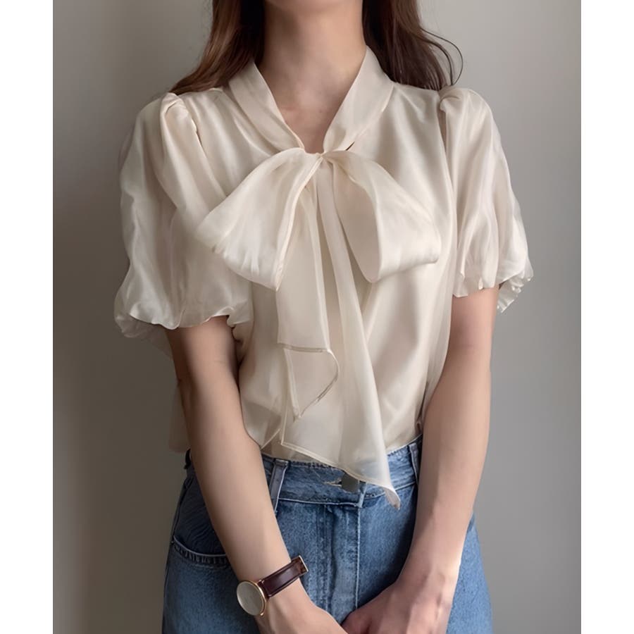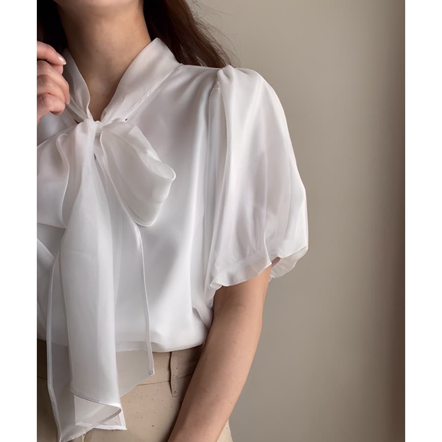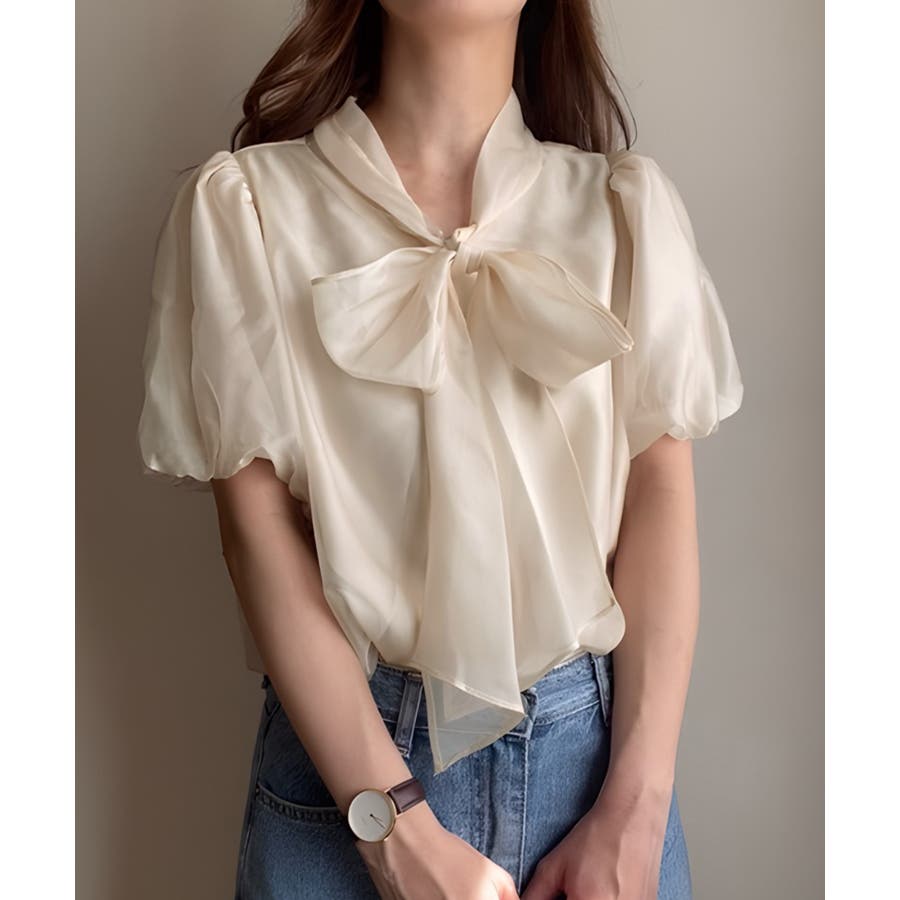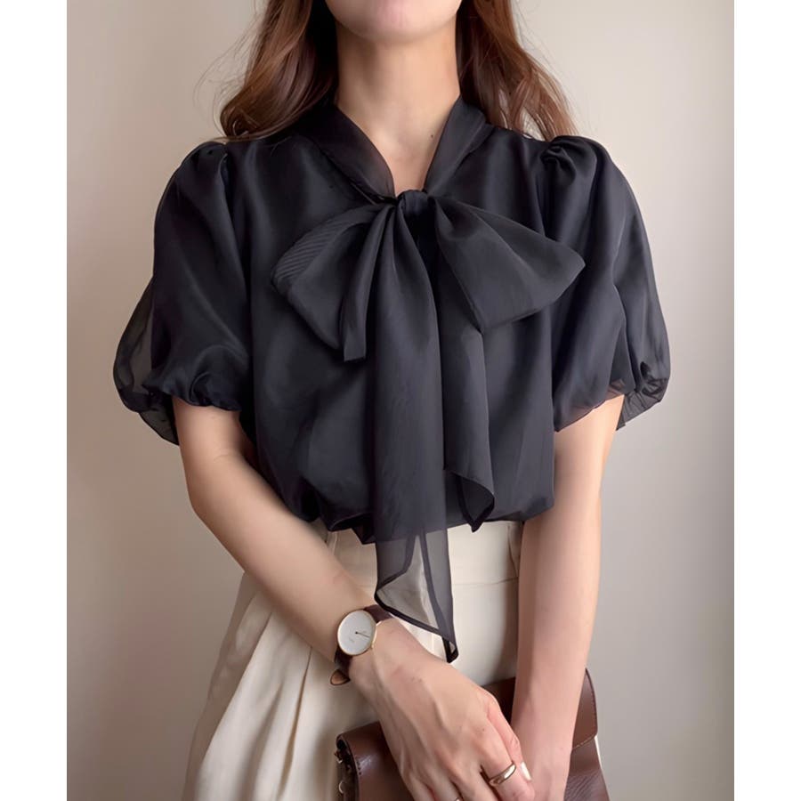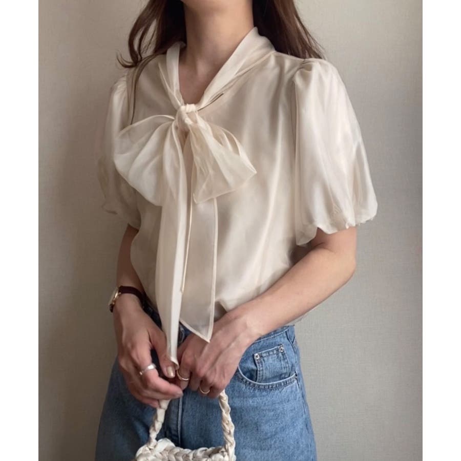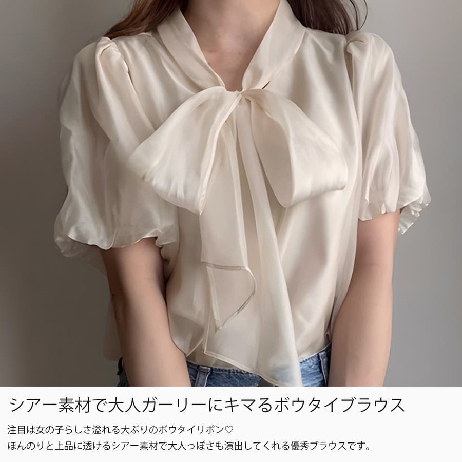 シアーバルーンスリーブボウタイブラウス