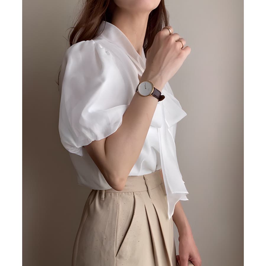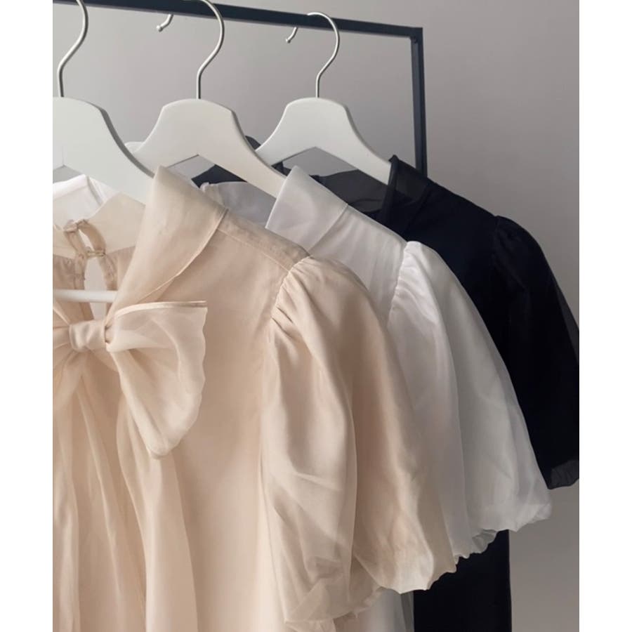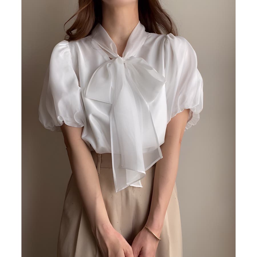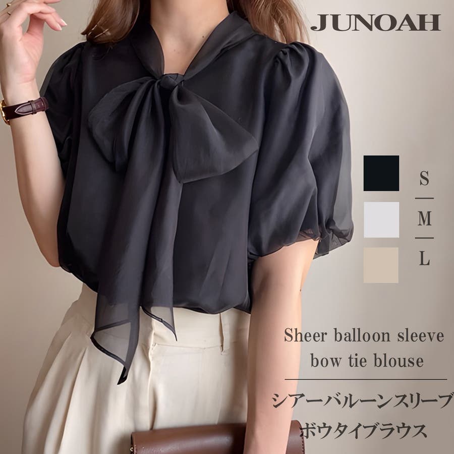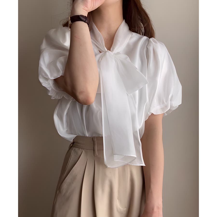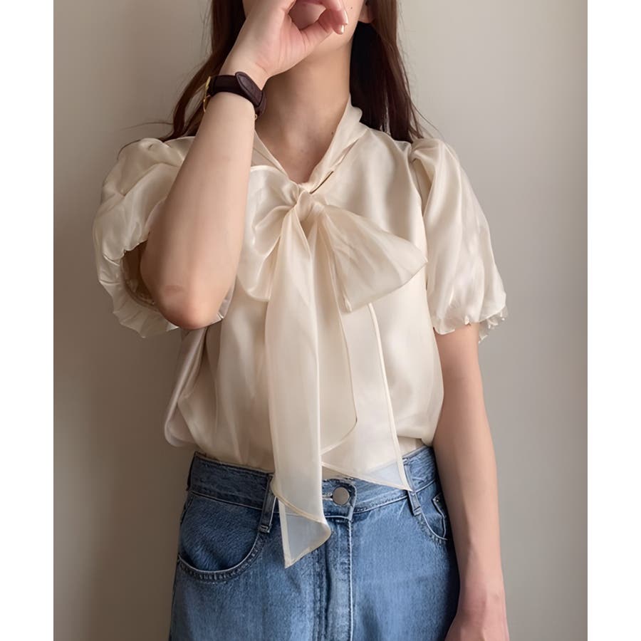 シアーバルーンスリーブボウタイブラウス