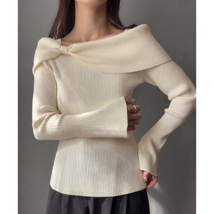 リボンデザインニットトップス