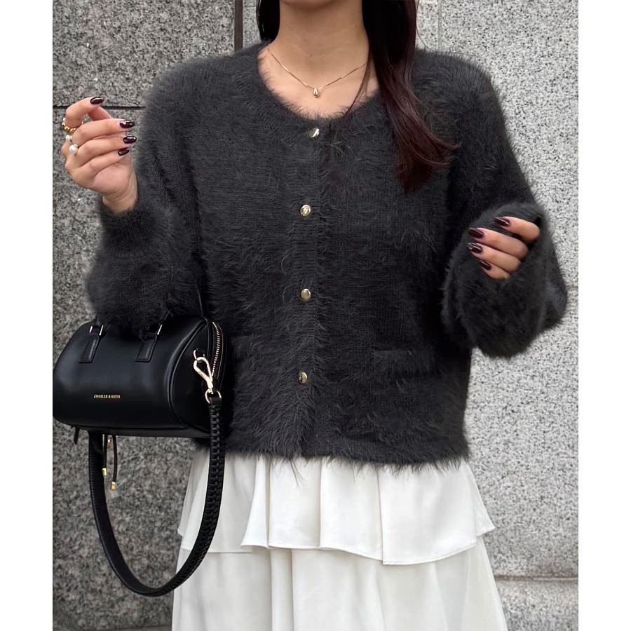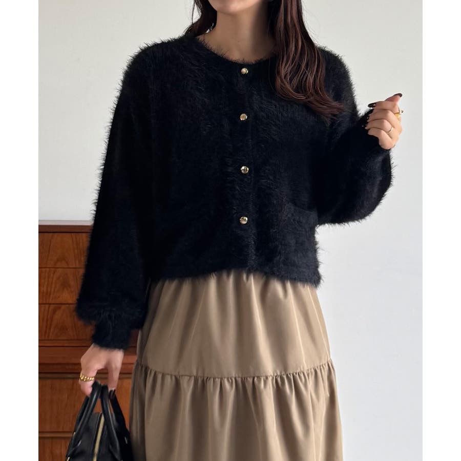 シャギーショートニットカーディガン