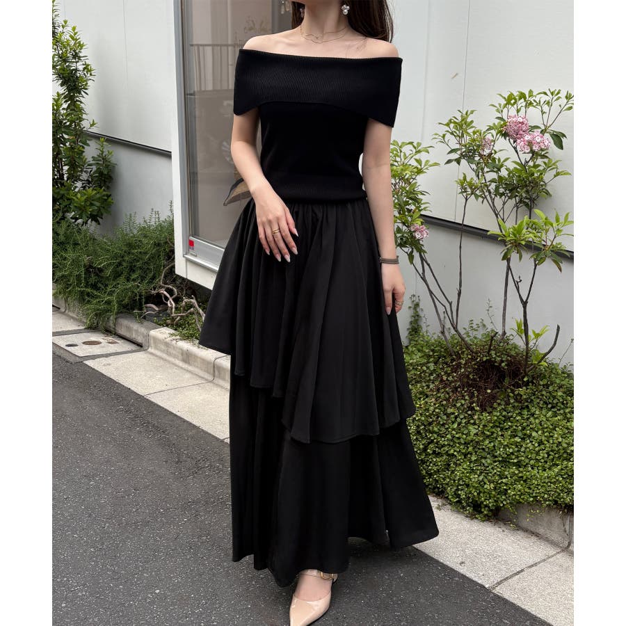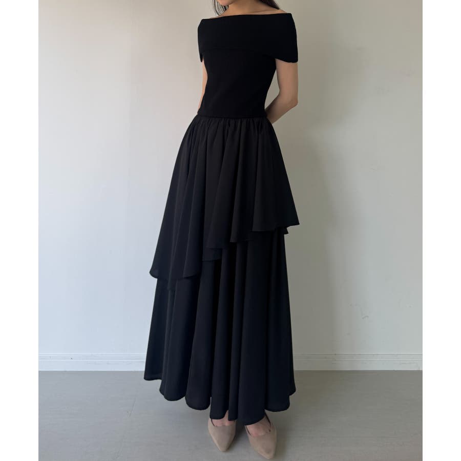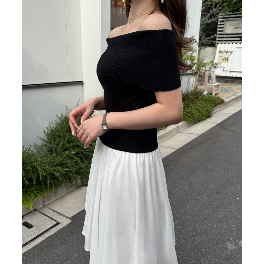 オフショルニットドッキングイレヘムワンピース