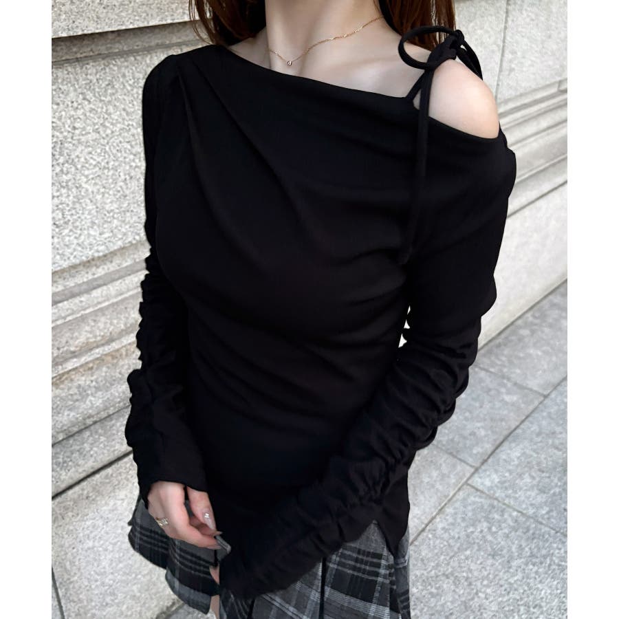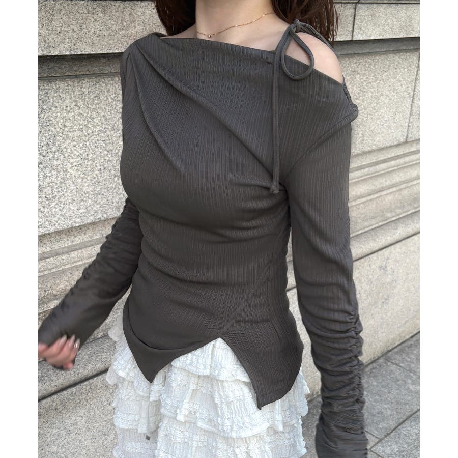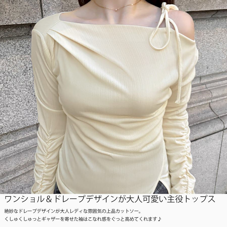 ワンショルアシメドレープカットソー