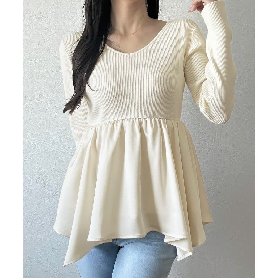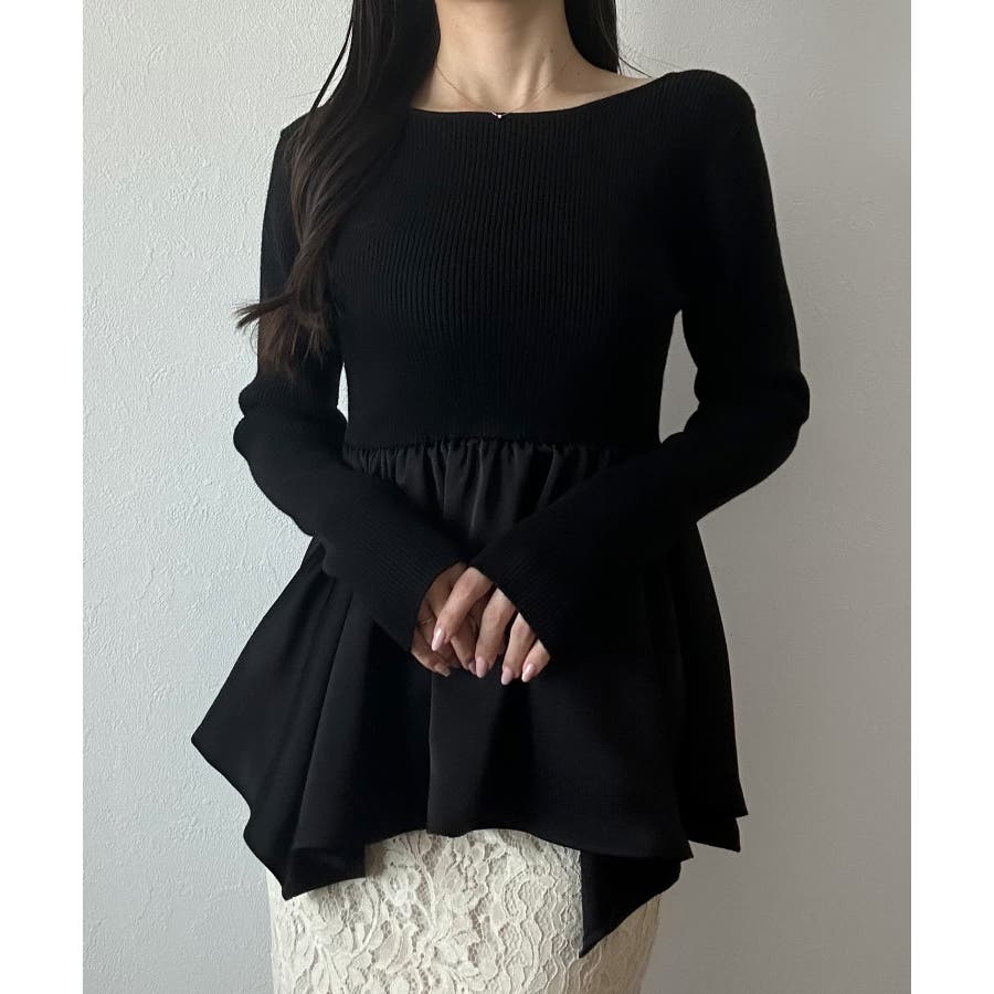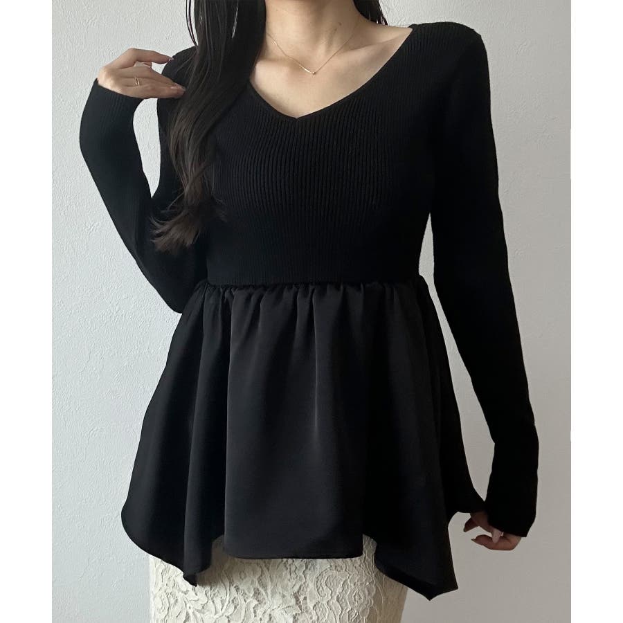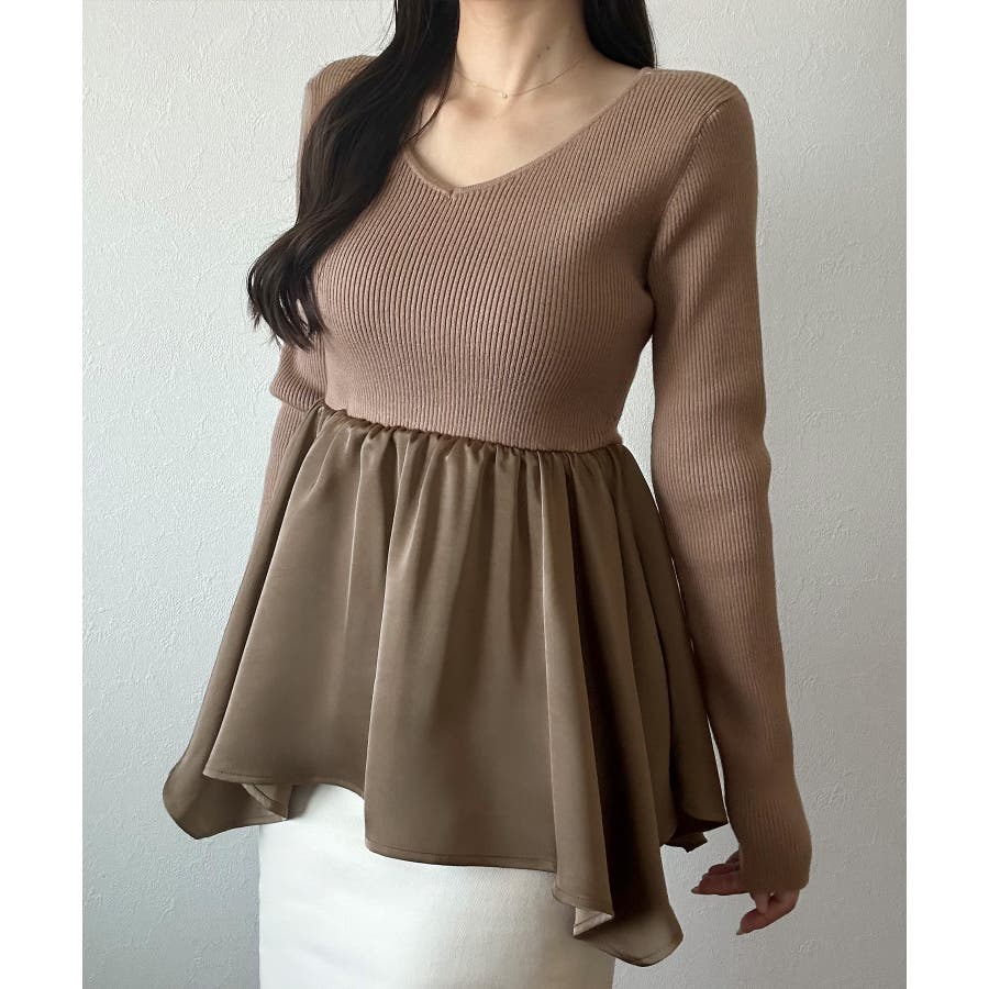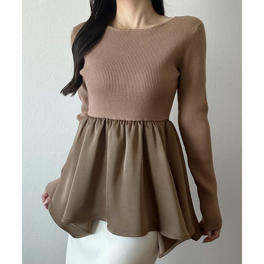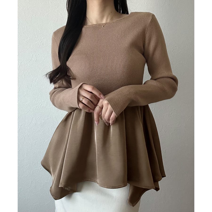 2wayランダムサテンペプラムコンビニットトップス