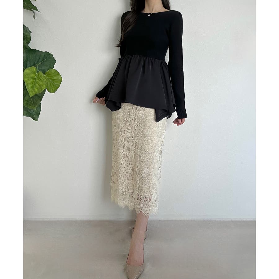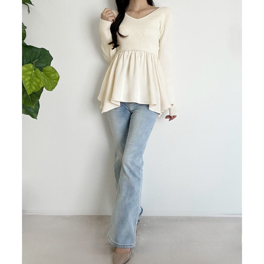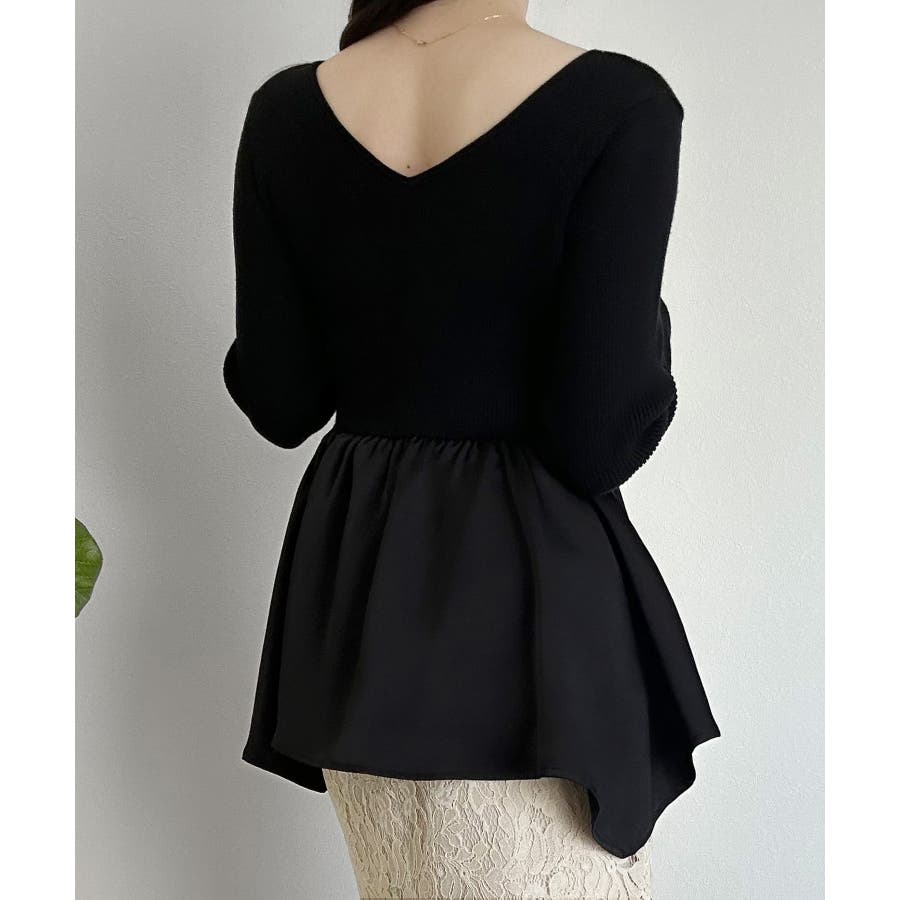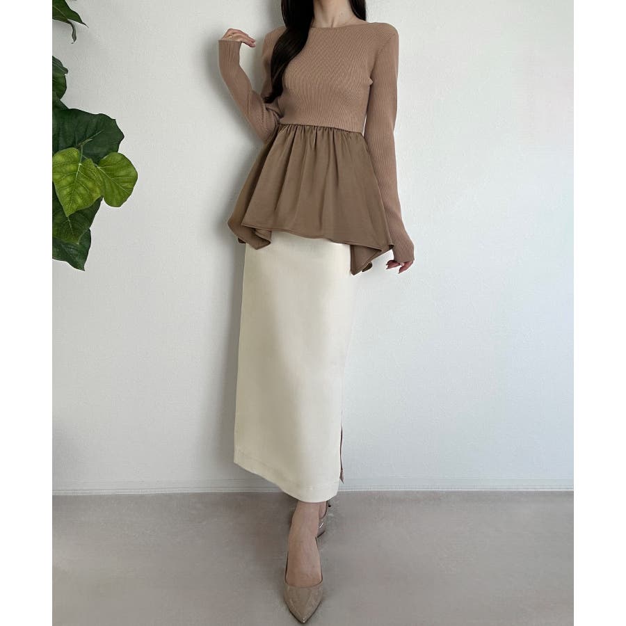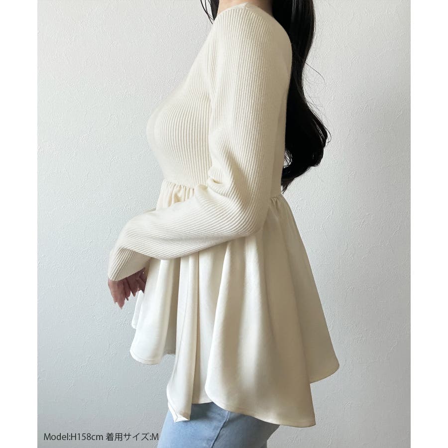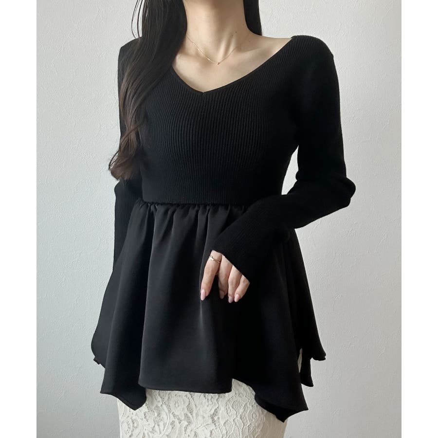 2wayランダムサテンペプラムコンビニットトップス