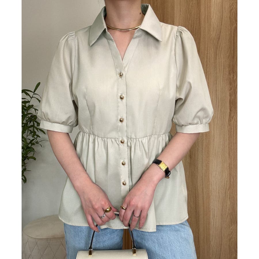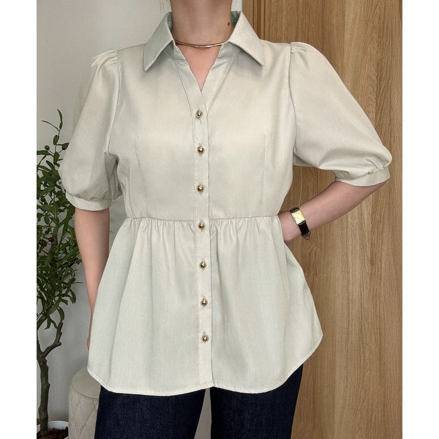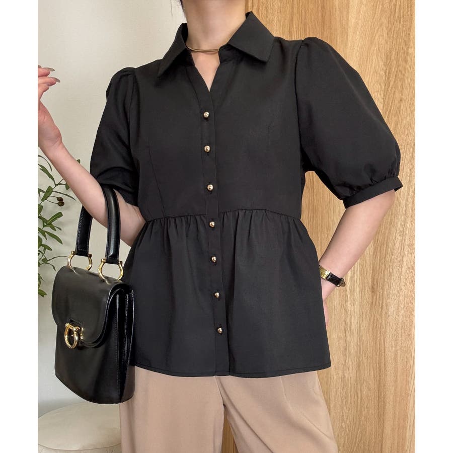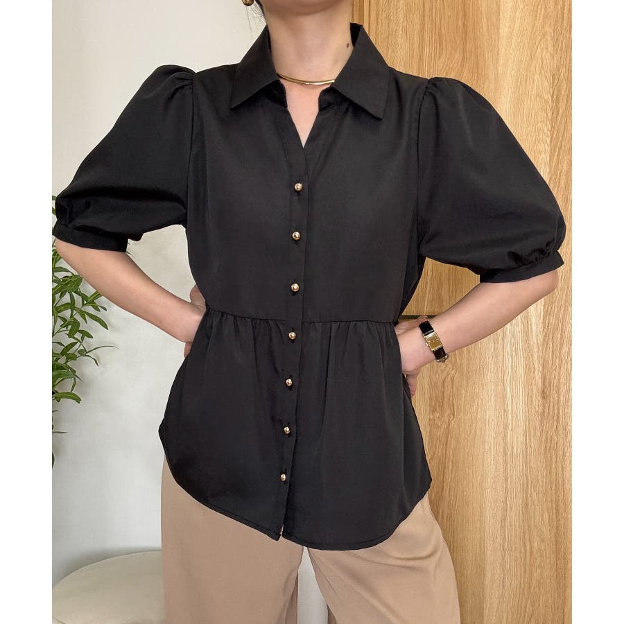 パフスリーブペプラムブラウス