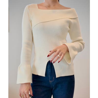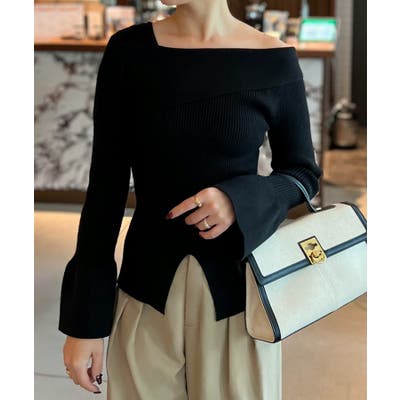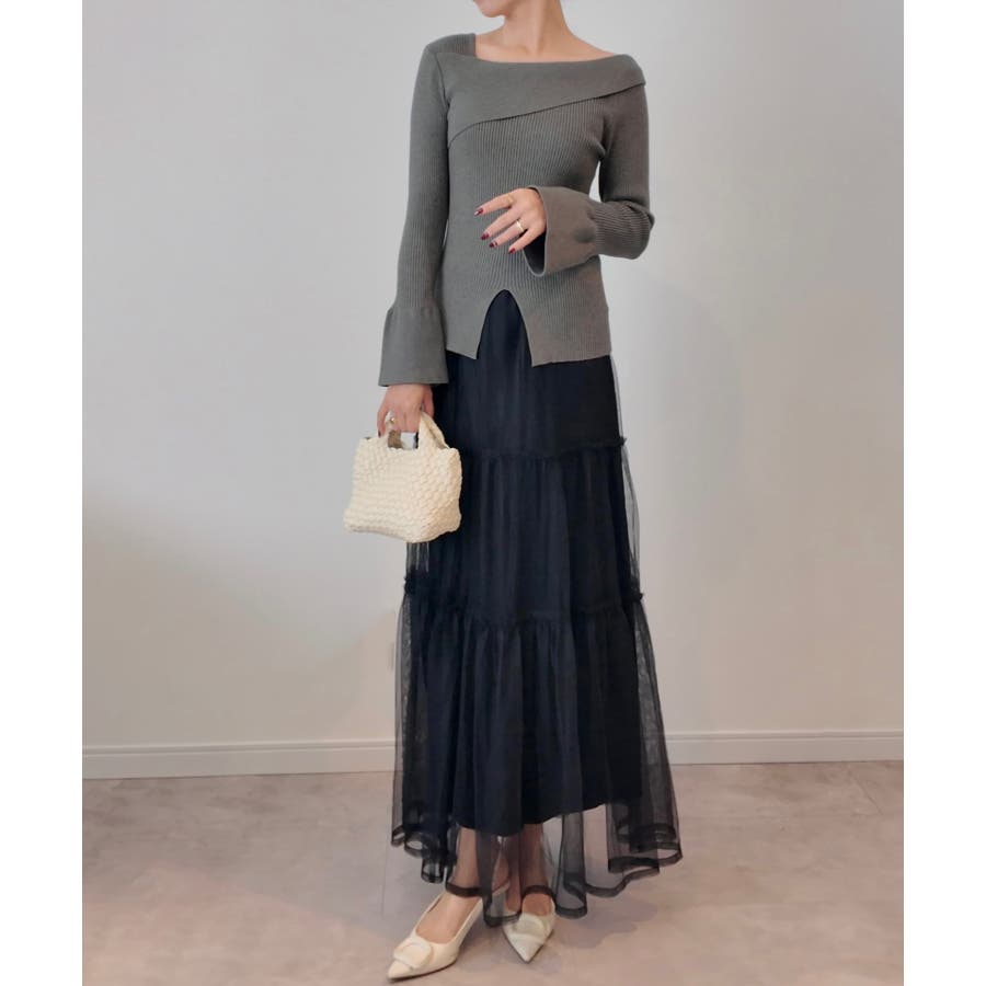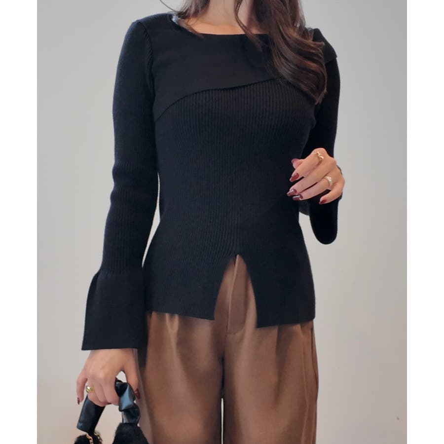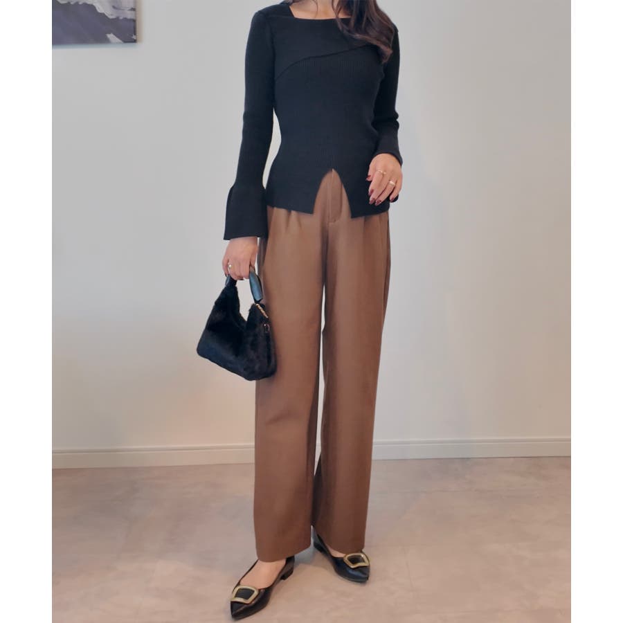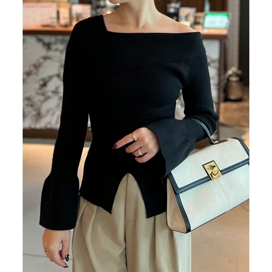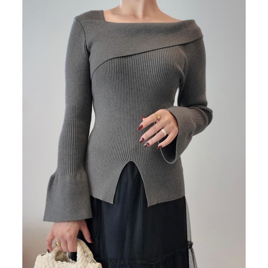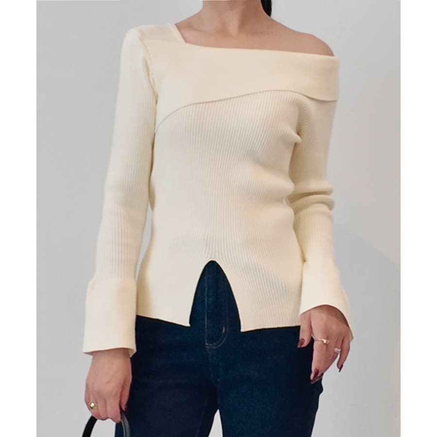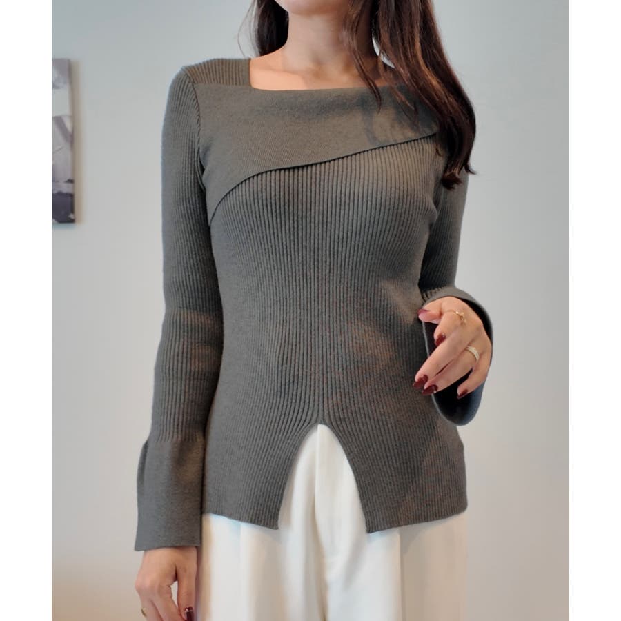 2wayワンショルフロントスリットリブニット