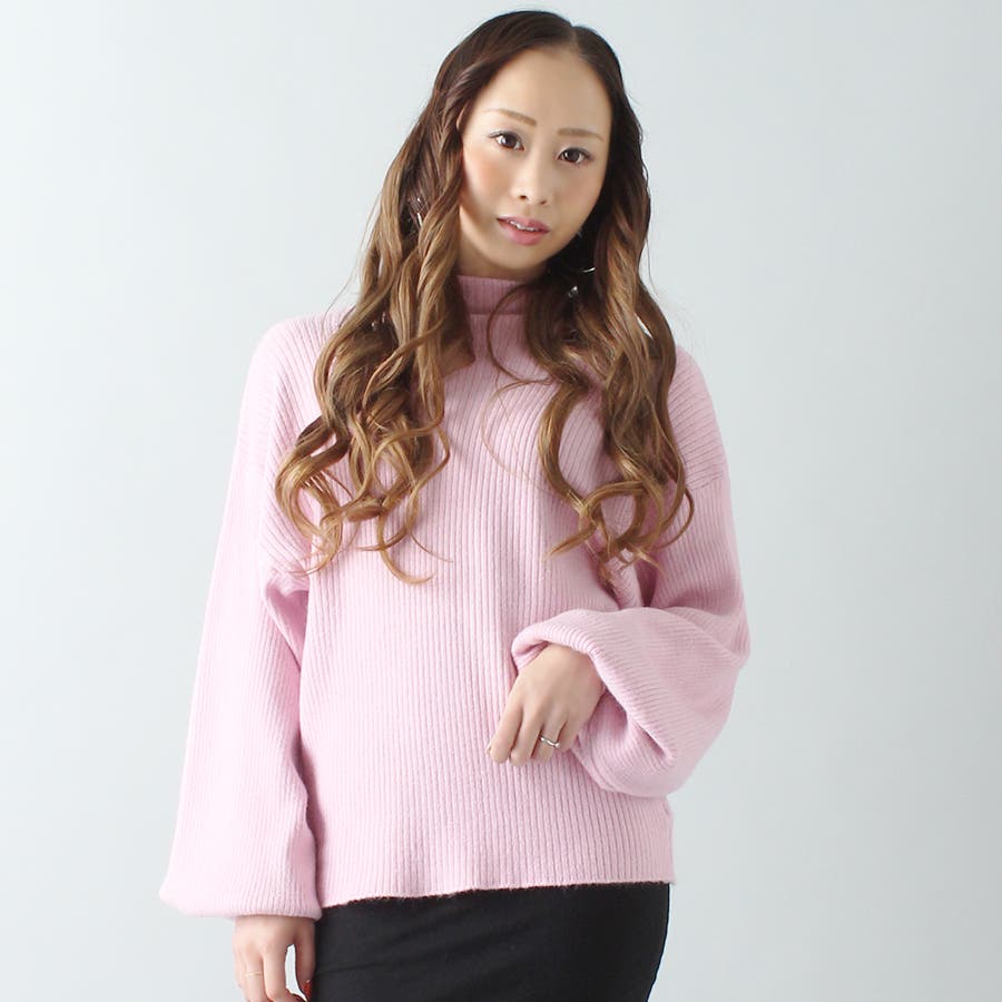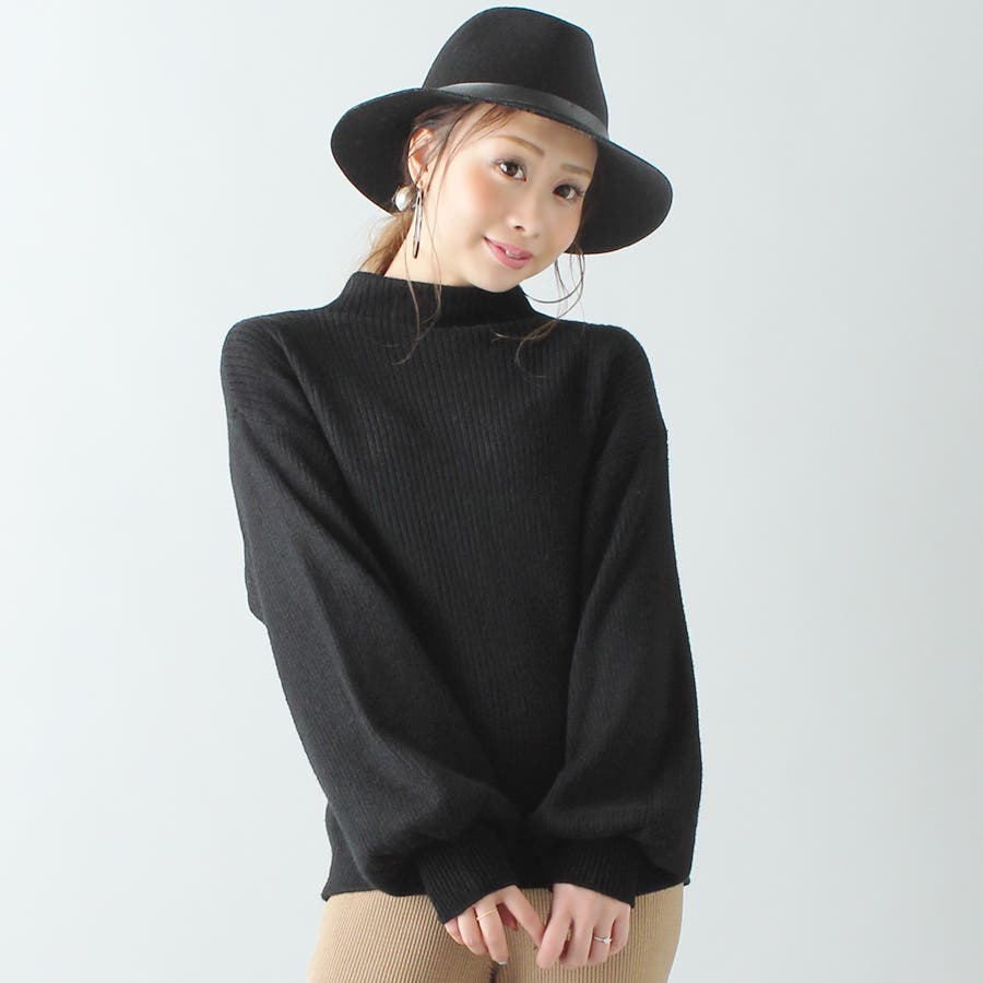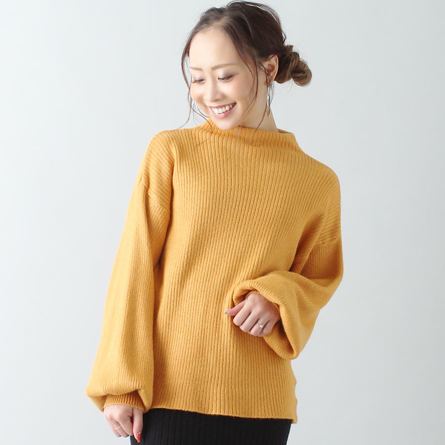 ボトルネックスリーブニットトップス/袖ゆったり/タートルネック/春夏秋冬