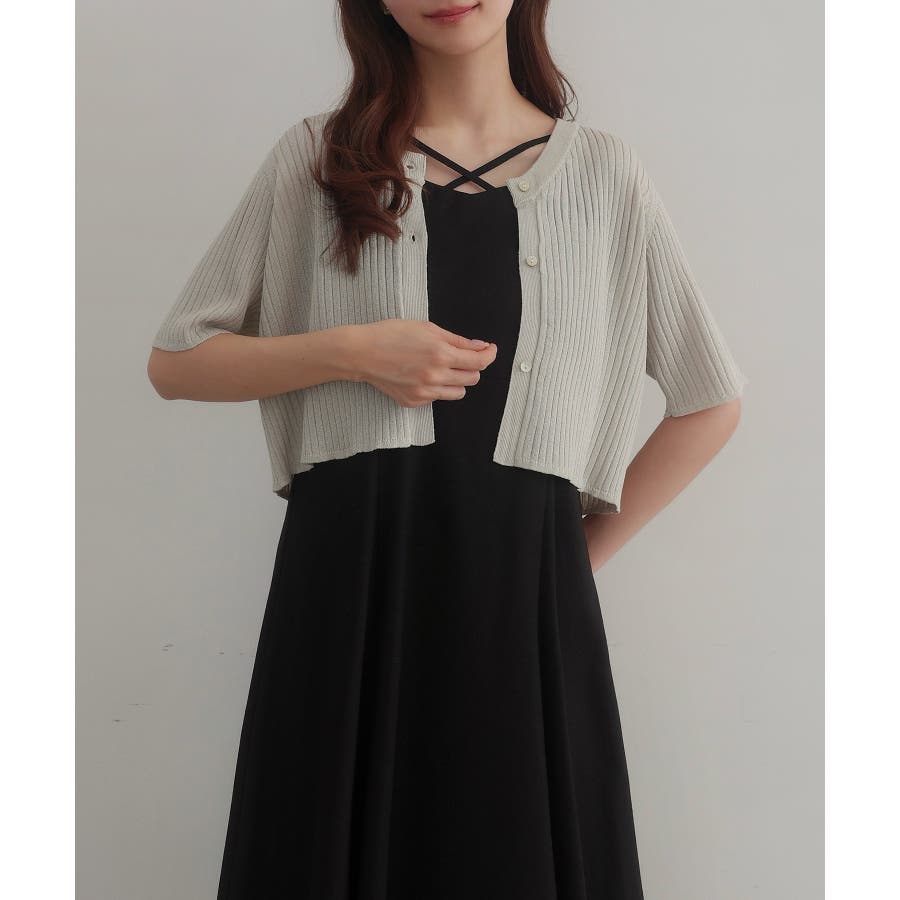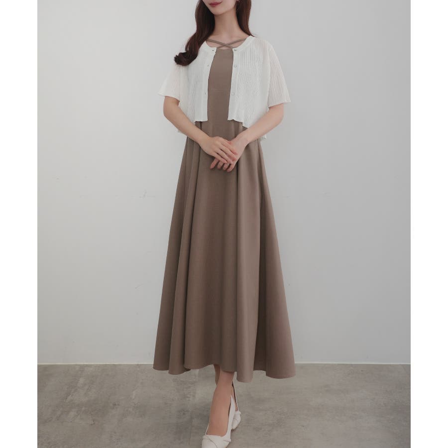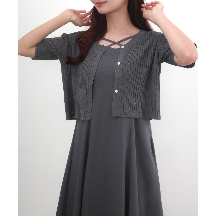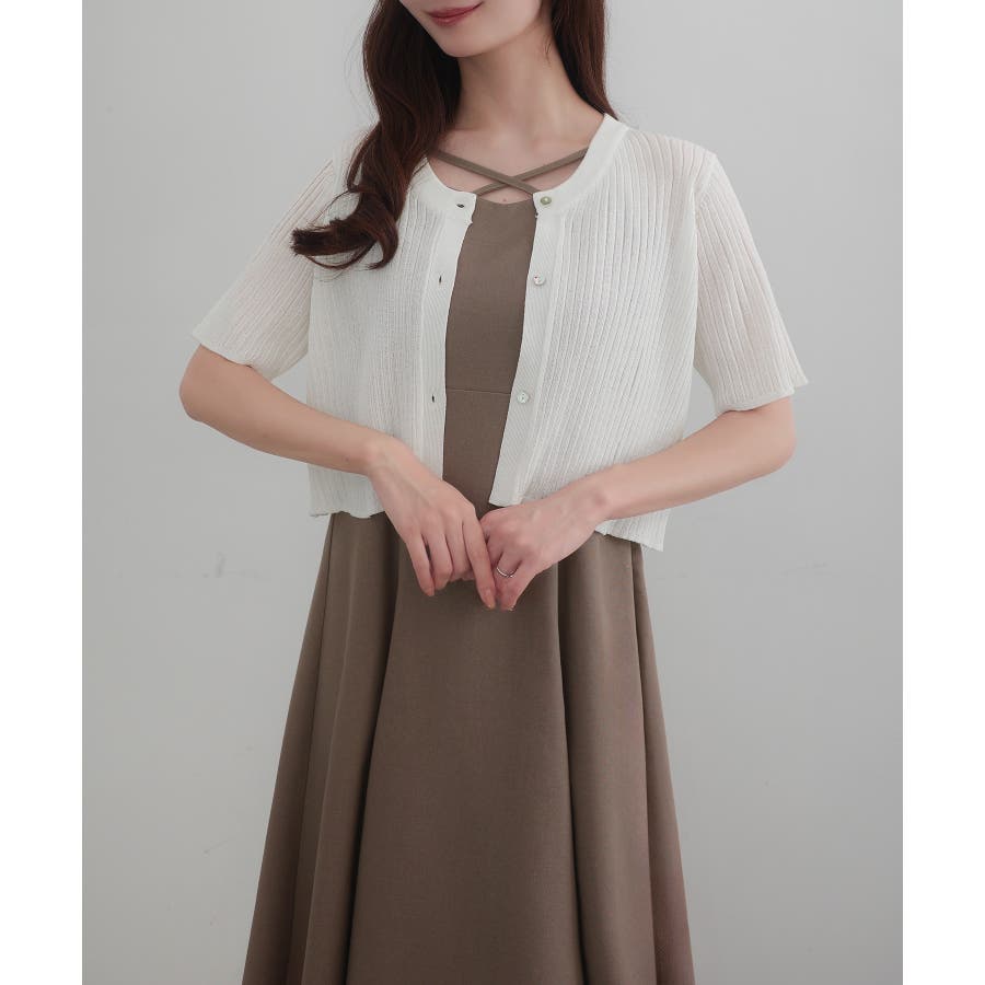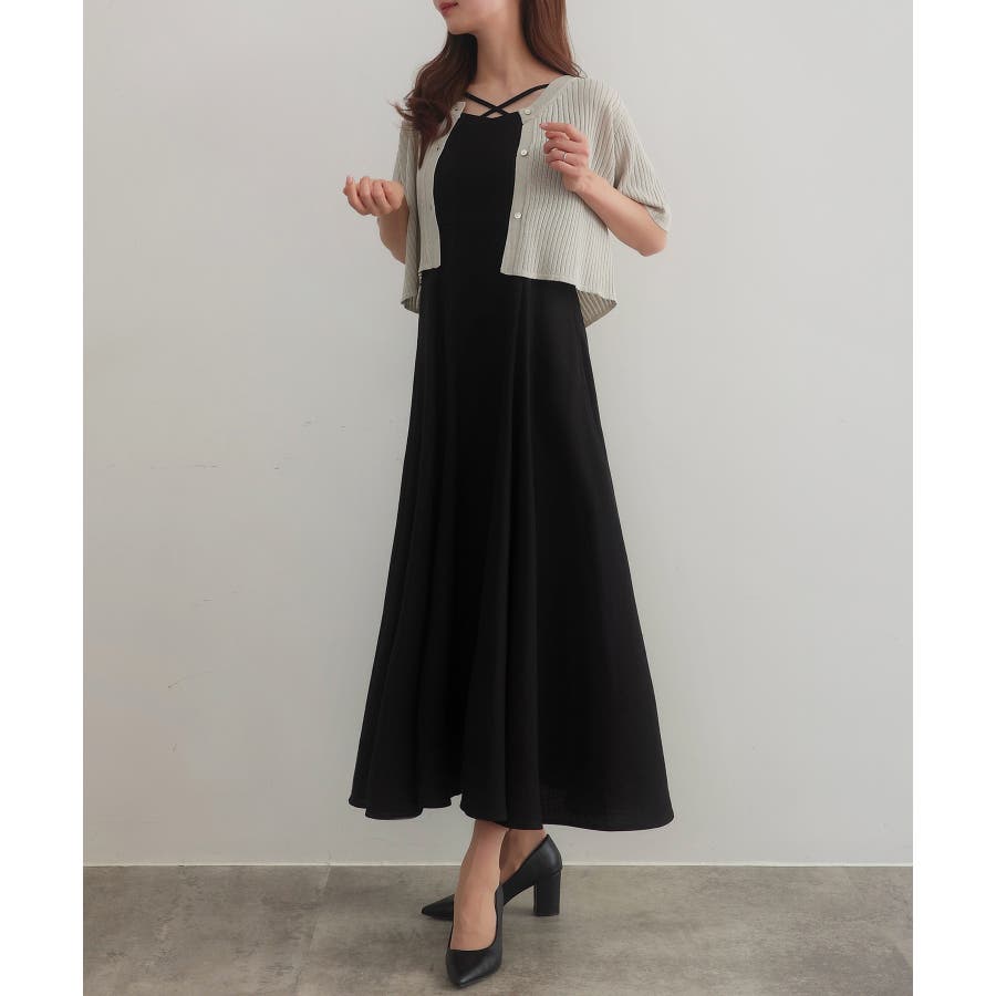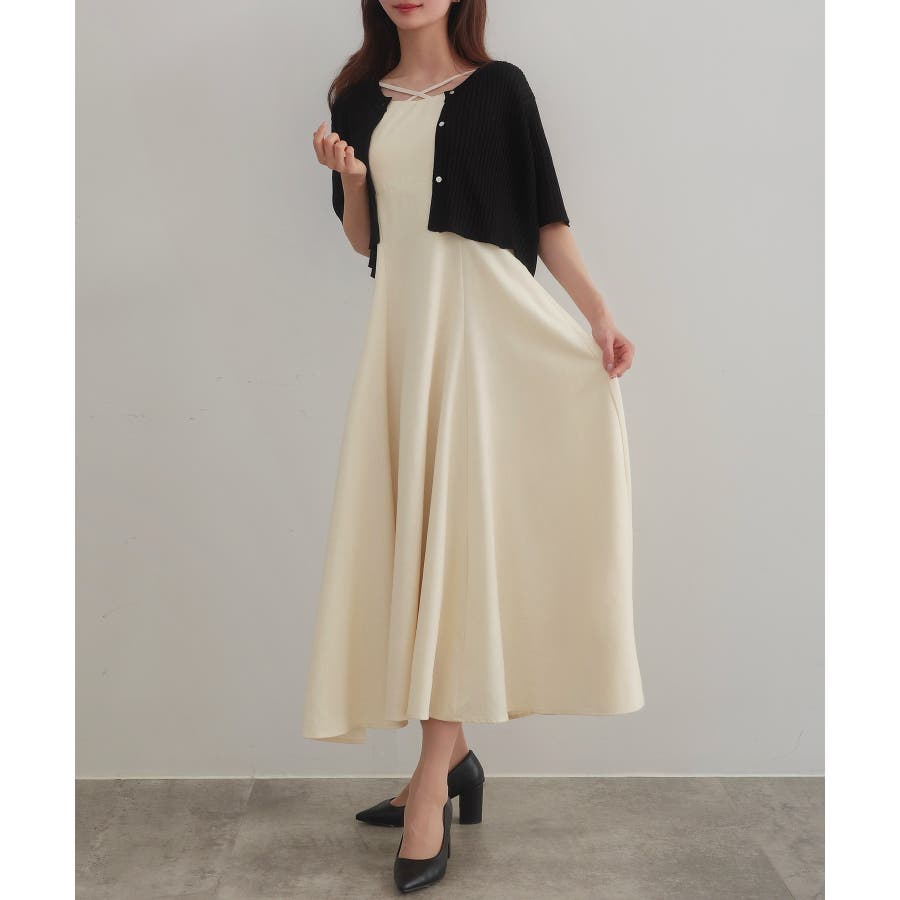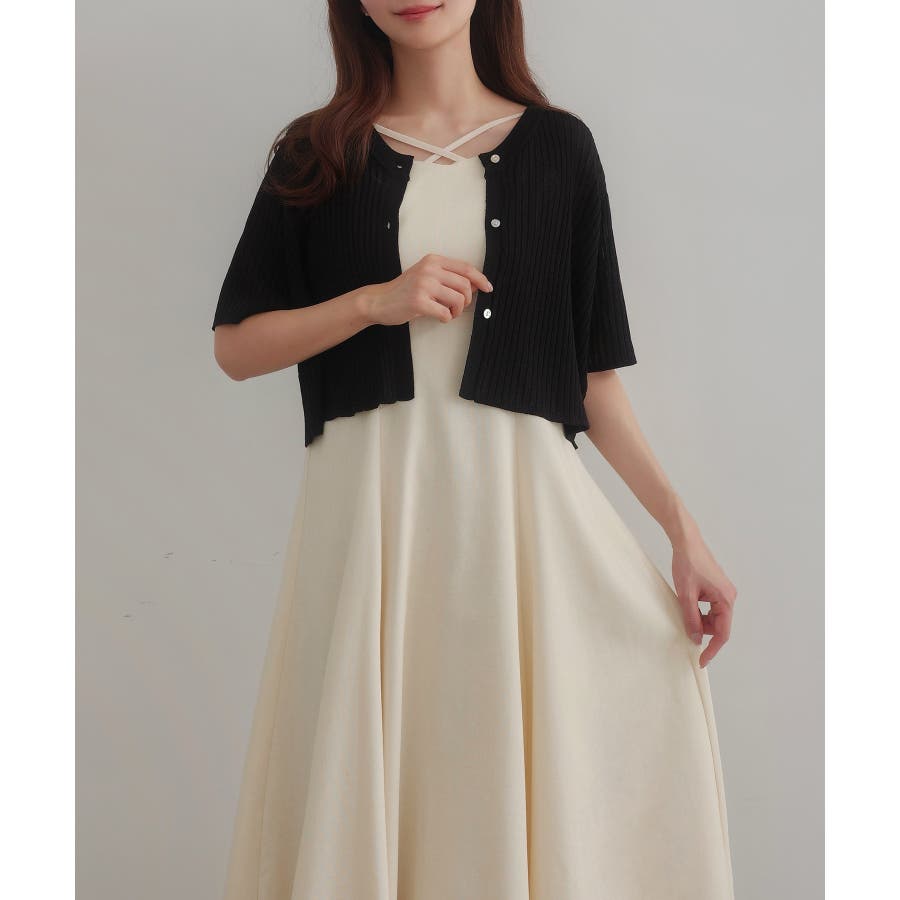 CENEA シアー半袖リブカーディガン+リネンフレアキャミワンピース set