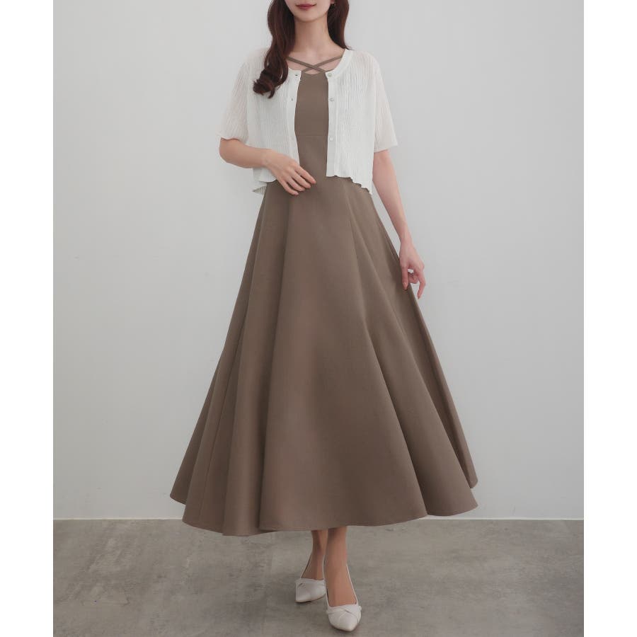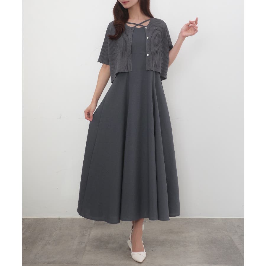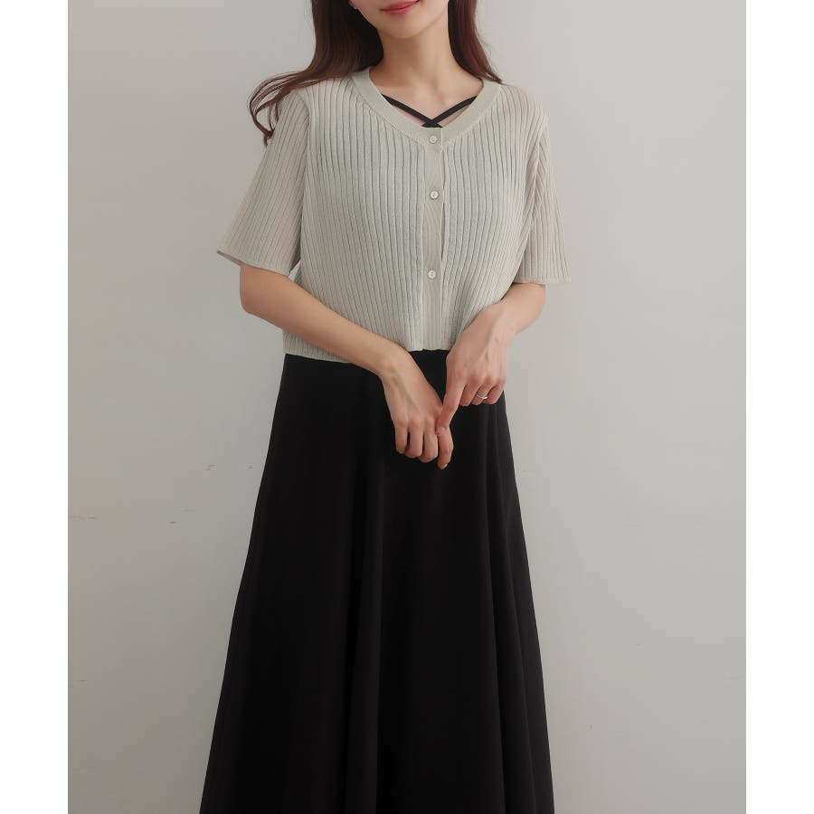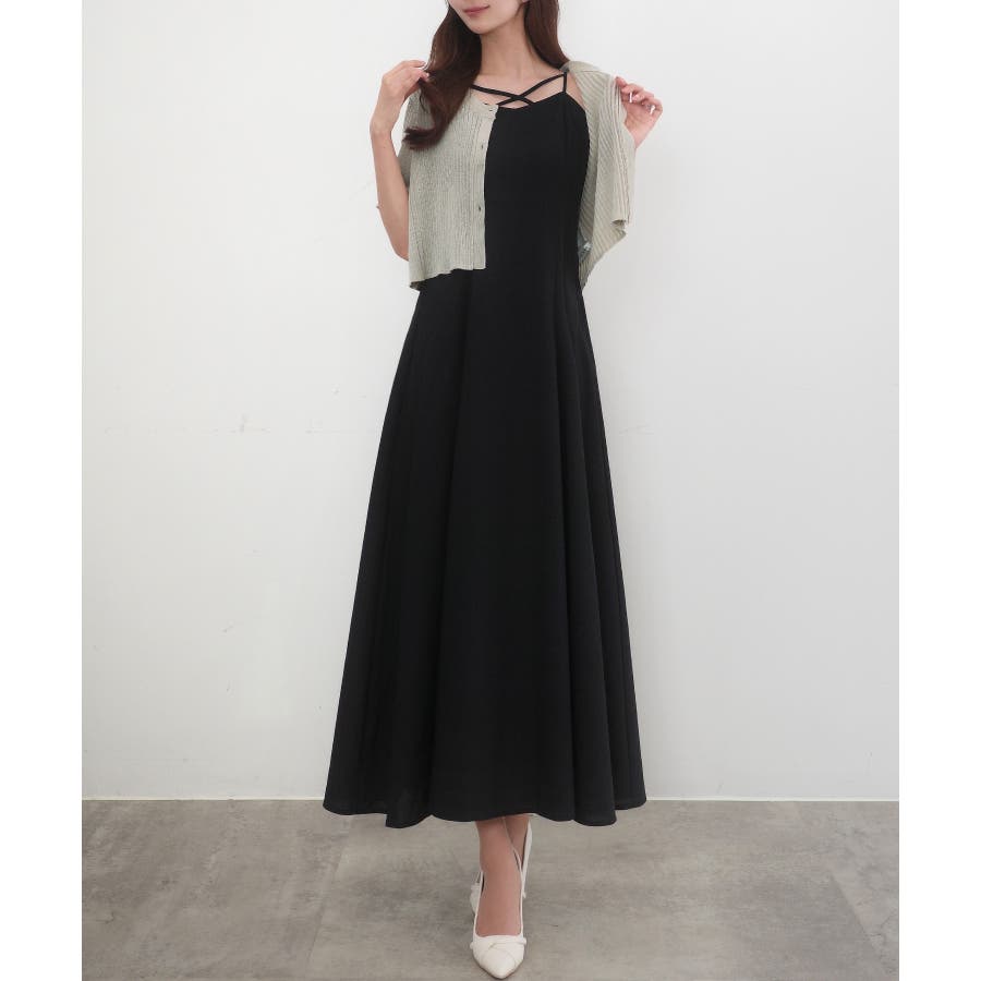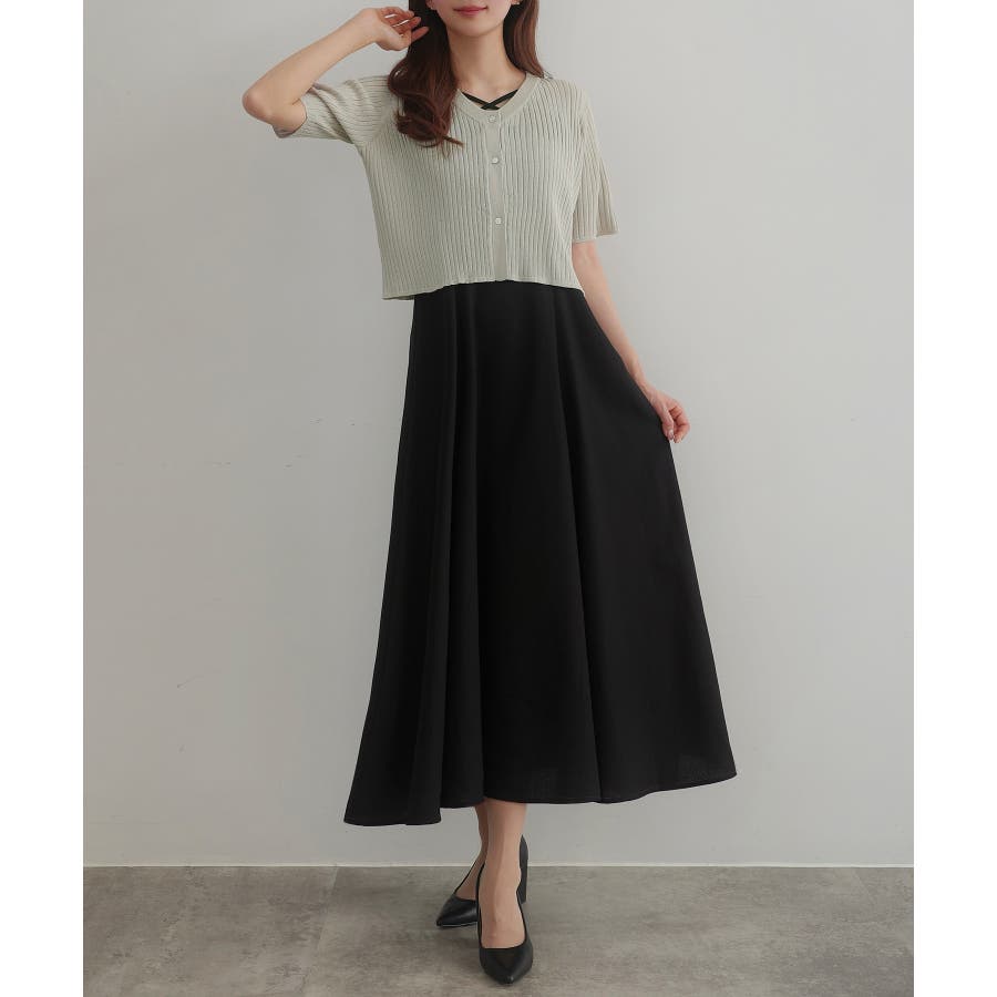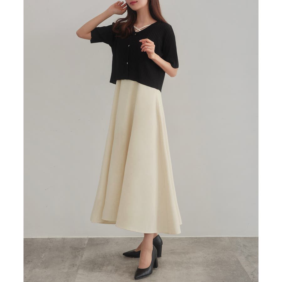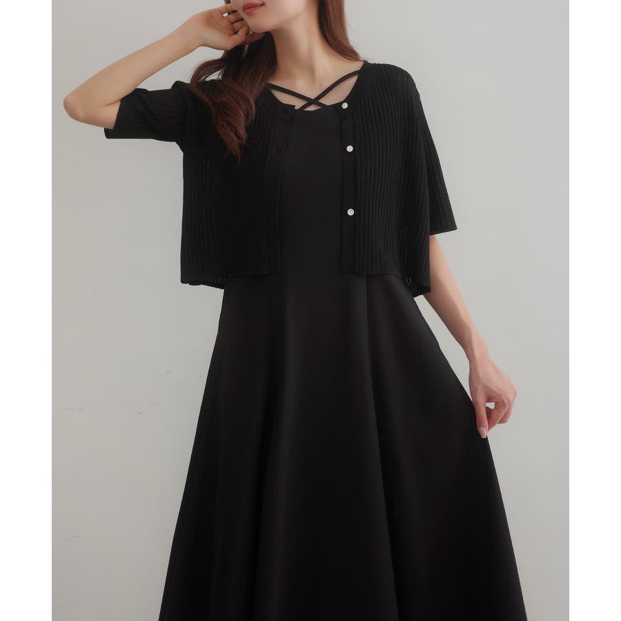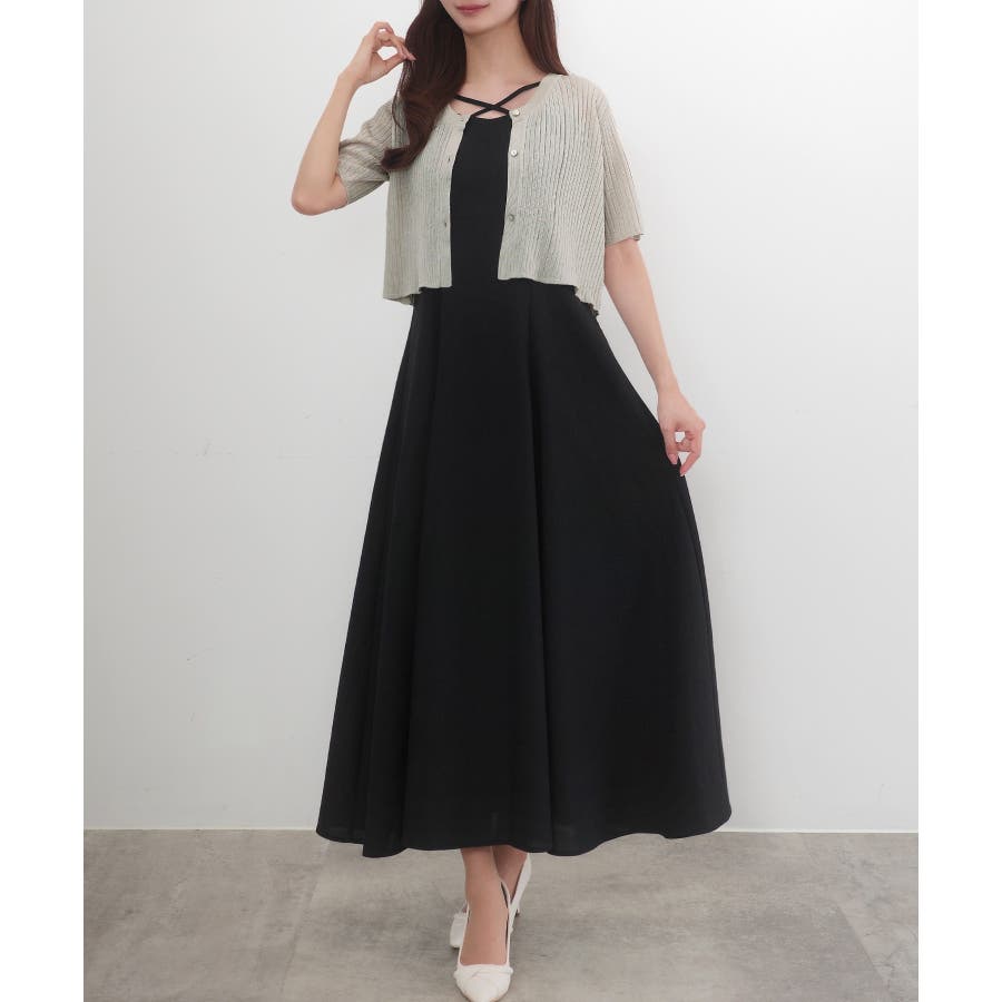 CENEA シアー半袖リブカーディガン+リネンフレアキャミワンピース set