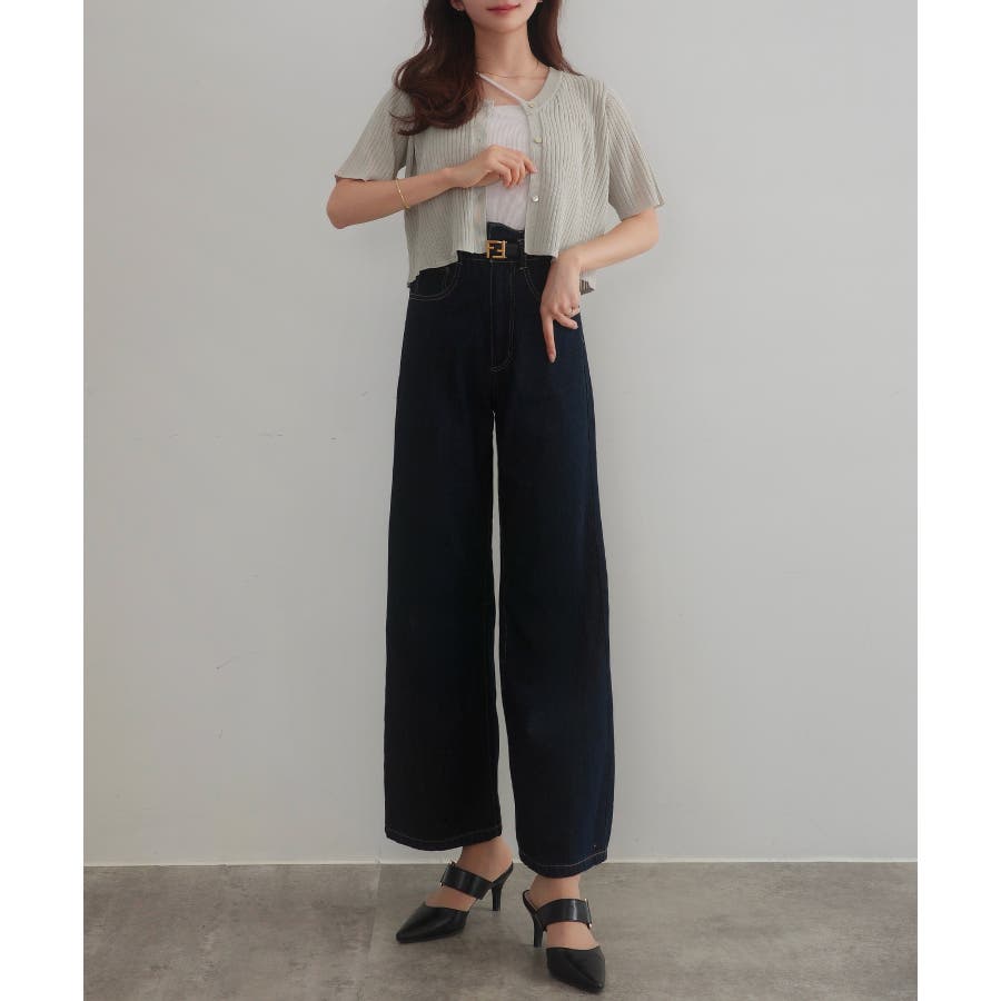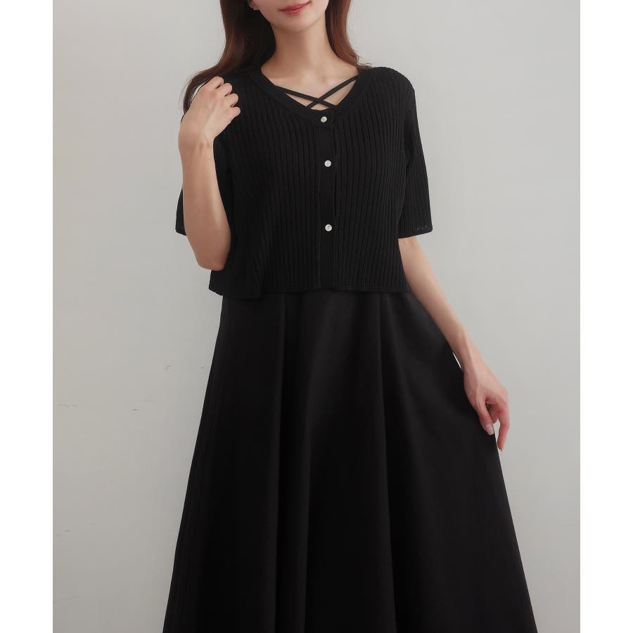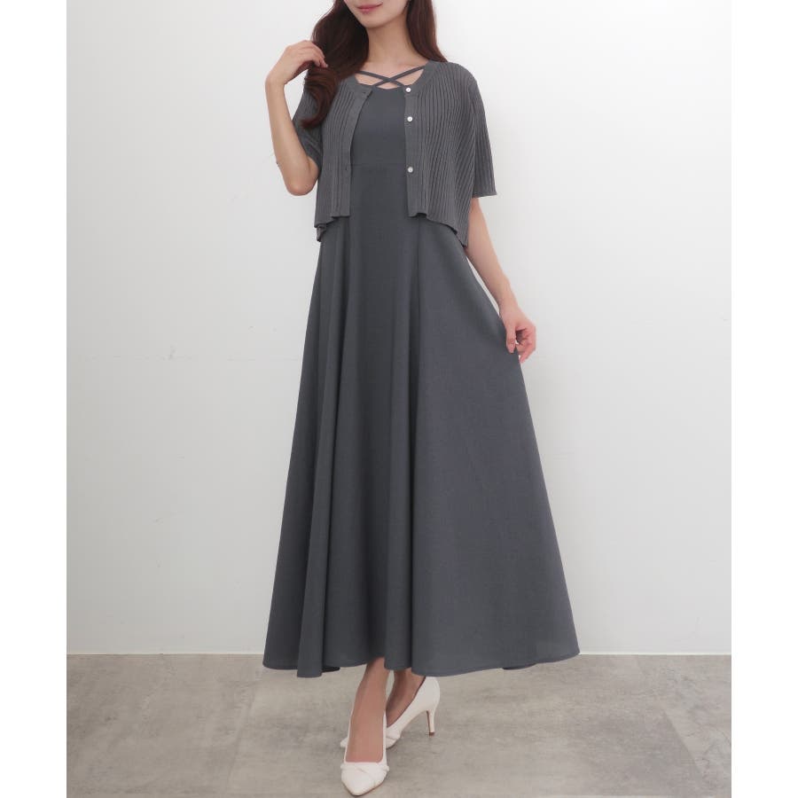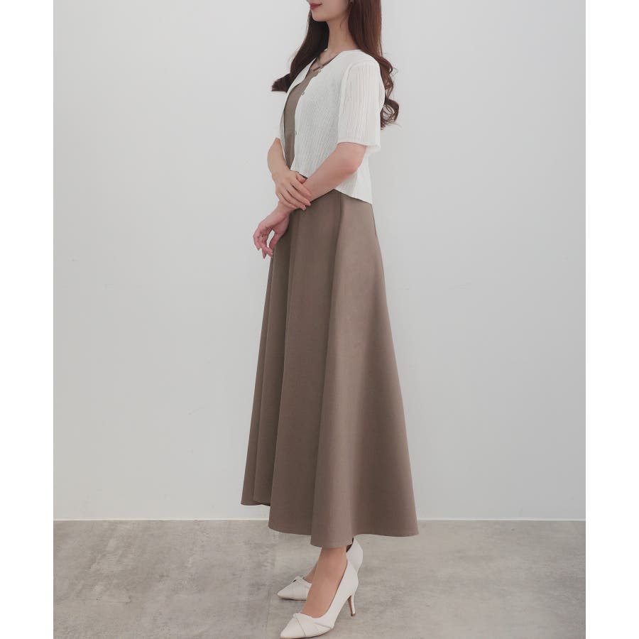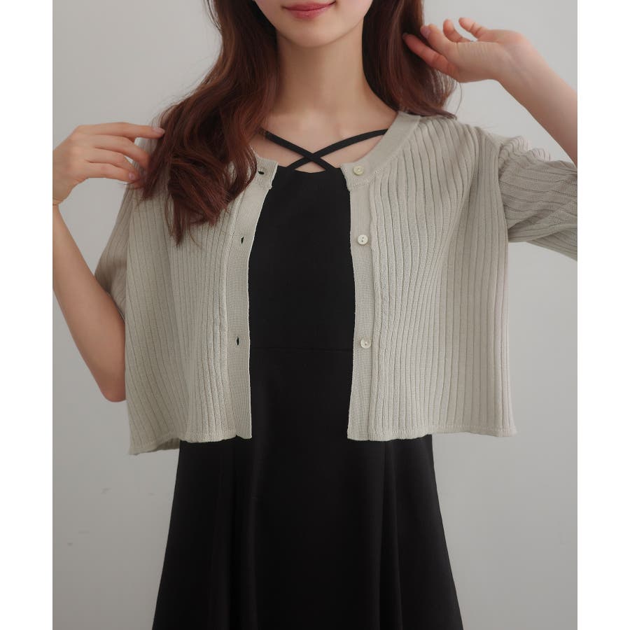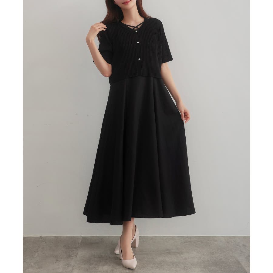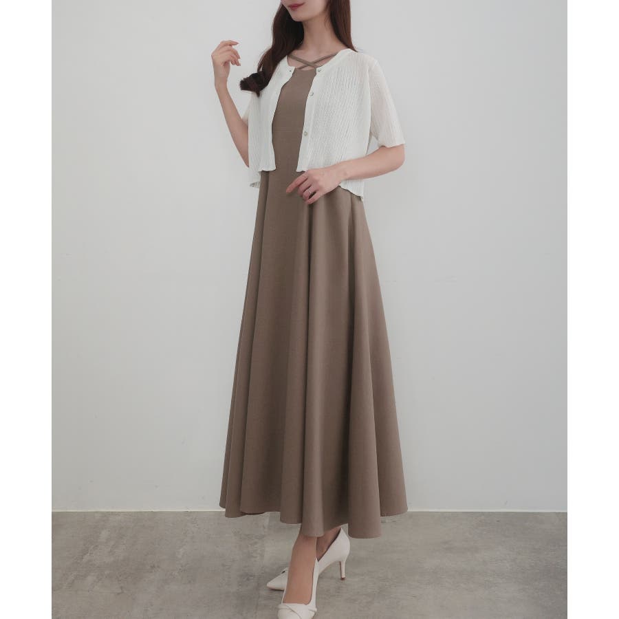 CENEA シアー半袖リブカーディガン+リネンフレアキャミワンピース set