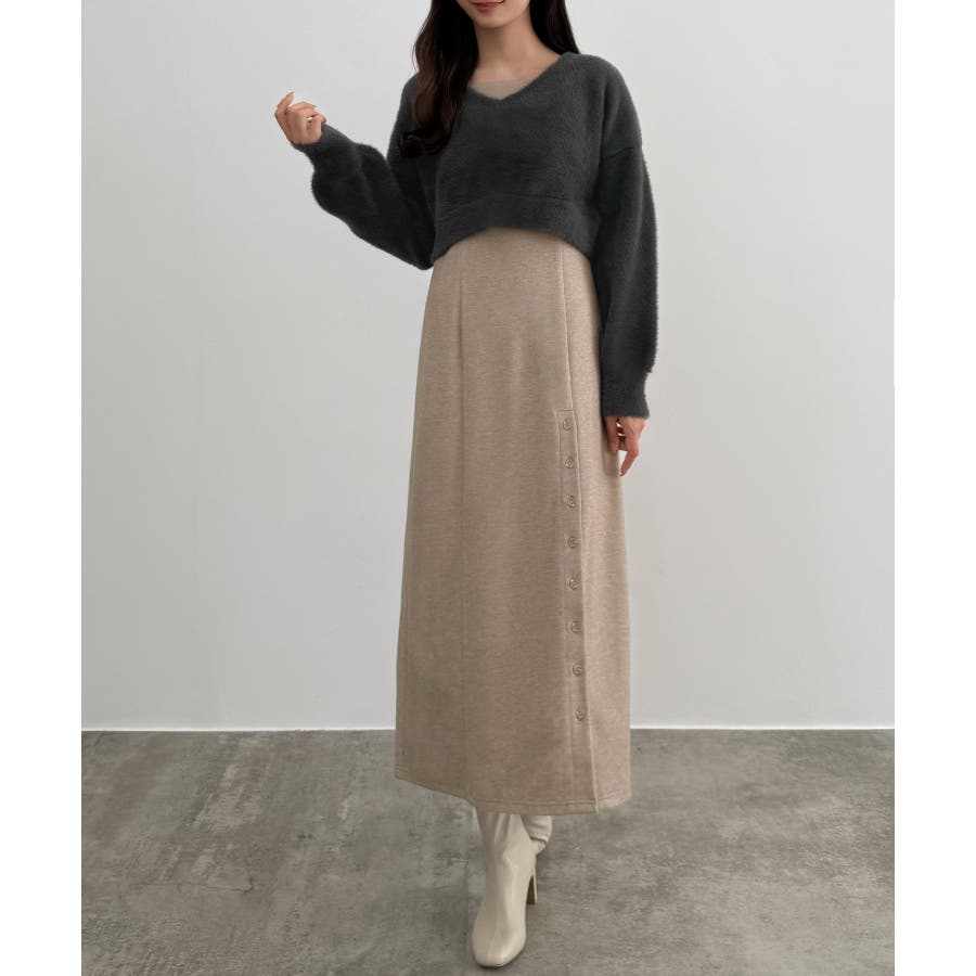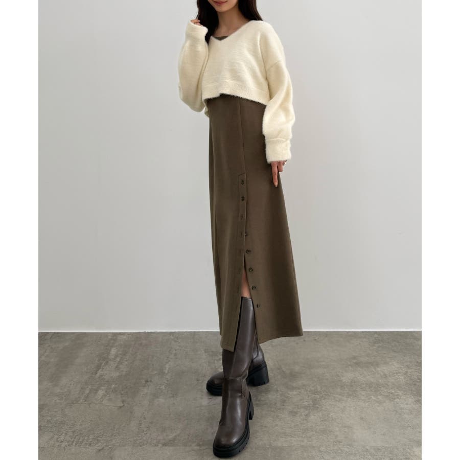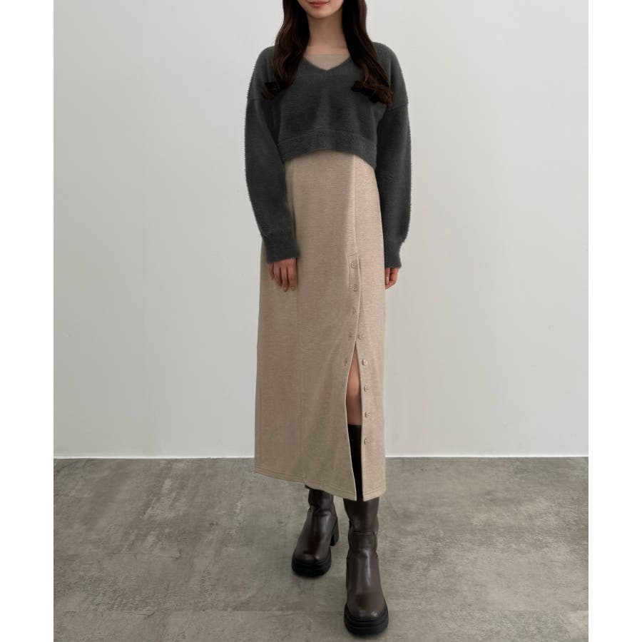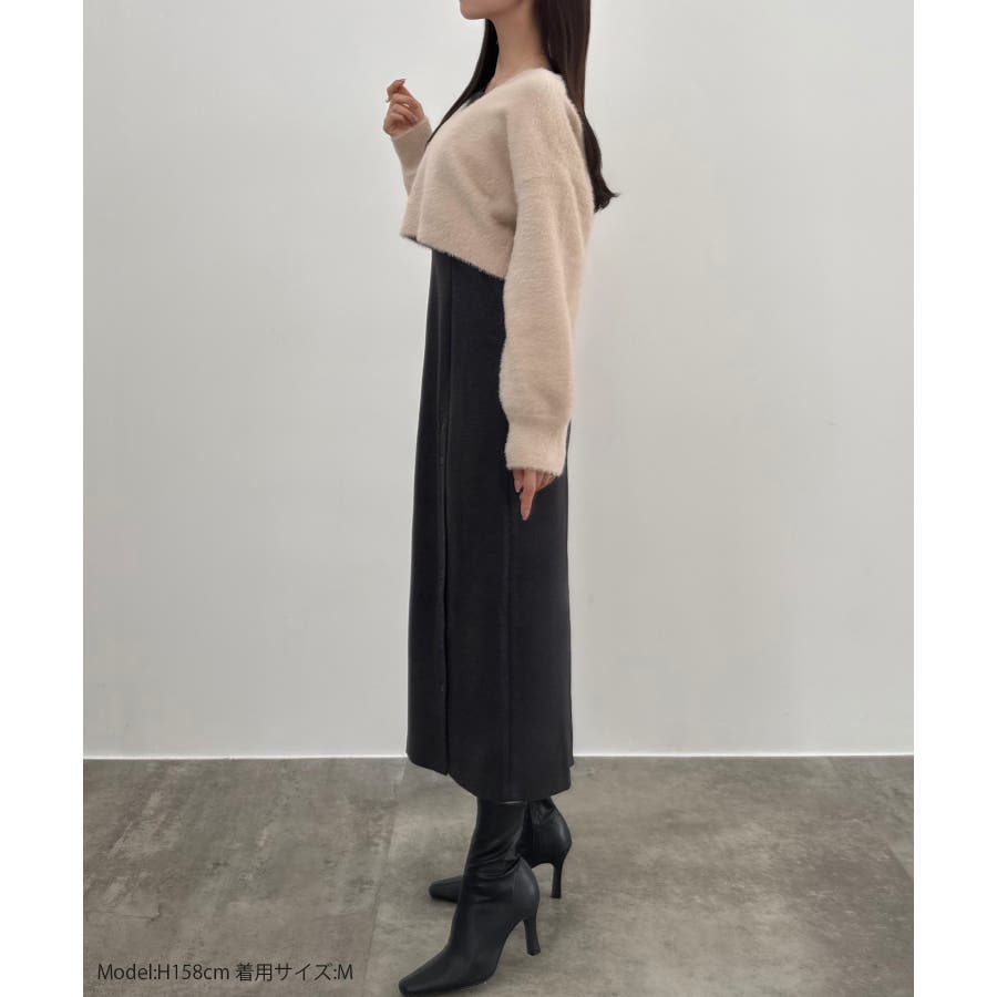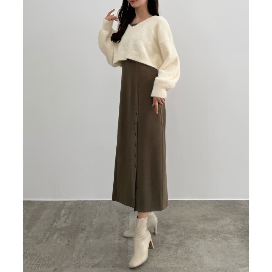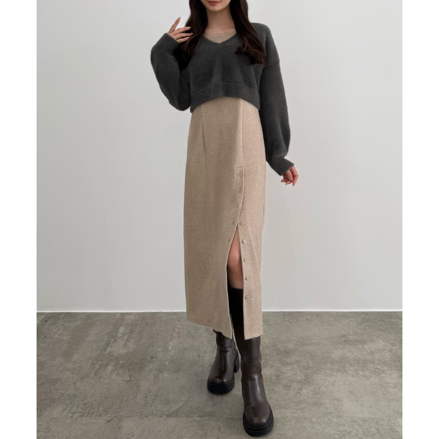 CENEA シャギーショートニット+釦スリットキャミワンピースset