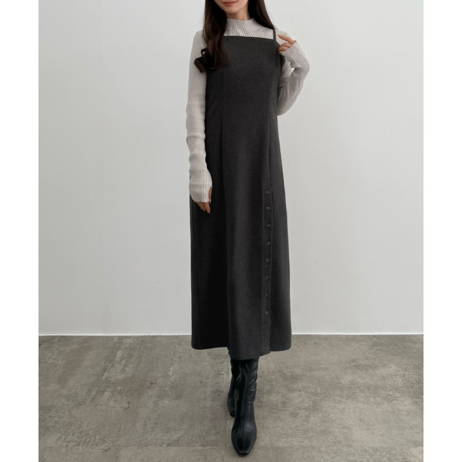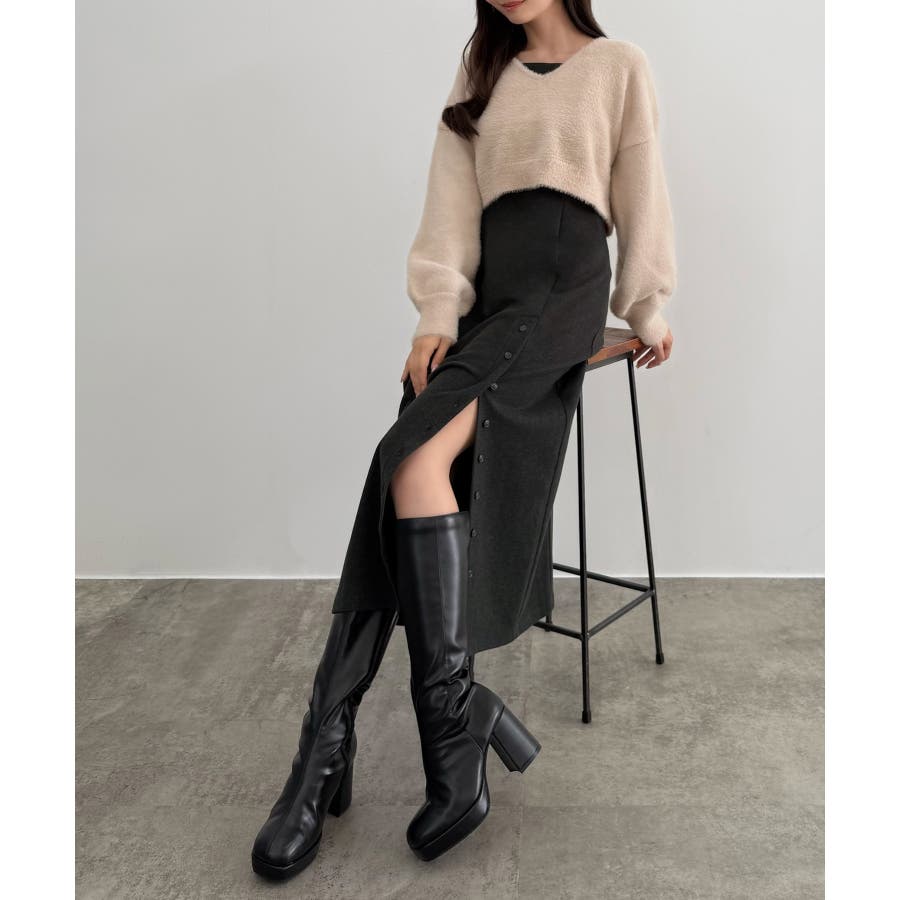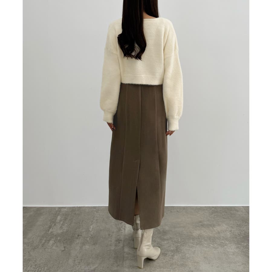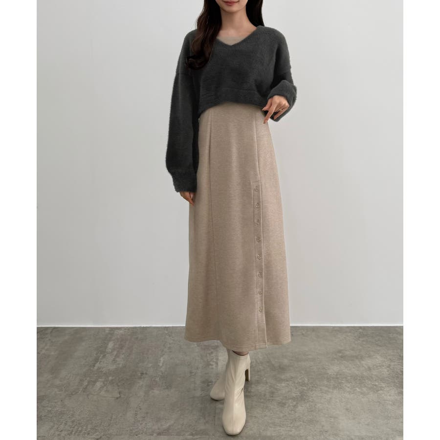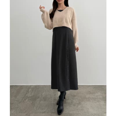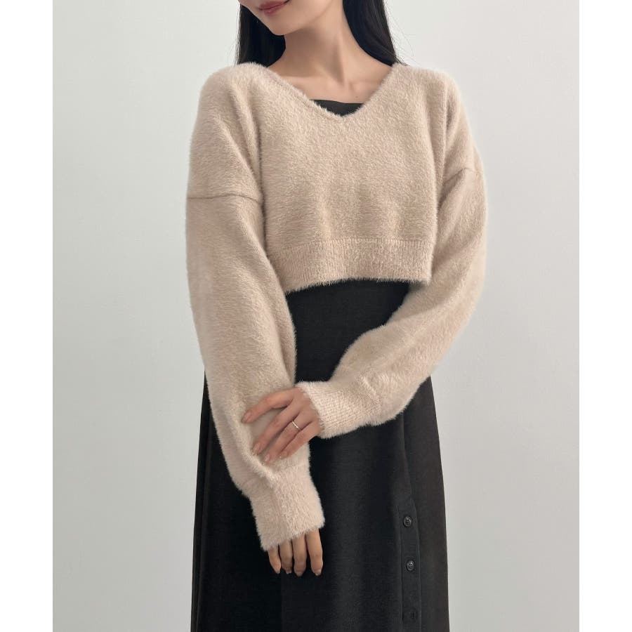 CENEA シャギーショートニット+釦スリットキャミワンピースset