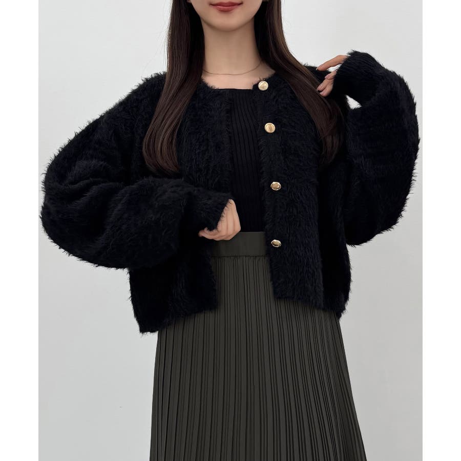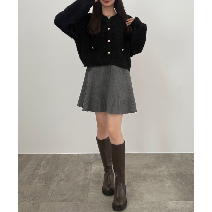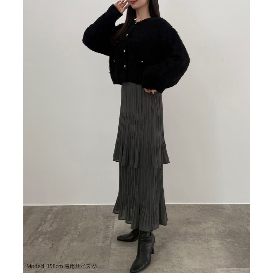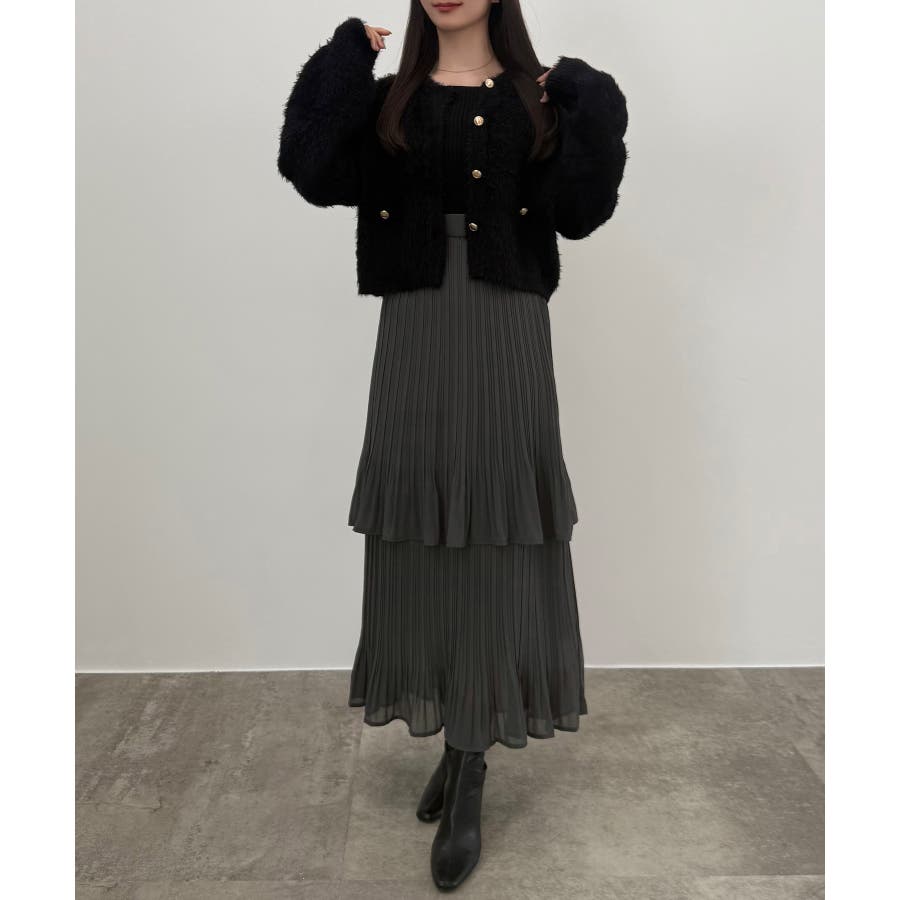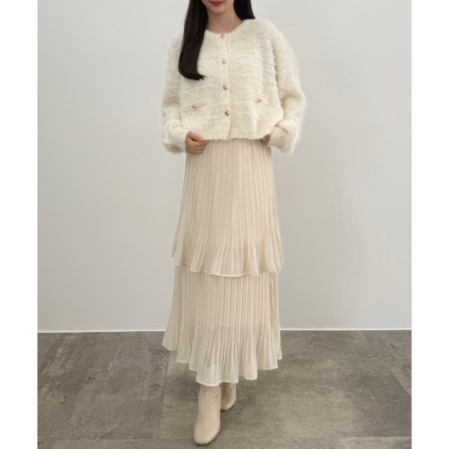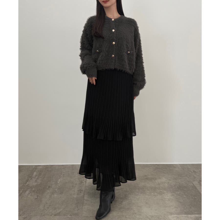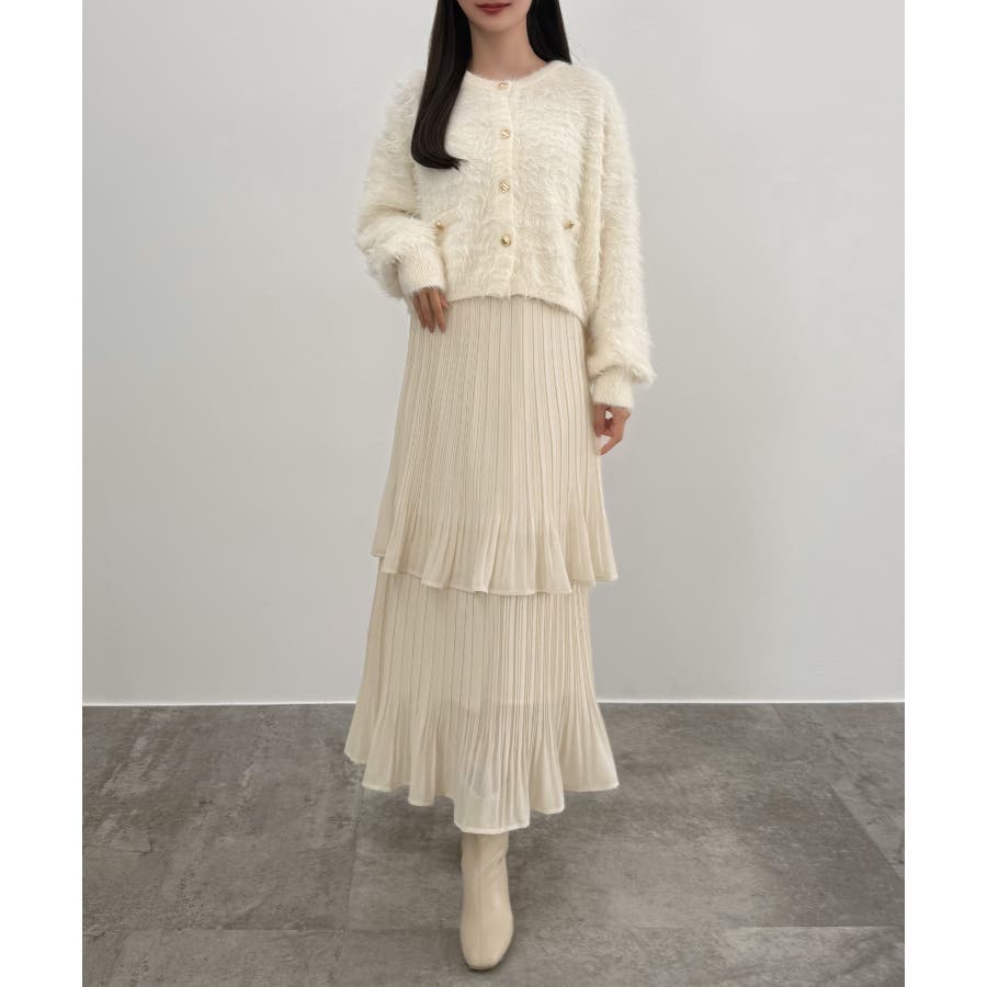 CENEA (薄手)金ボタンシャギーニットカーディガン+プリーツスカートset