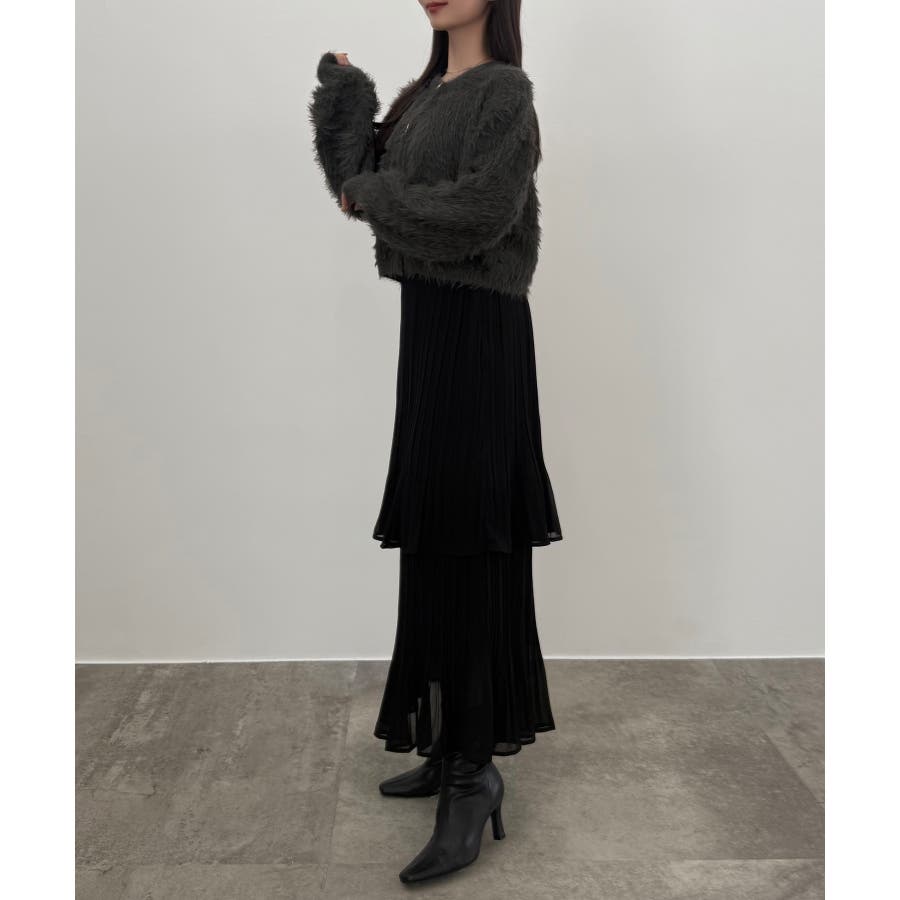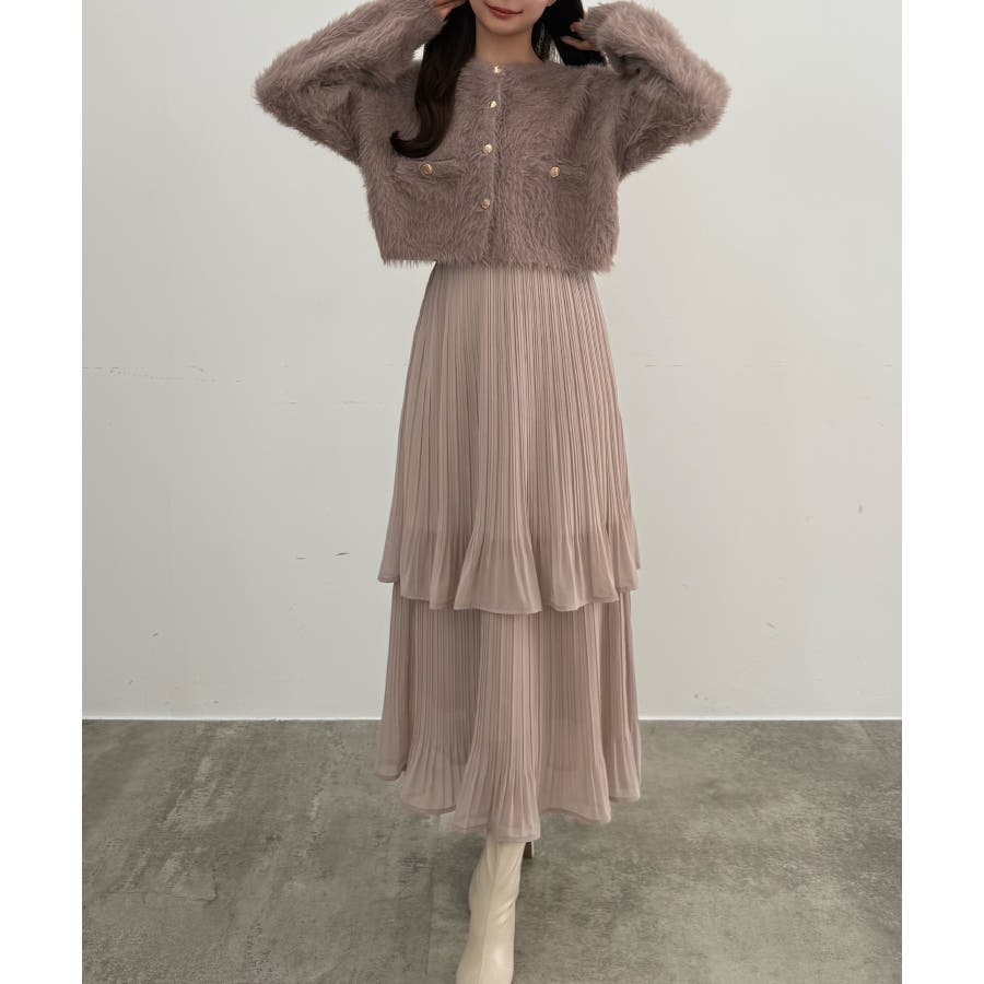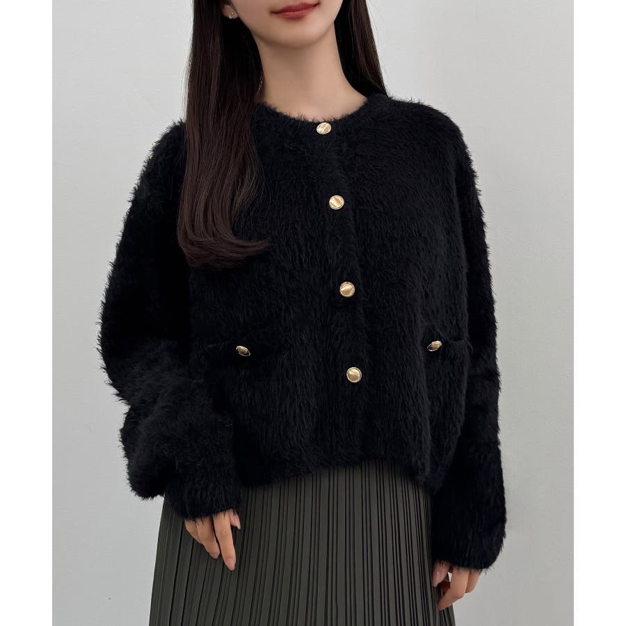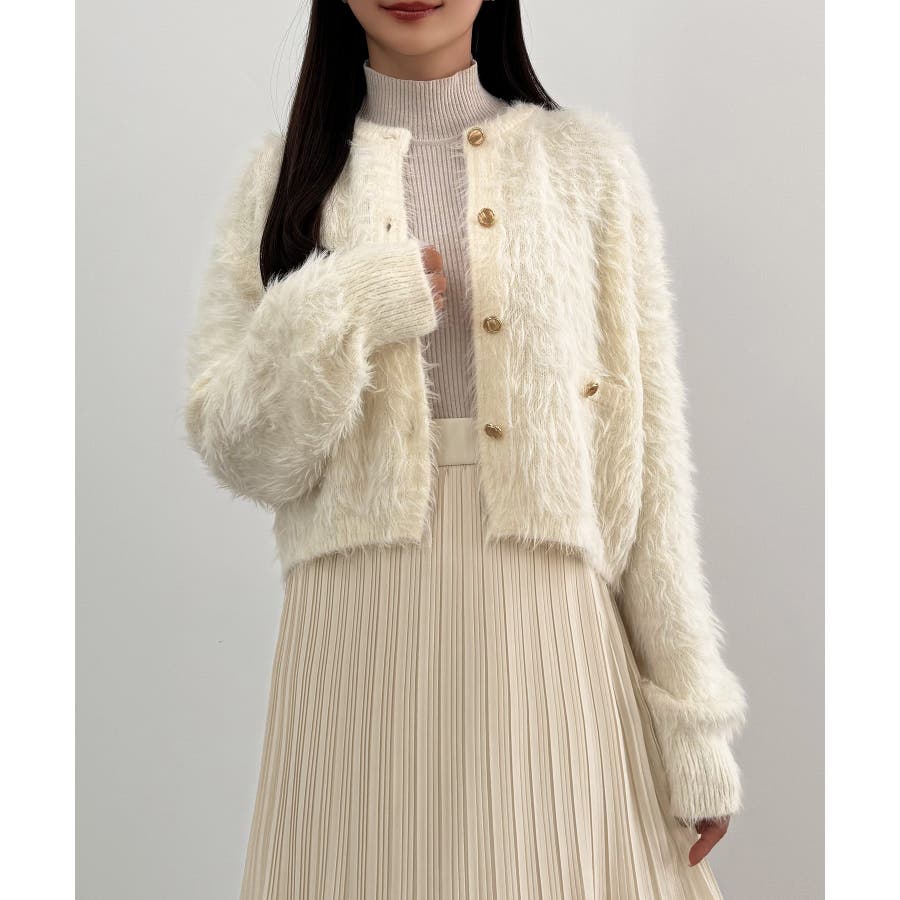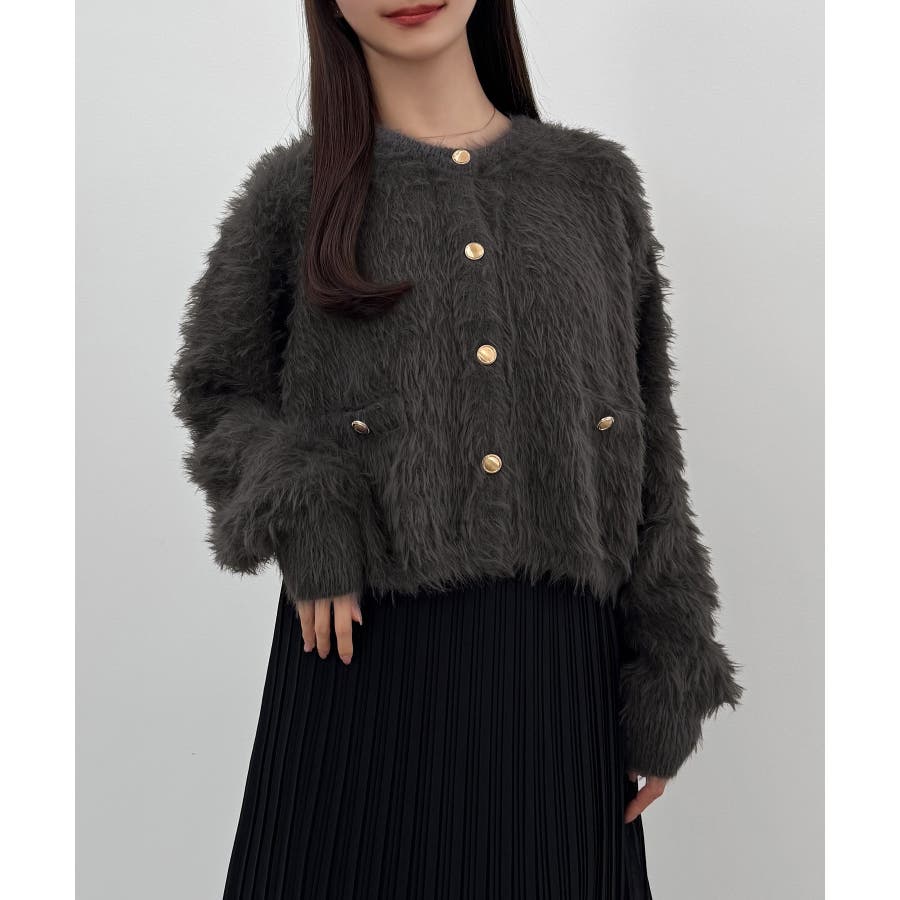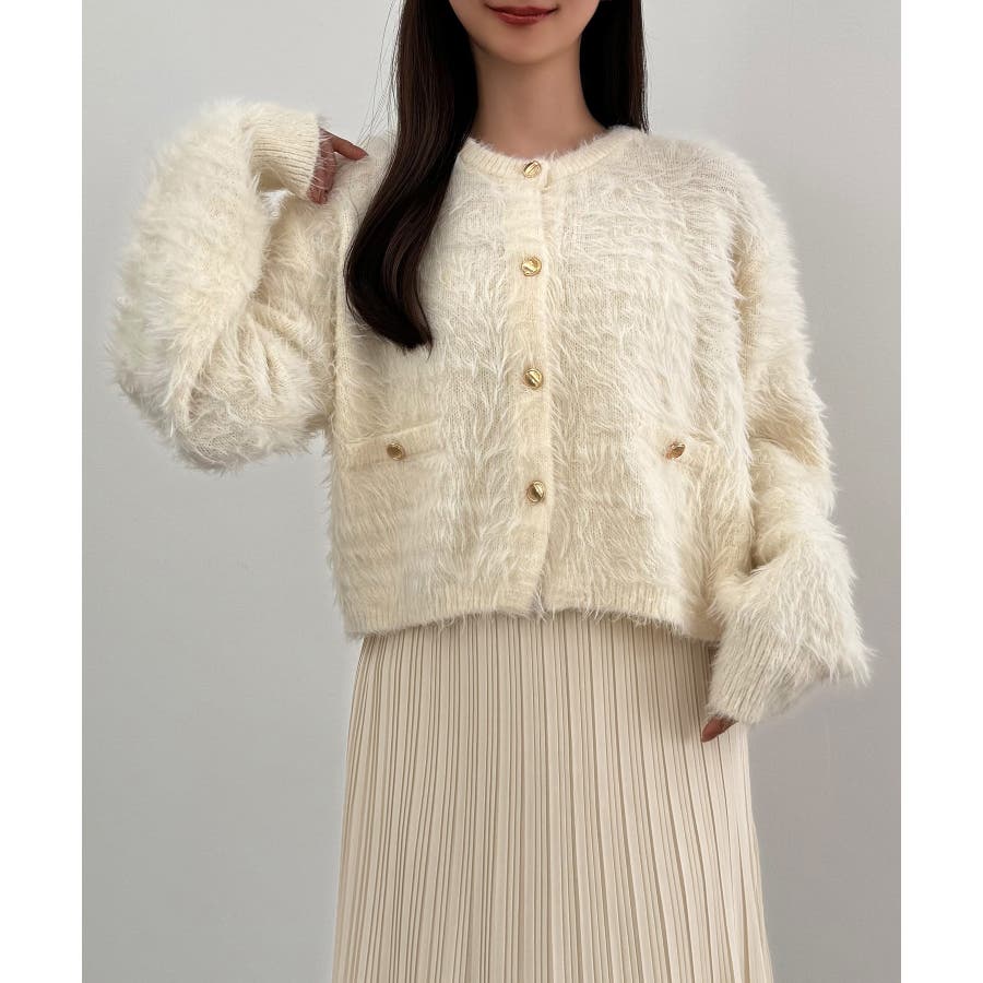CENEA (薄手)金ボタンシャギーニットカーディガン+プリーツスカートset