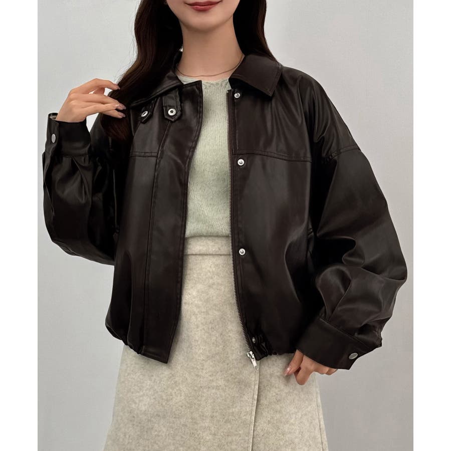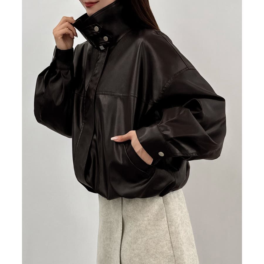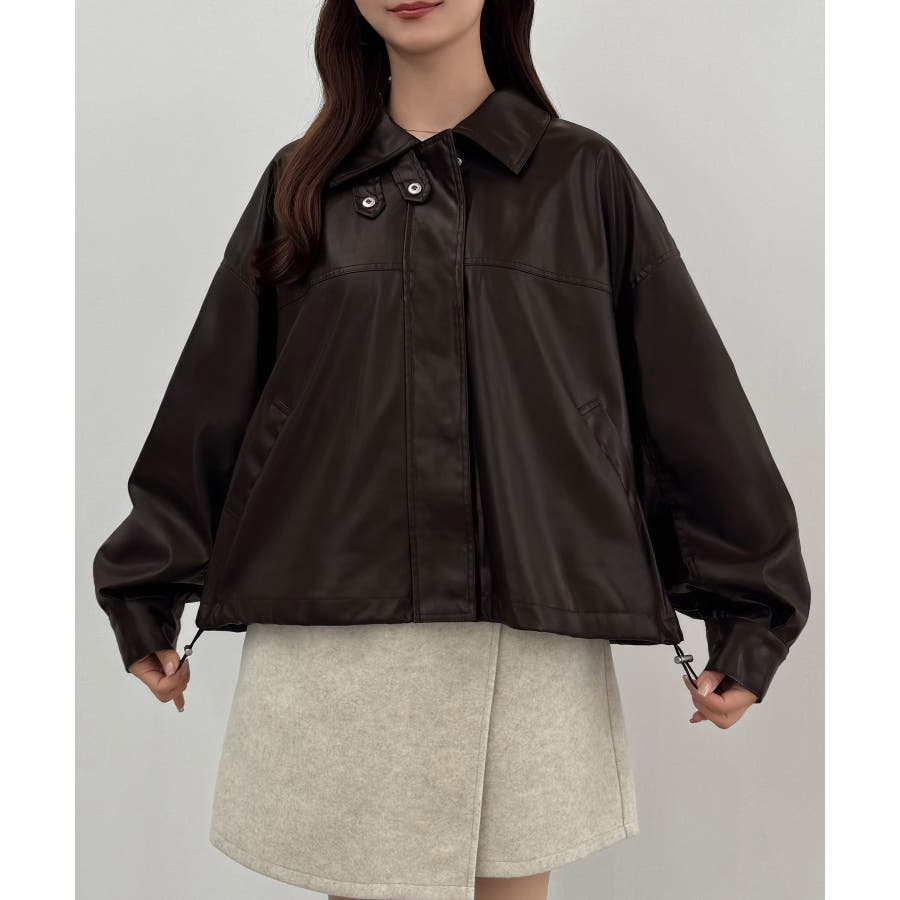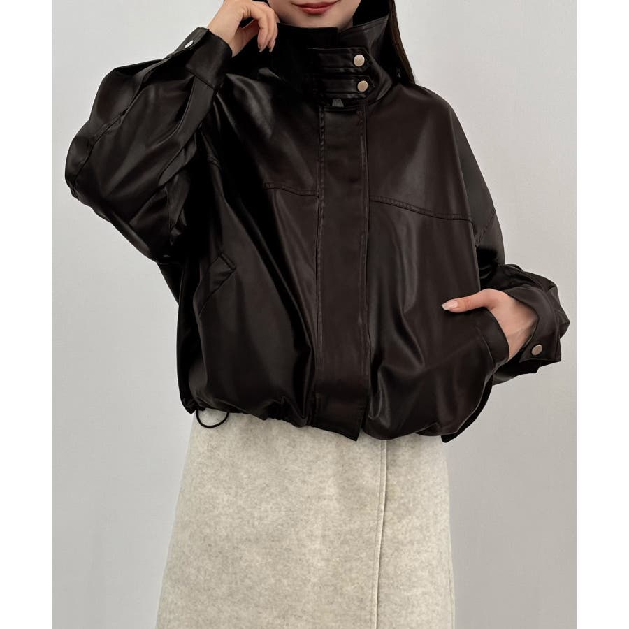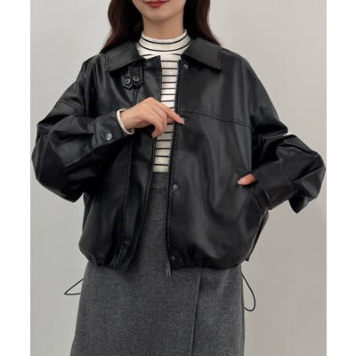 CENEA 2wayカラーPUレザーブルゾン(光沢素材)