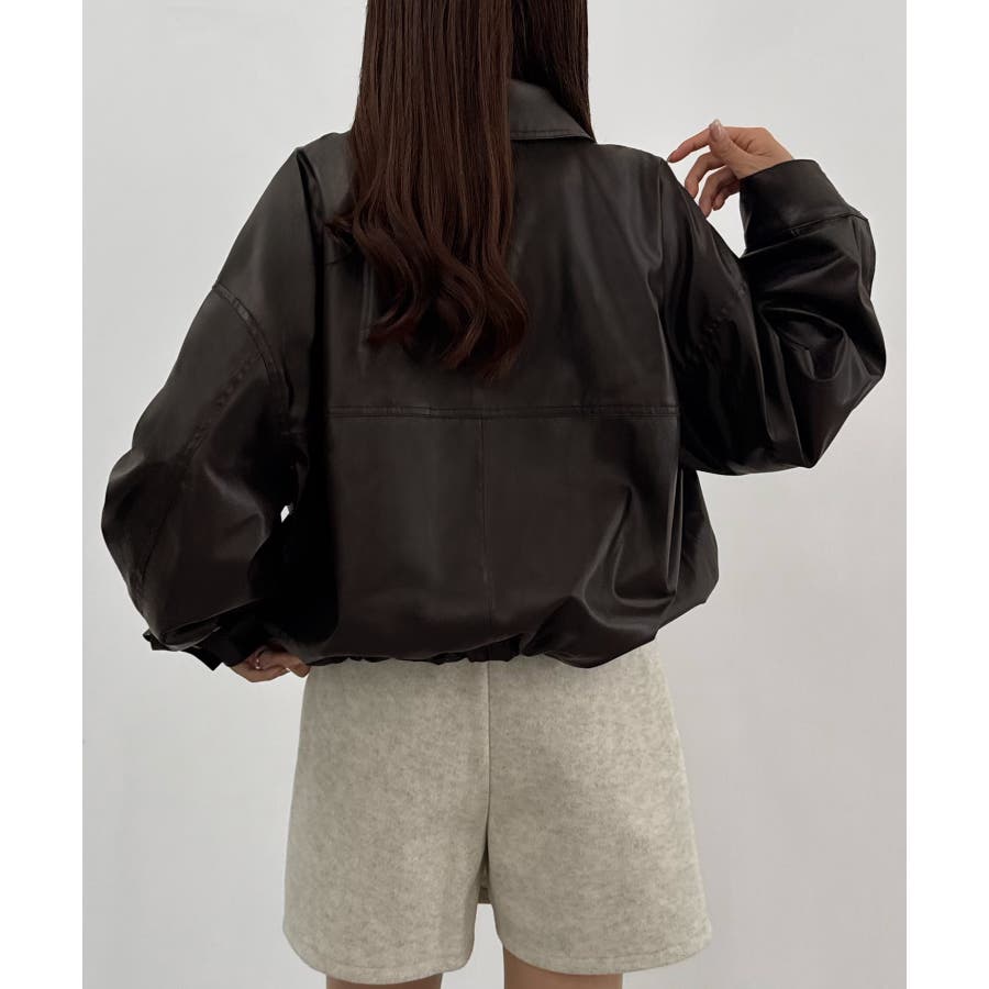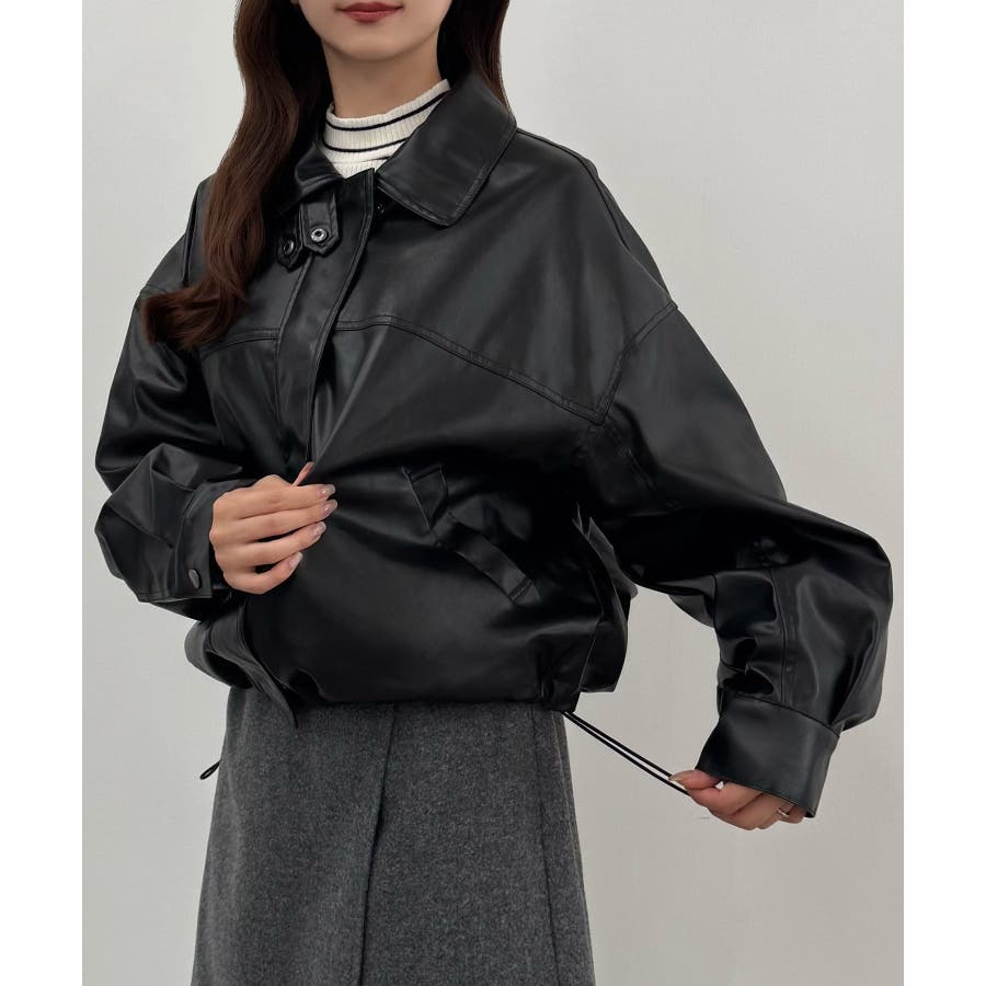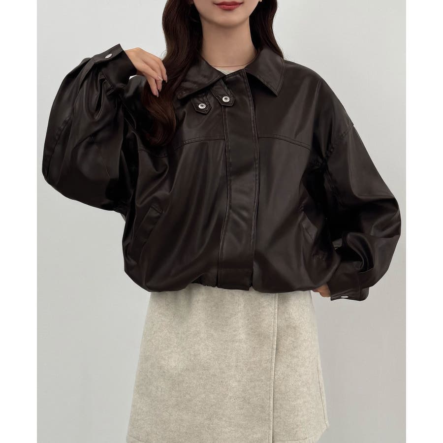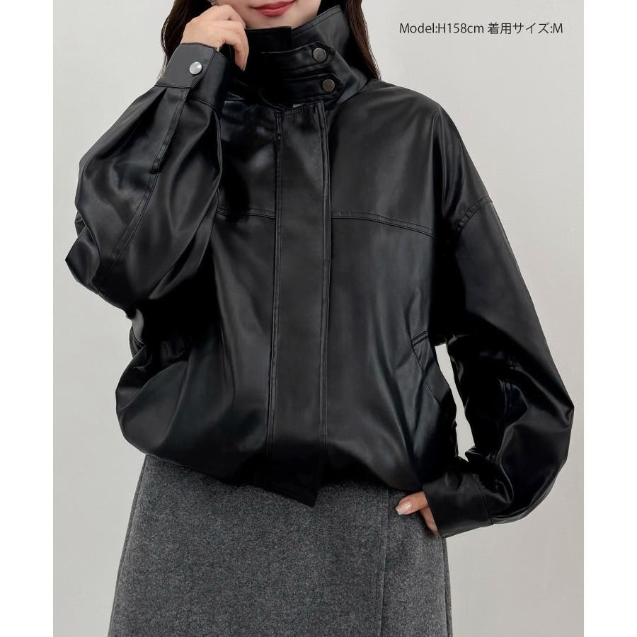CENEA 2wayカラーPUレザーブルゾン(光沢素材)