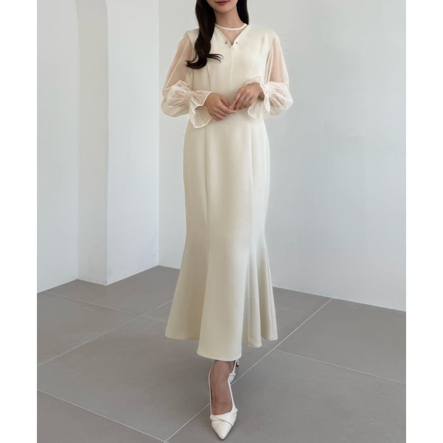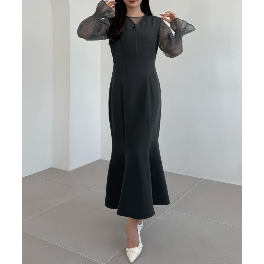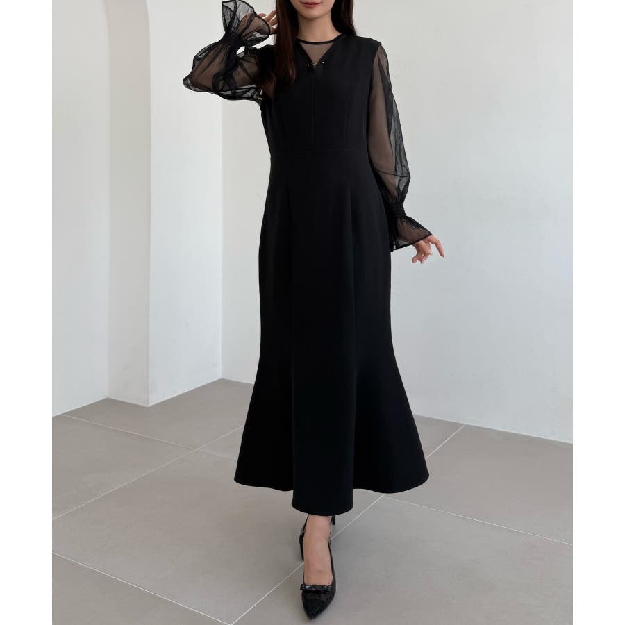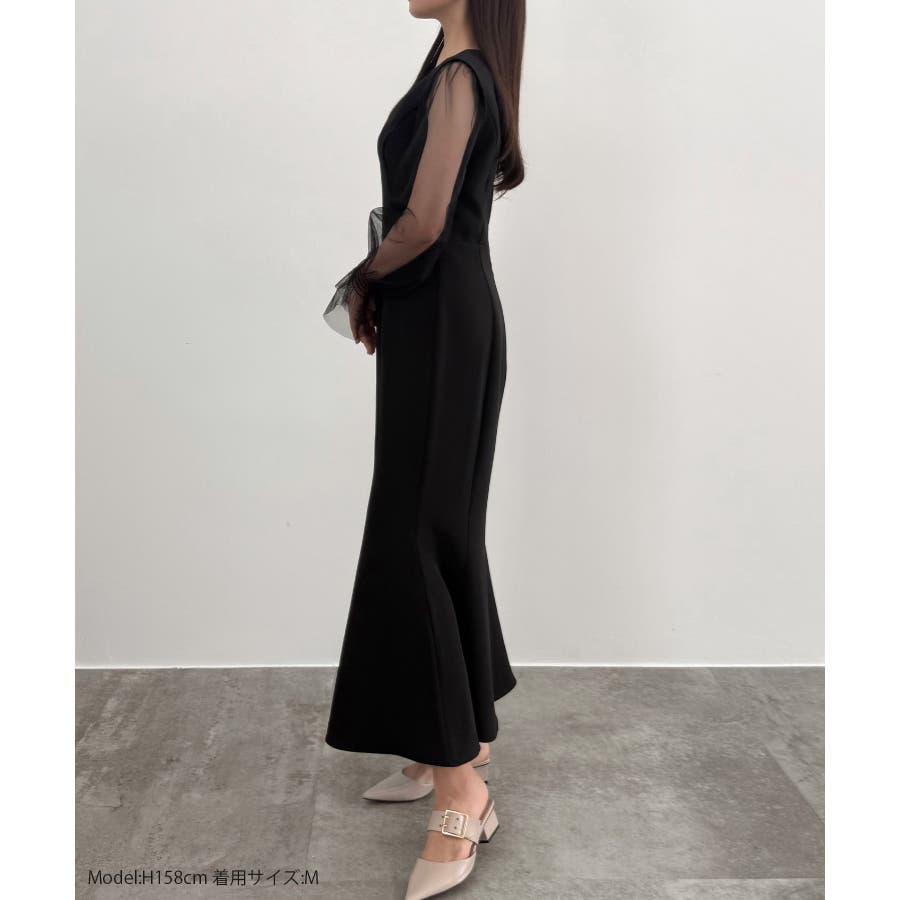 CENEA チュールシアーブラウス+VネックマーメイドワンピースSET