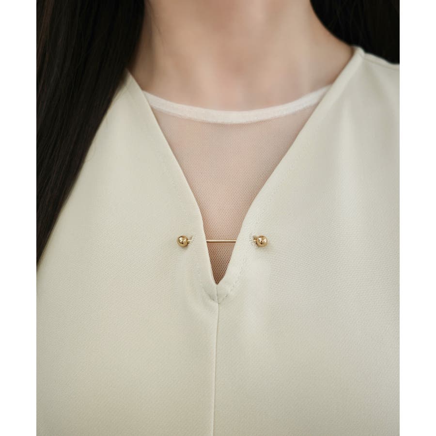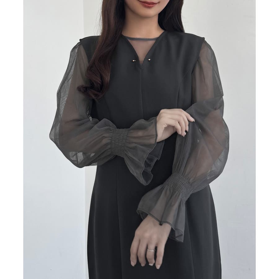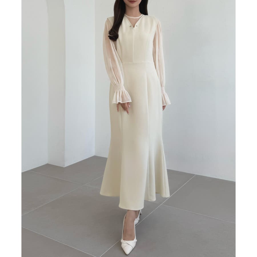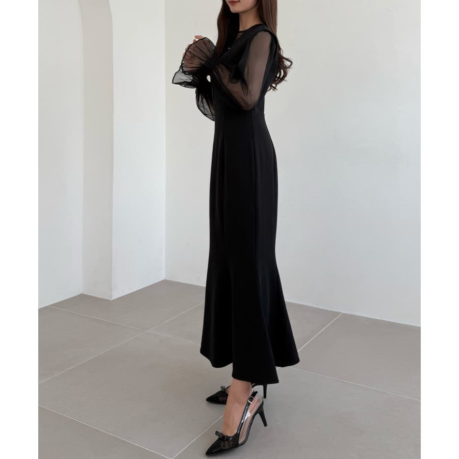 CENEA チュールシアーブラウス+VネックマーメイドワンピースSET