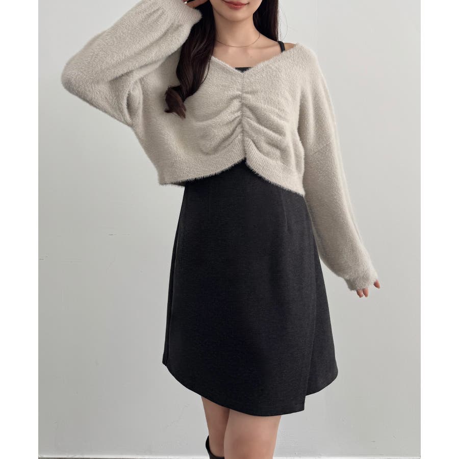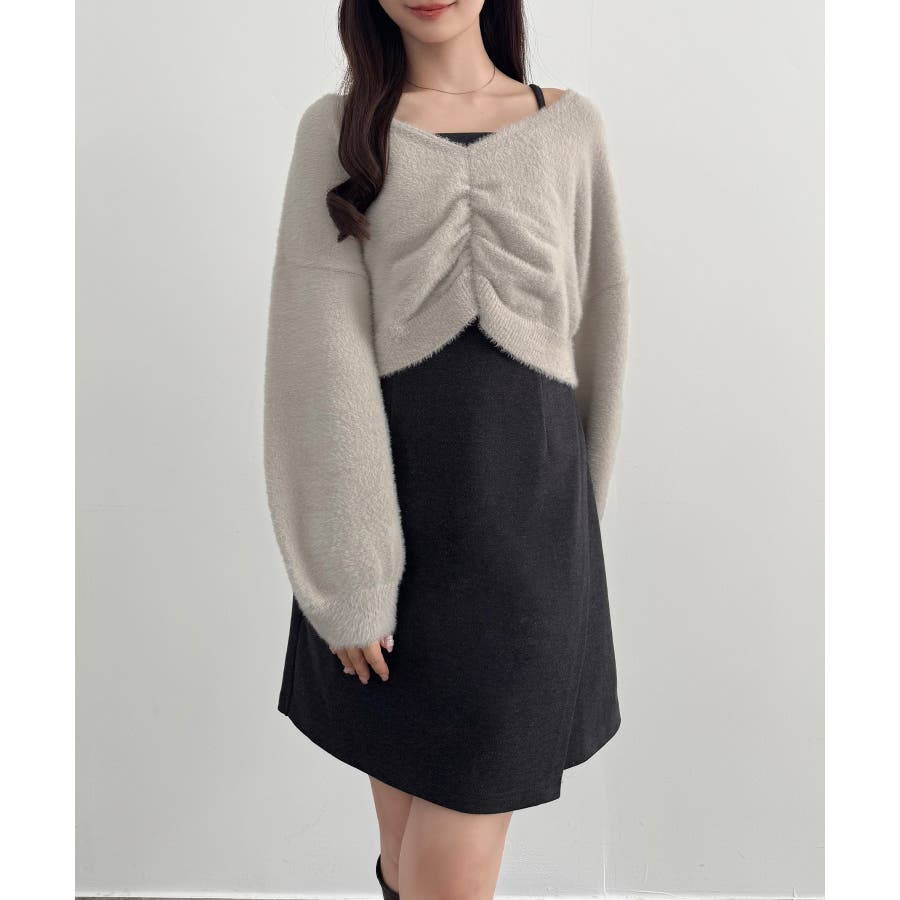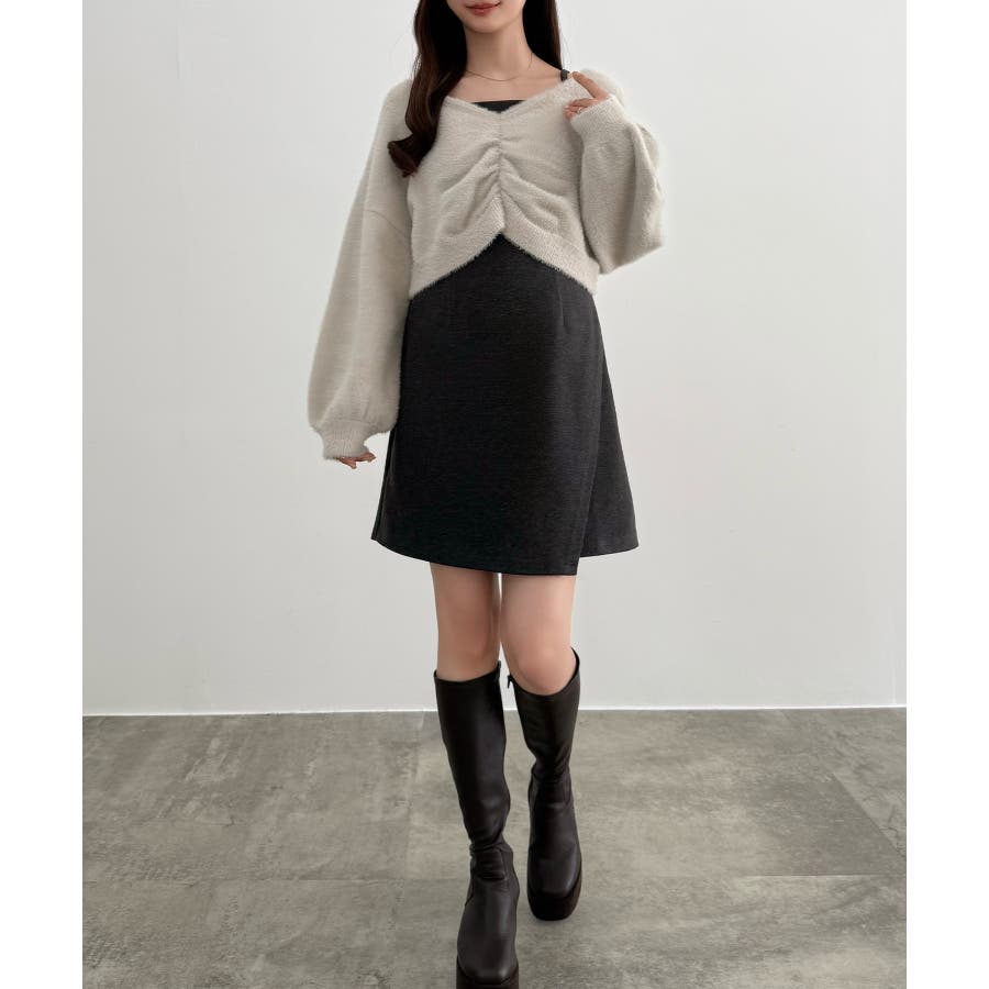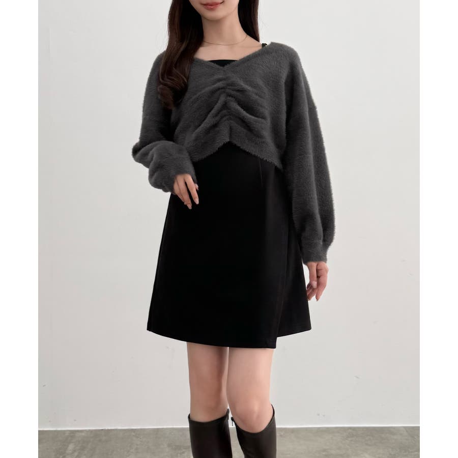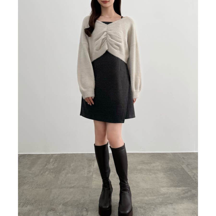 CENEA フロントギャザーシャギーニット+ミニキャミワンピース