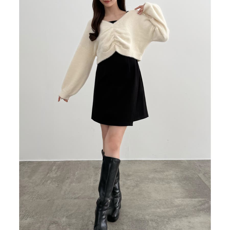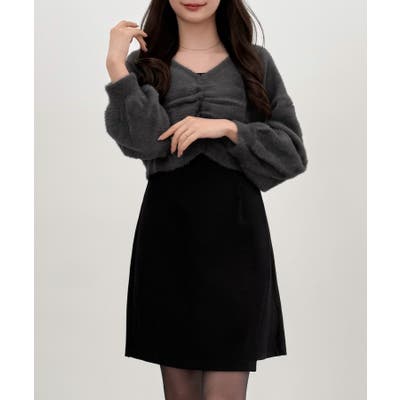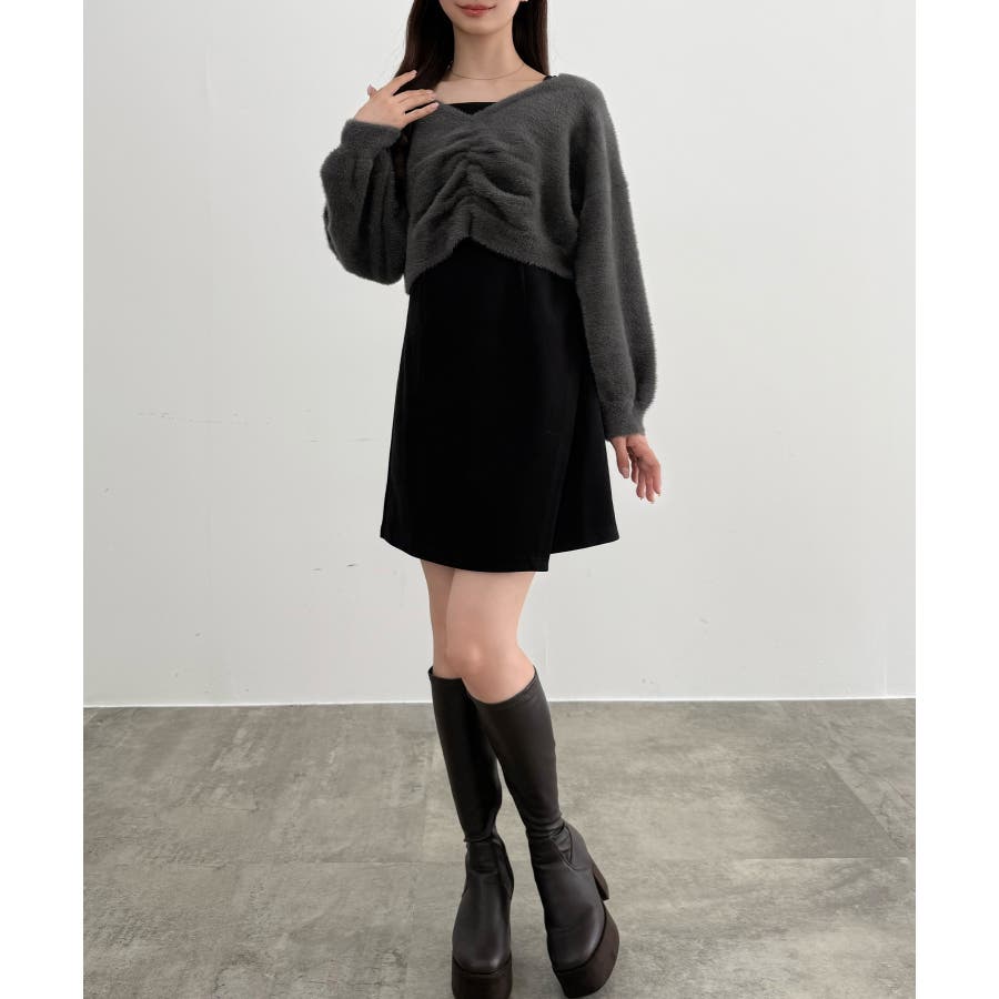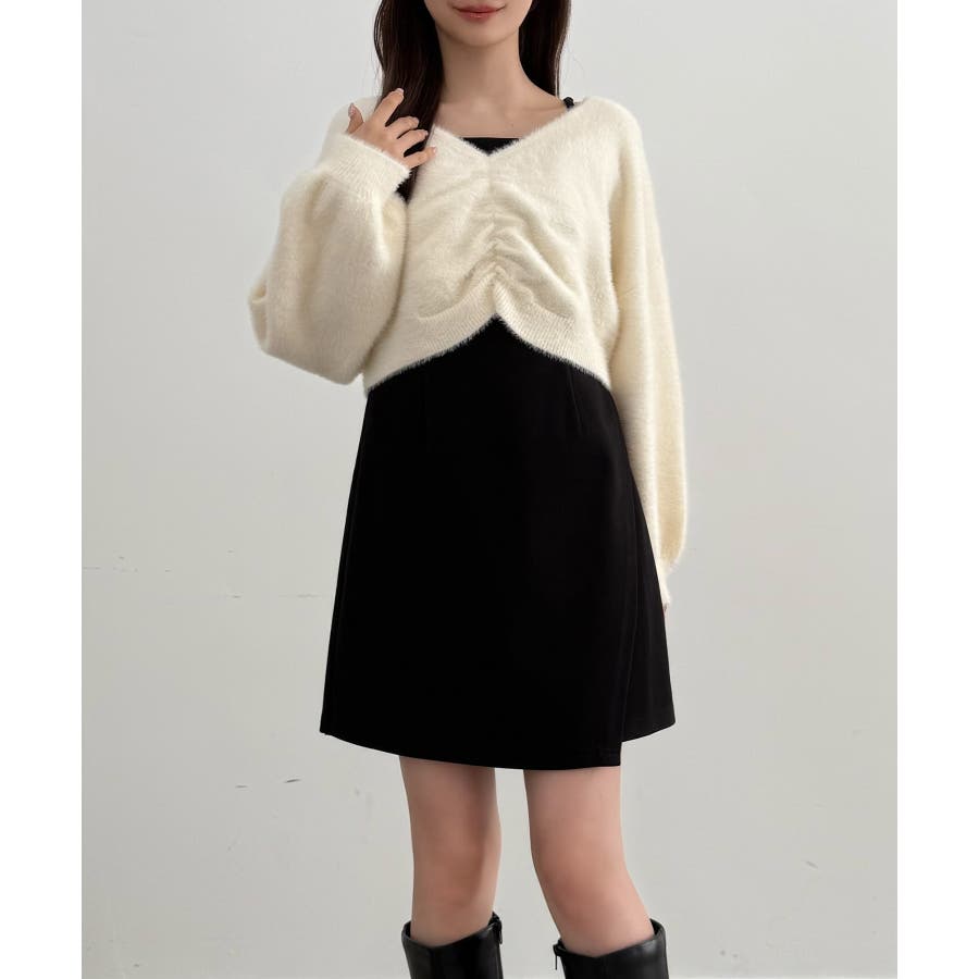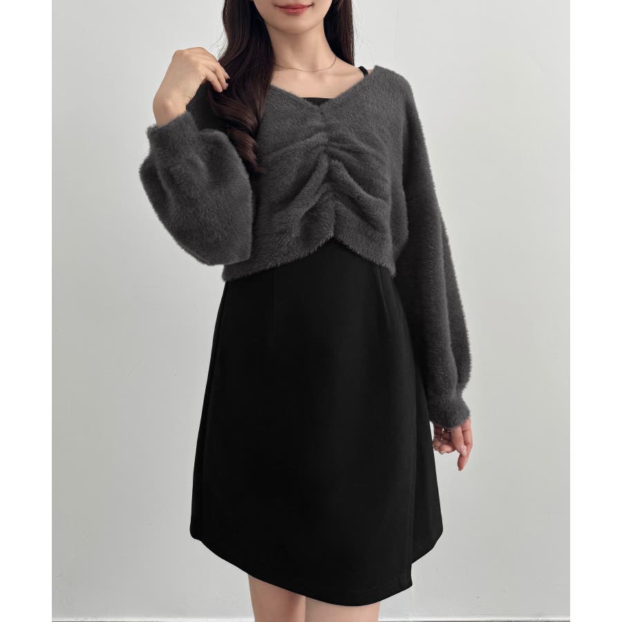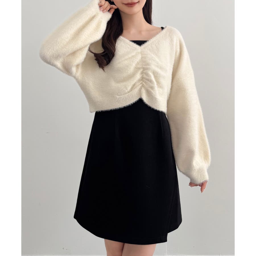 CENEA フロントギャザーシャギーニット+ミニキャミワンピース