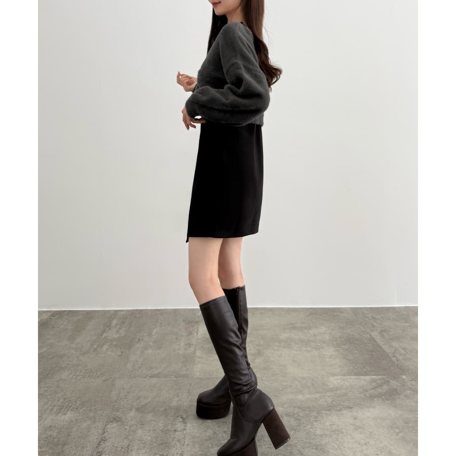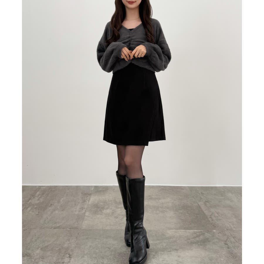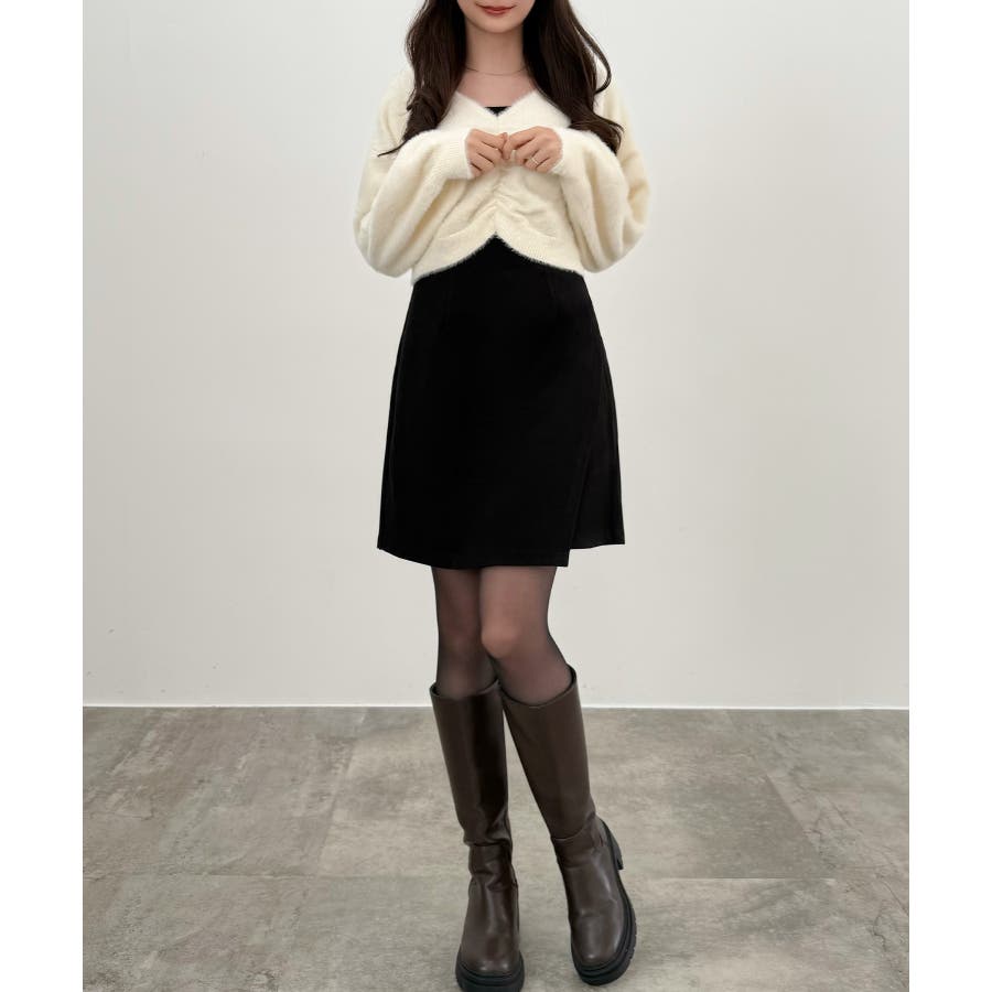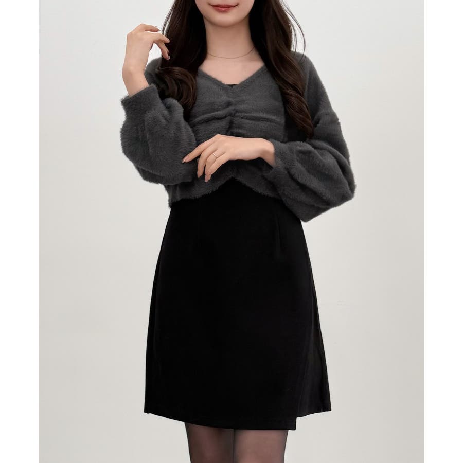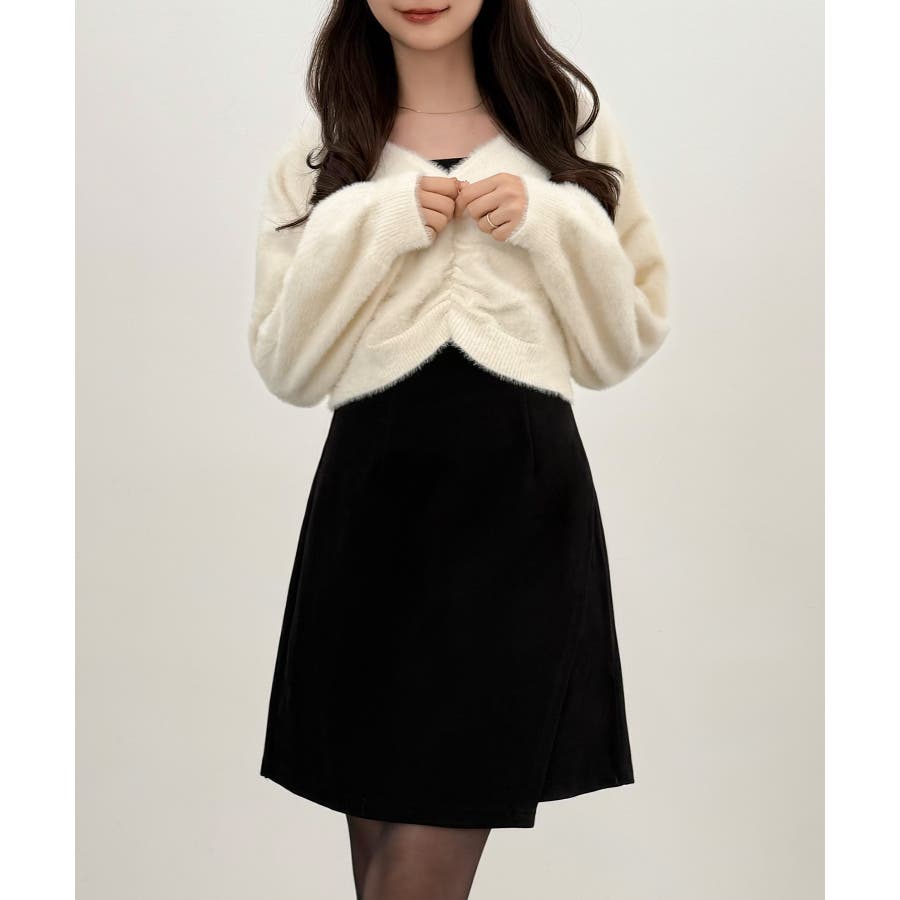 CENEA フロントギャザーシャギーニット+ミニキャミワンピース
