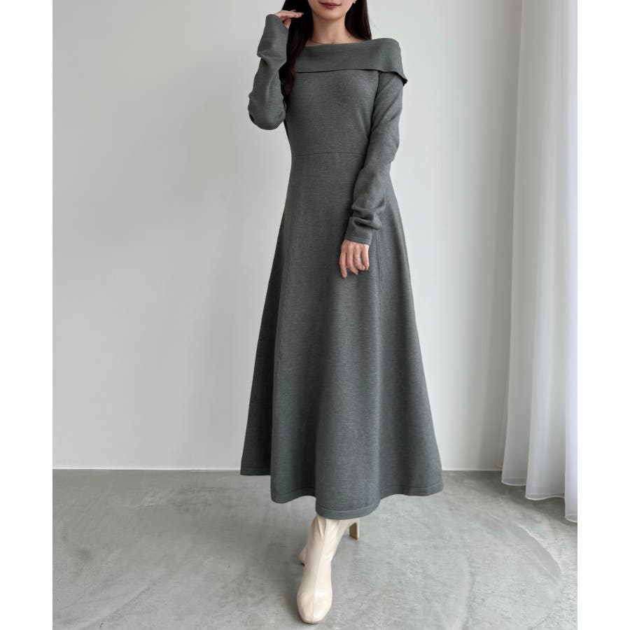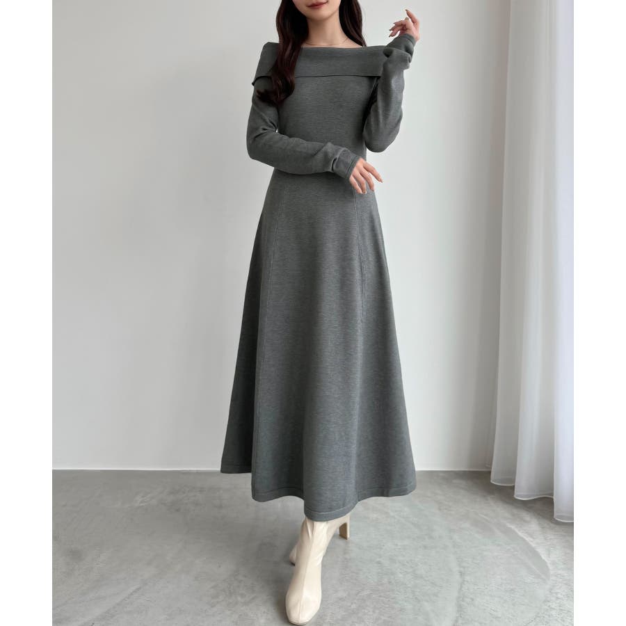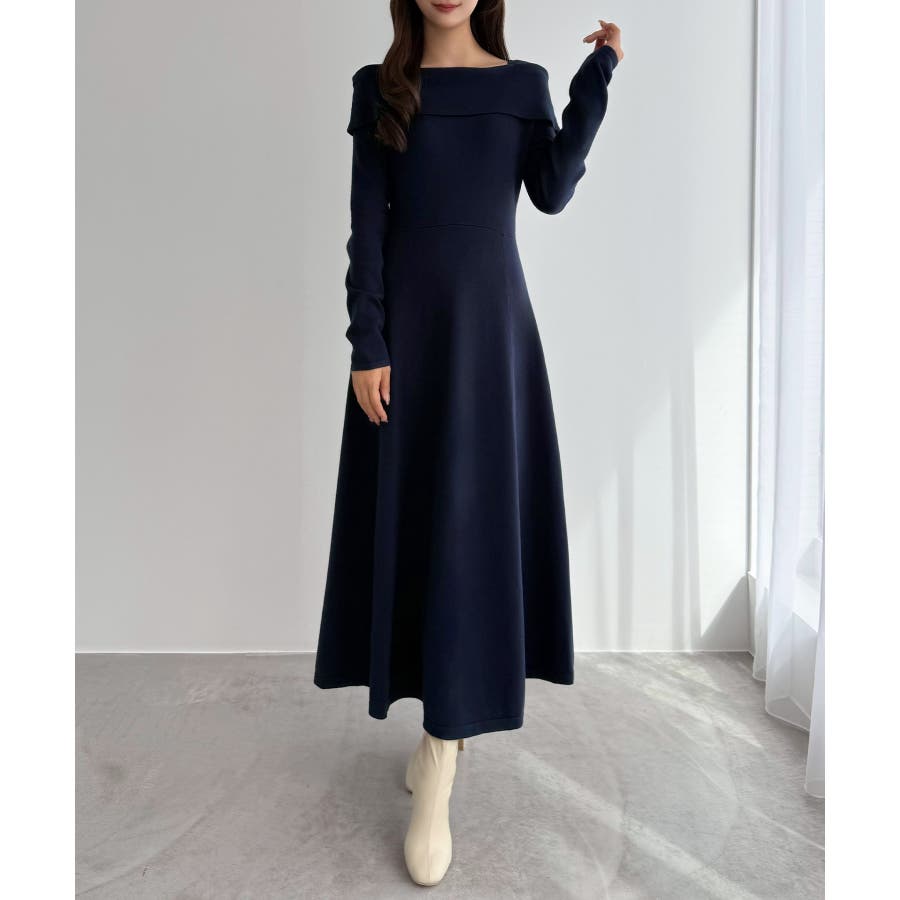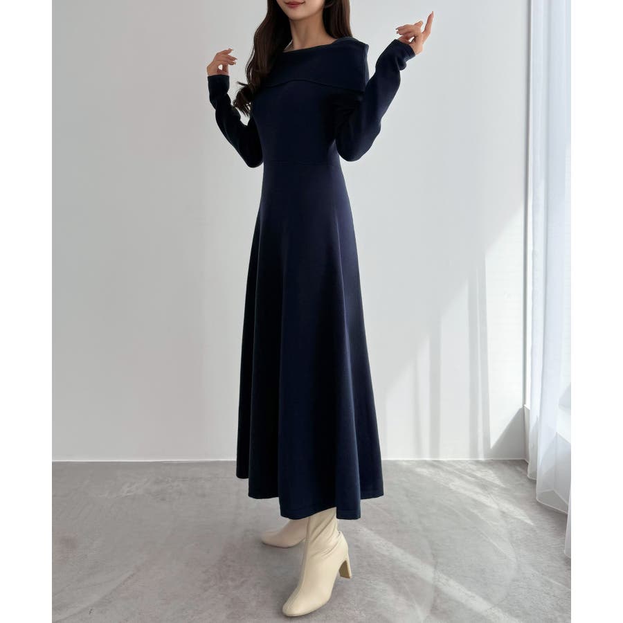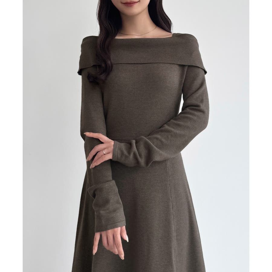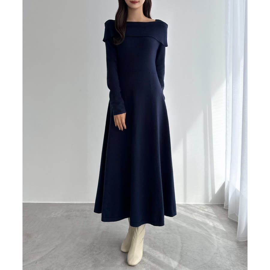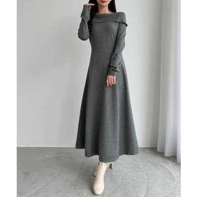 CENEA オフショル風スクエアネックロングニットワンピ