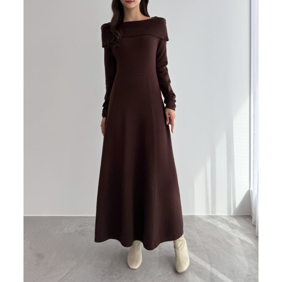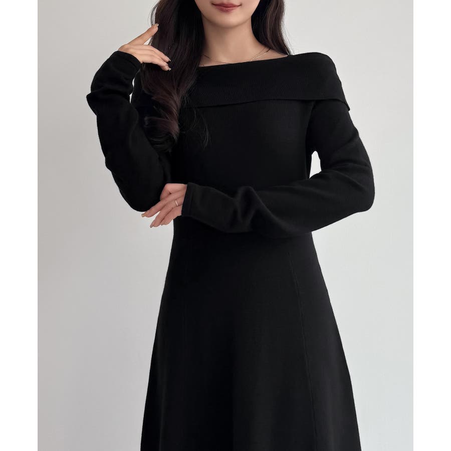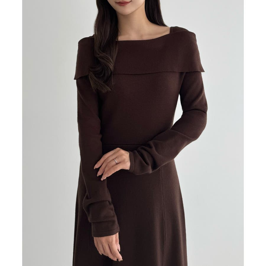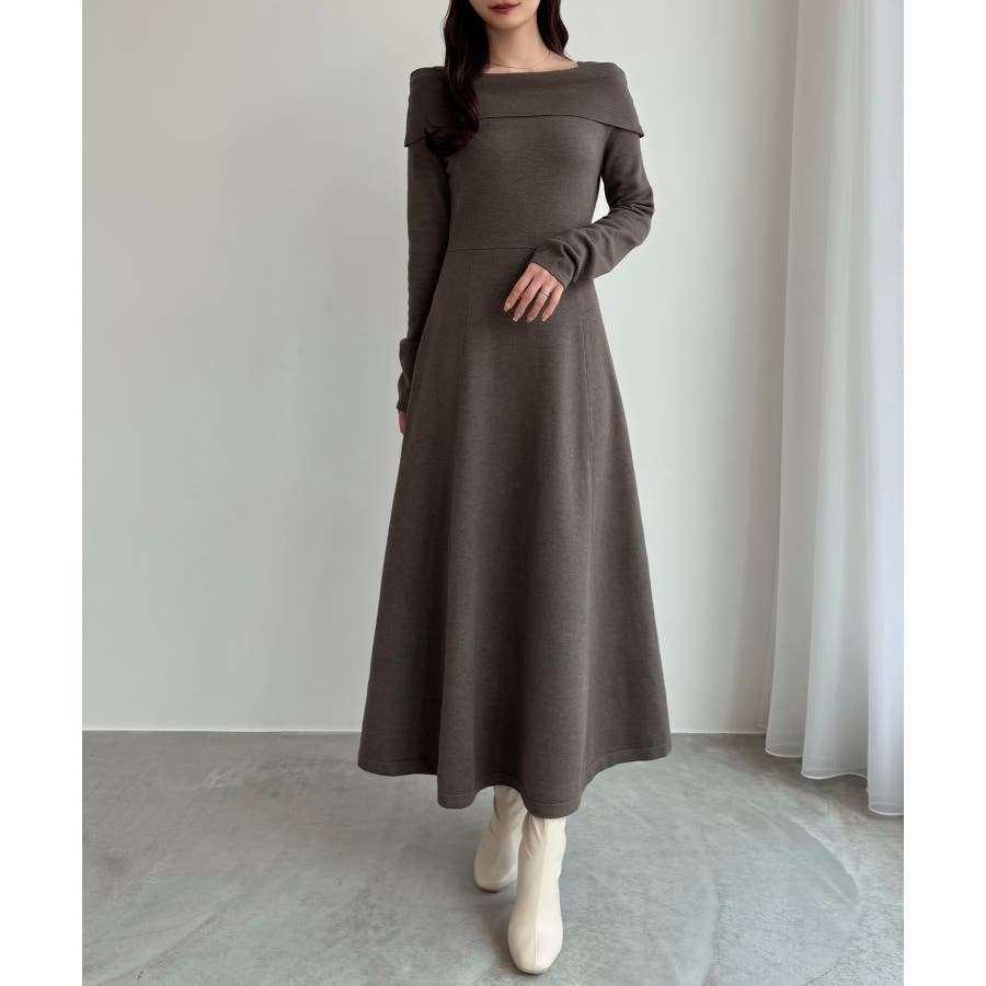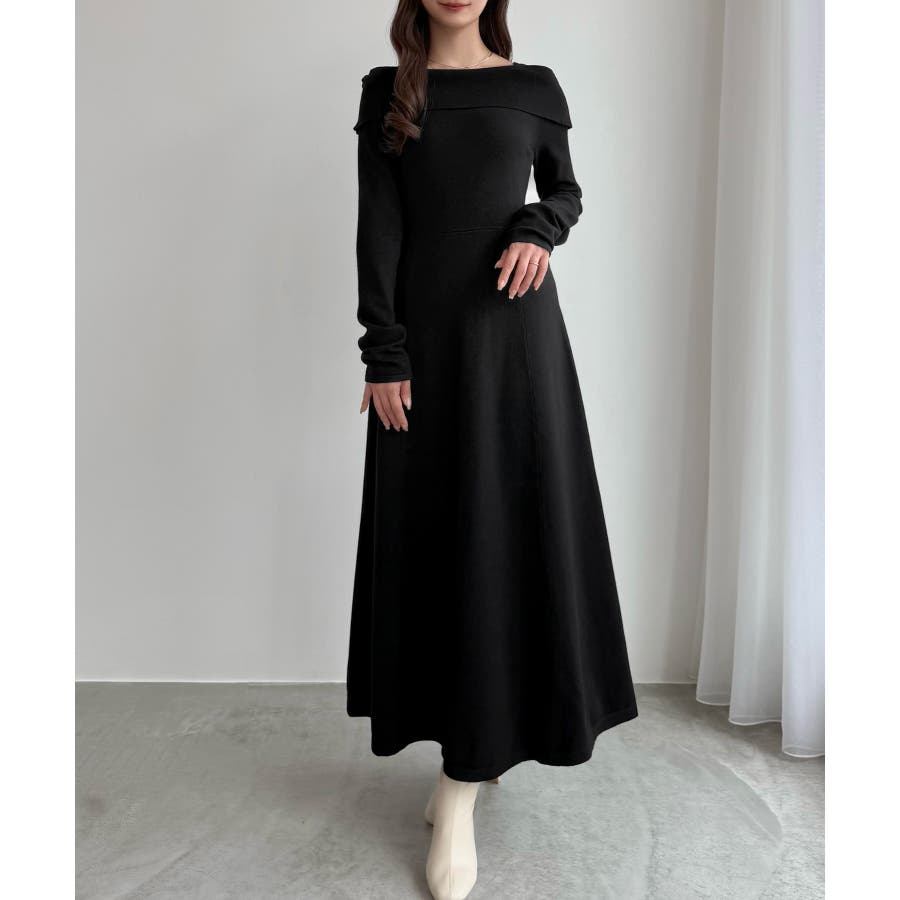 CENEA オフショル風スクエアネックロングニットワンピ