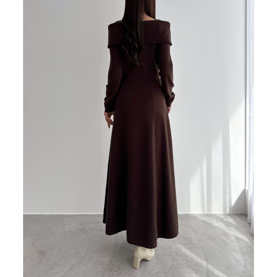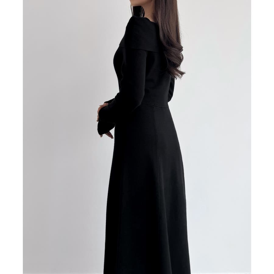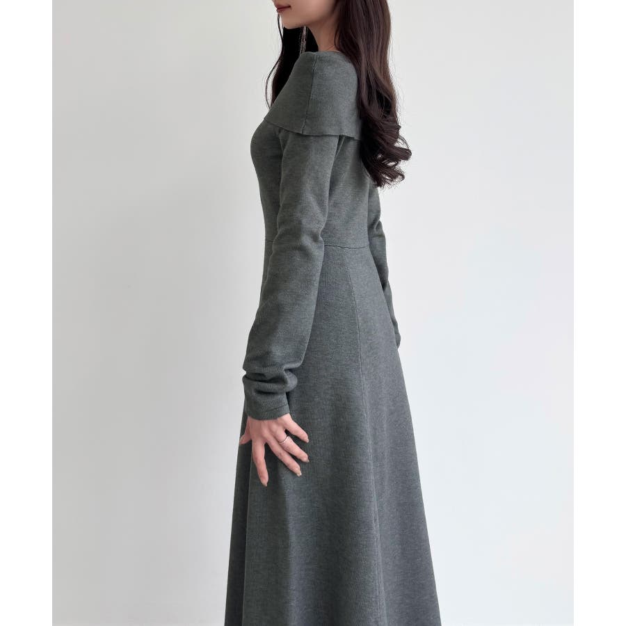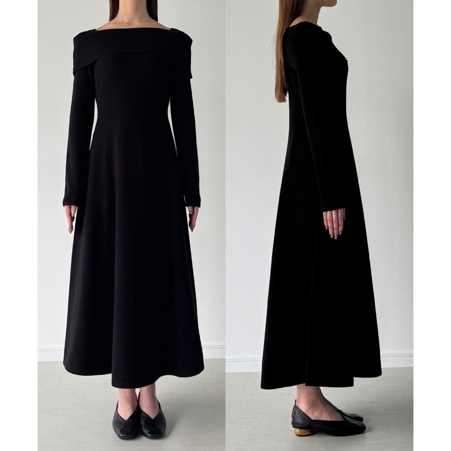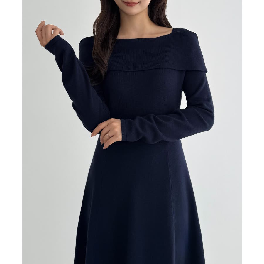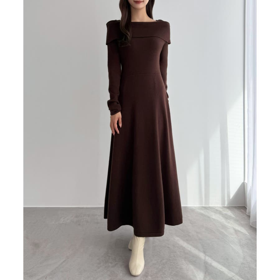 CENEA オフショル風スクエアネックロングニットワンピ