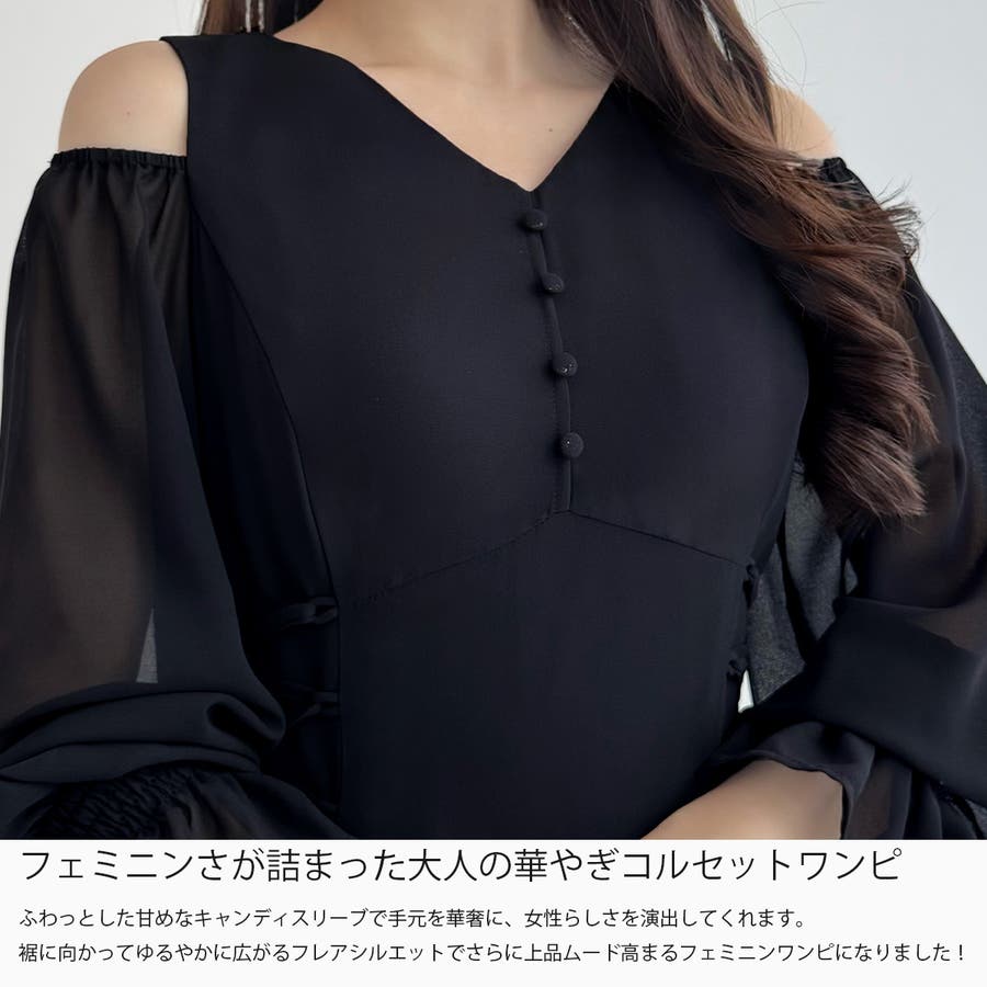 CENEA キャンディースリーブシアーコルセットワンピース