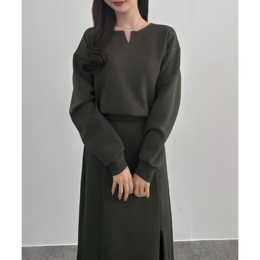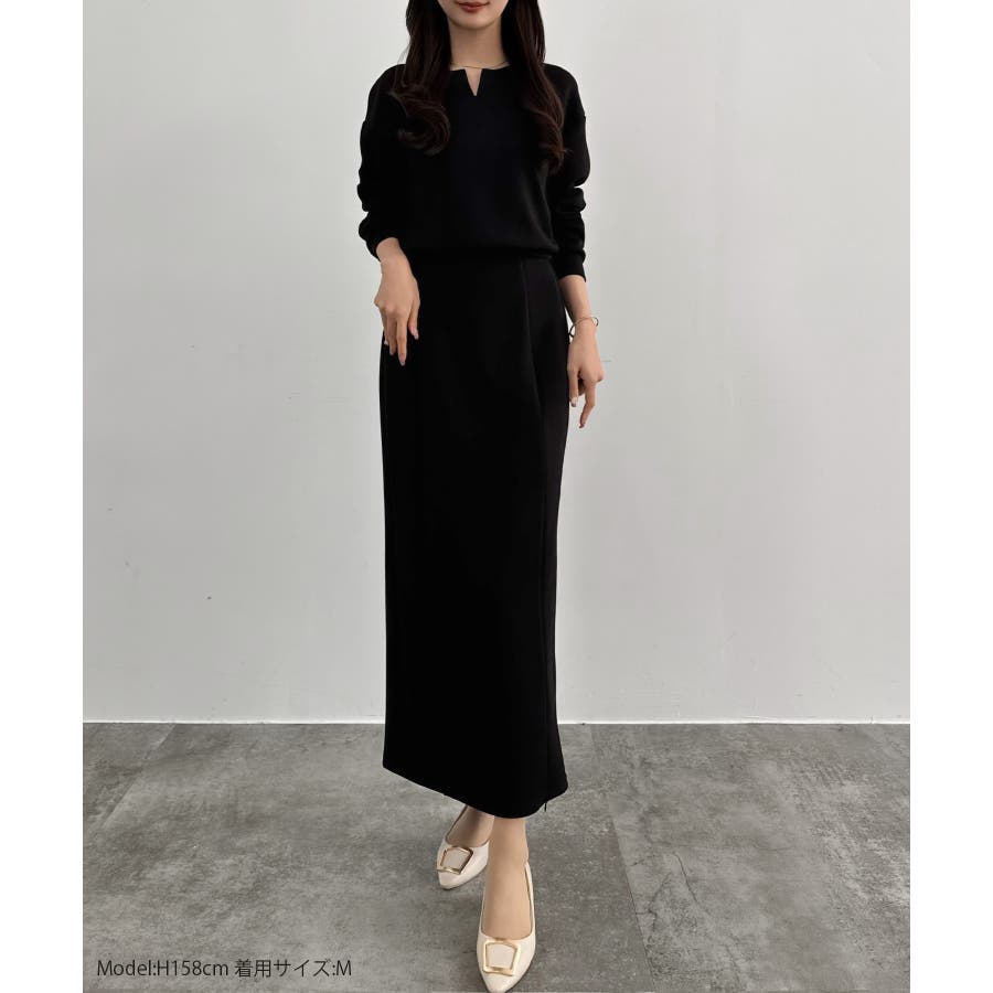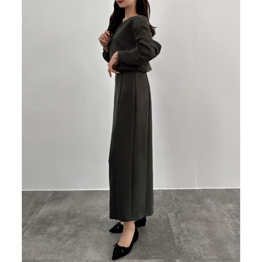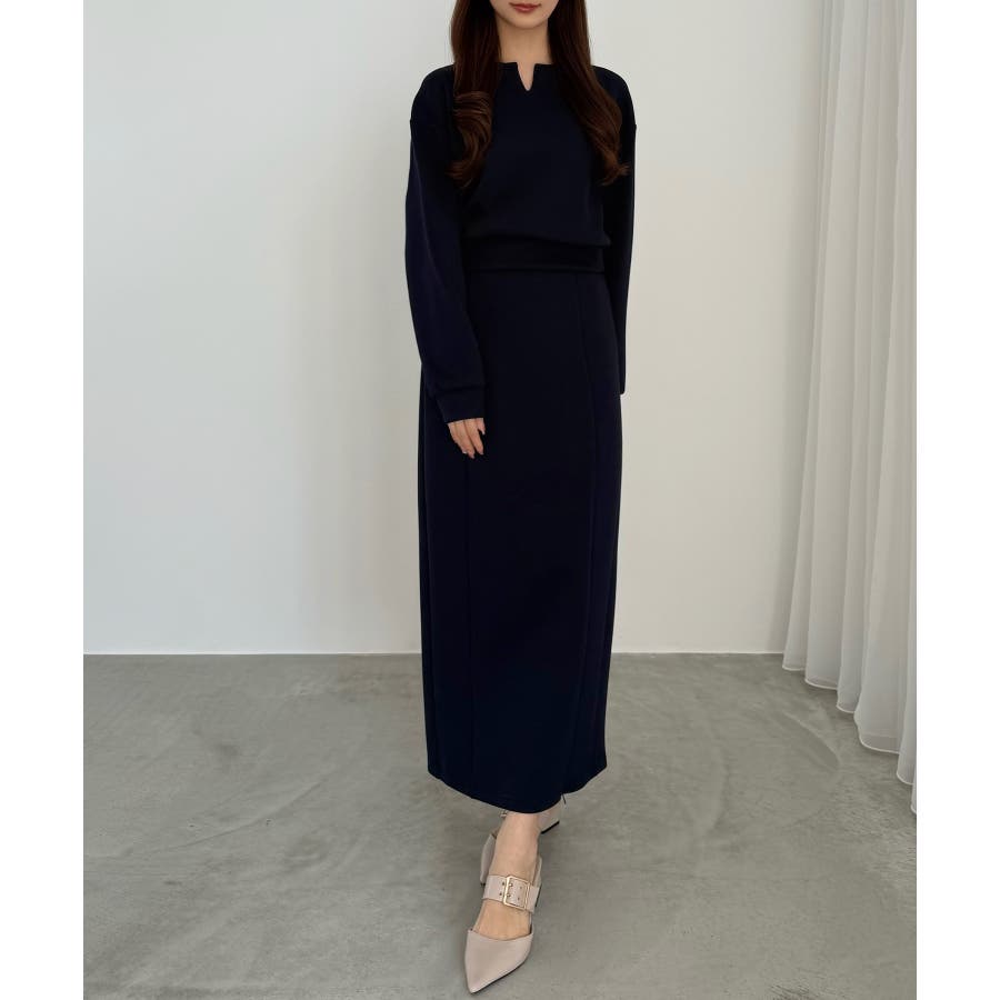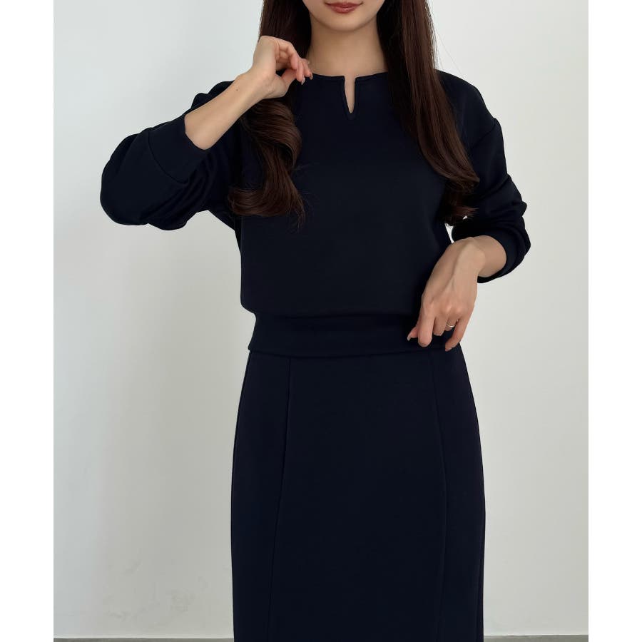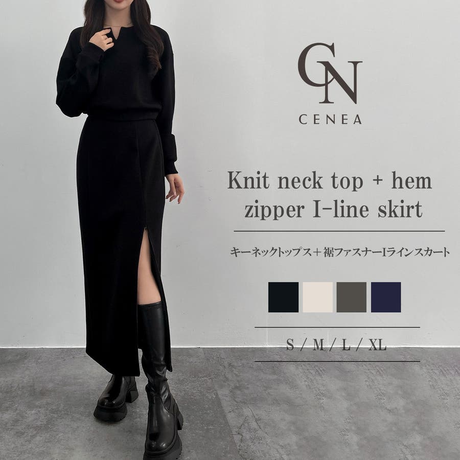CENEA キーネックトップス+裾ファスナーIラインスカート