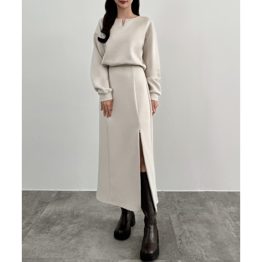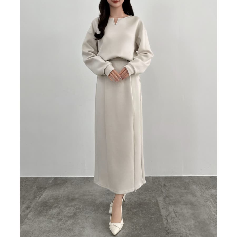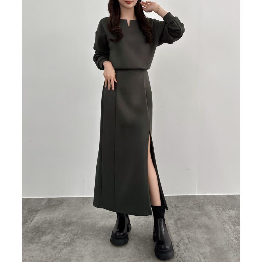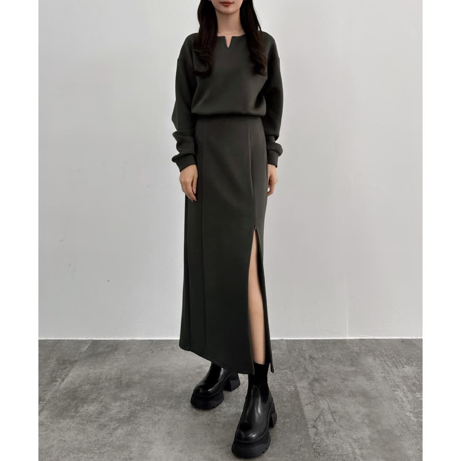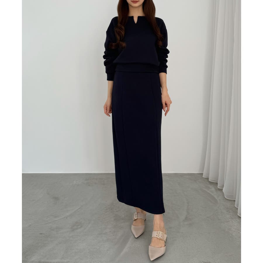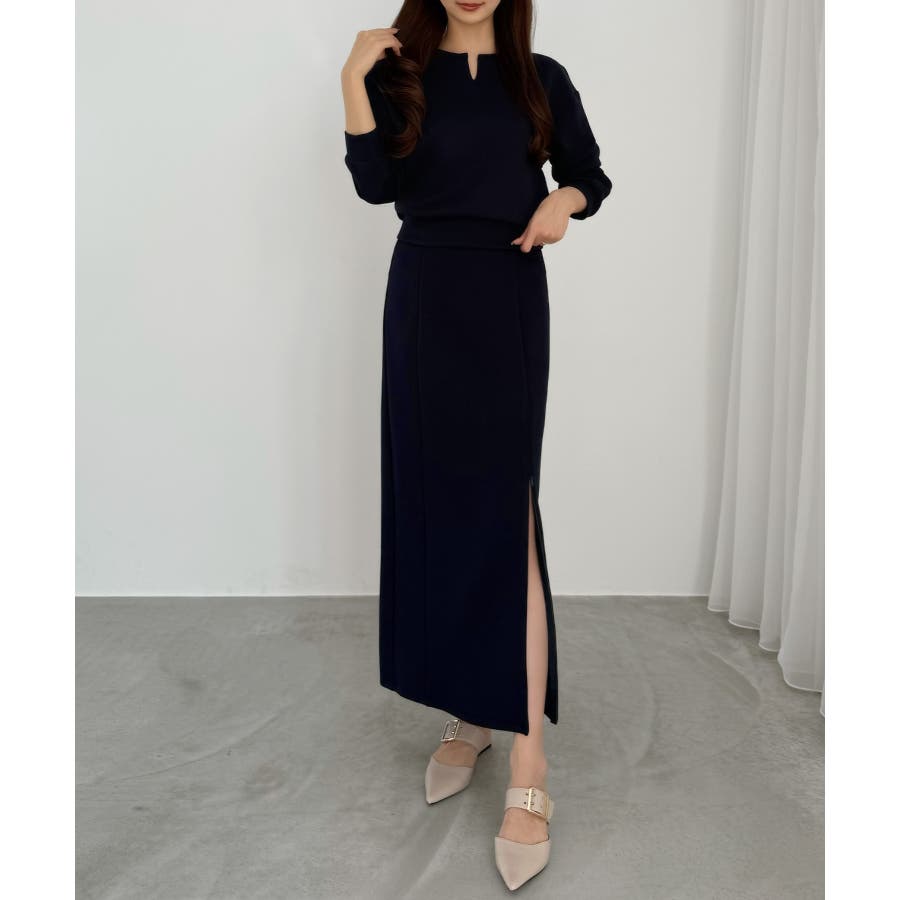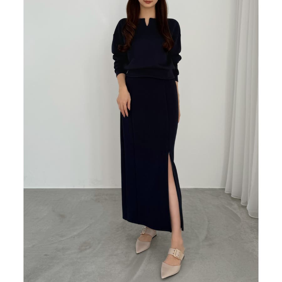 CENEA キーネックトップス+裾ファスナーIラインスカート