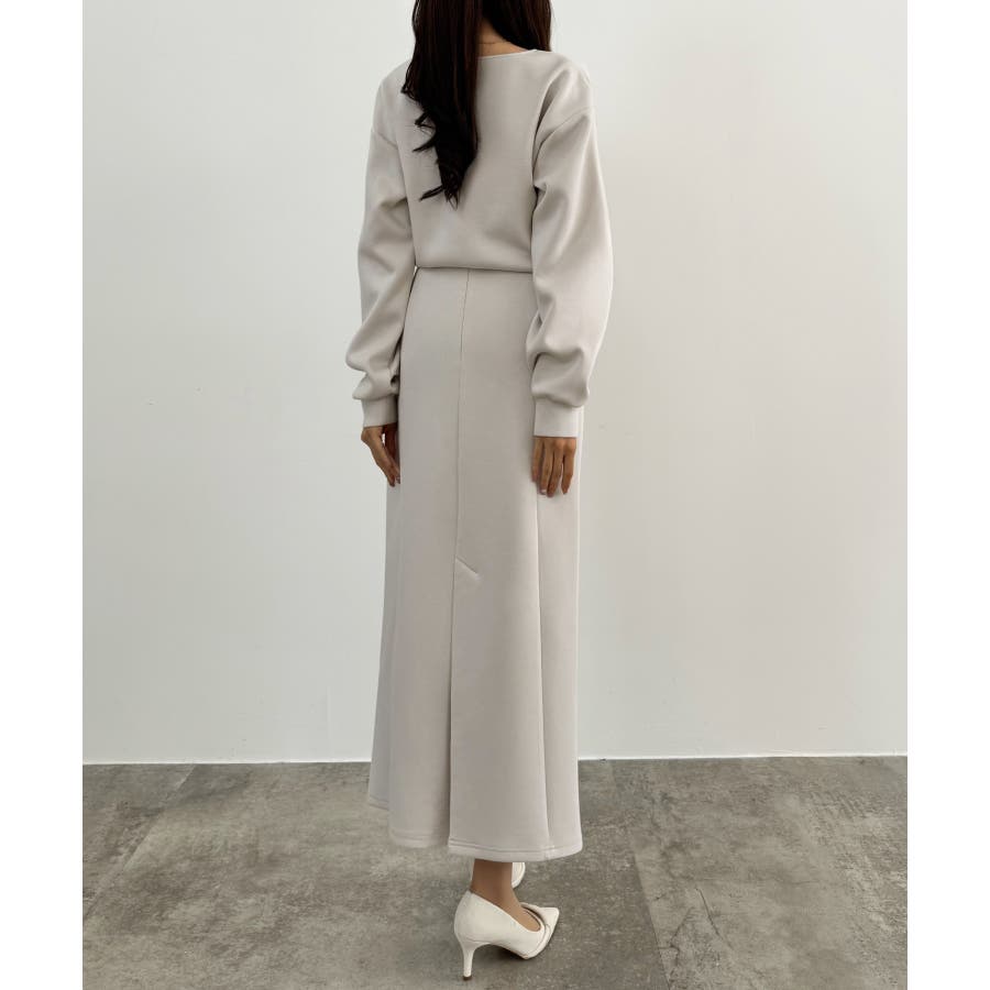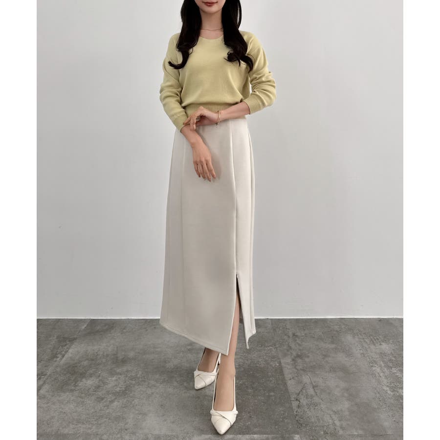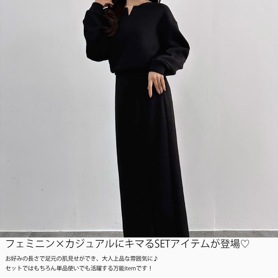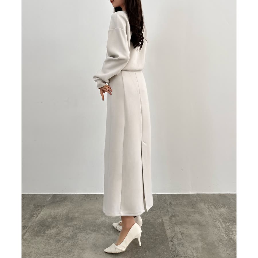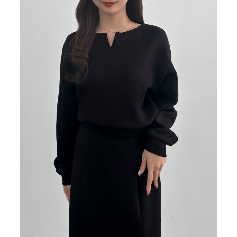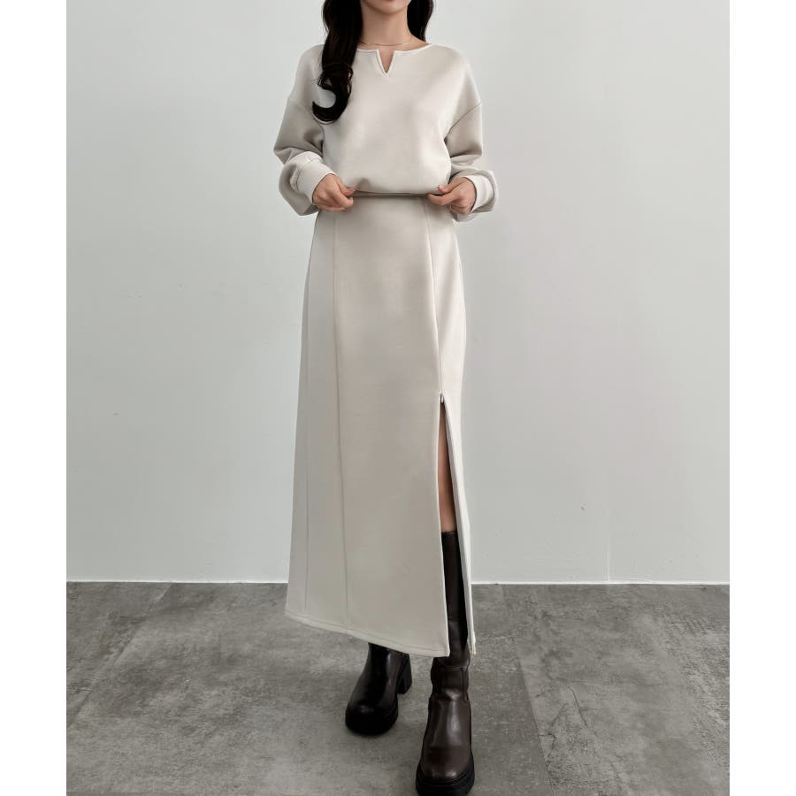 CENEA キーネックトップス+裾ファスナーIラインスカート