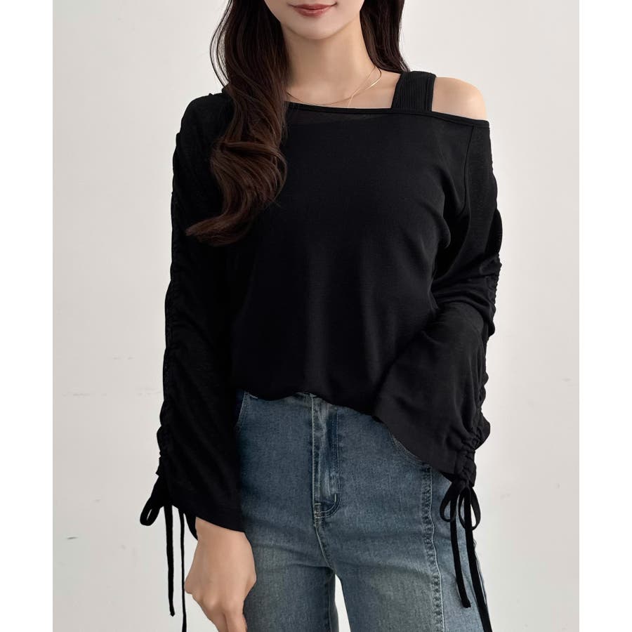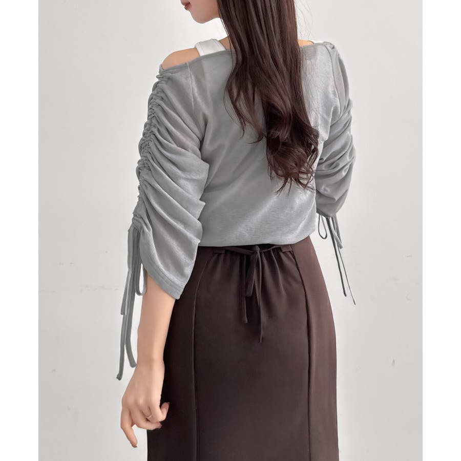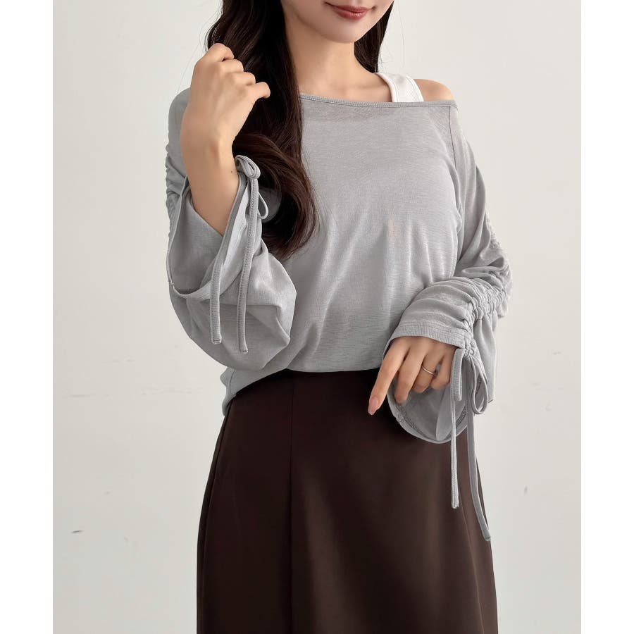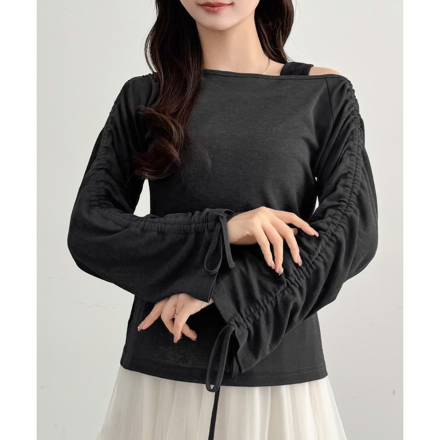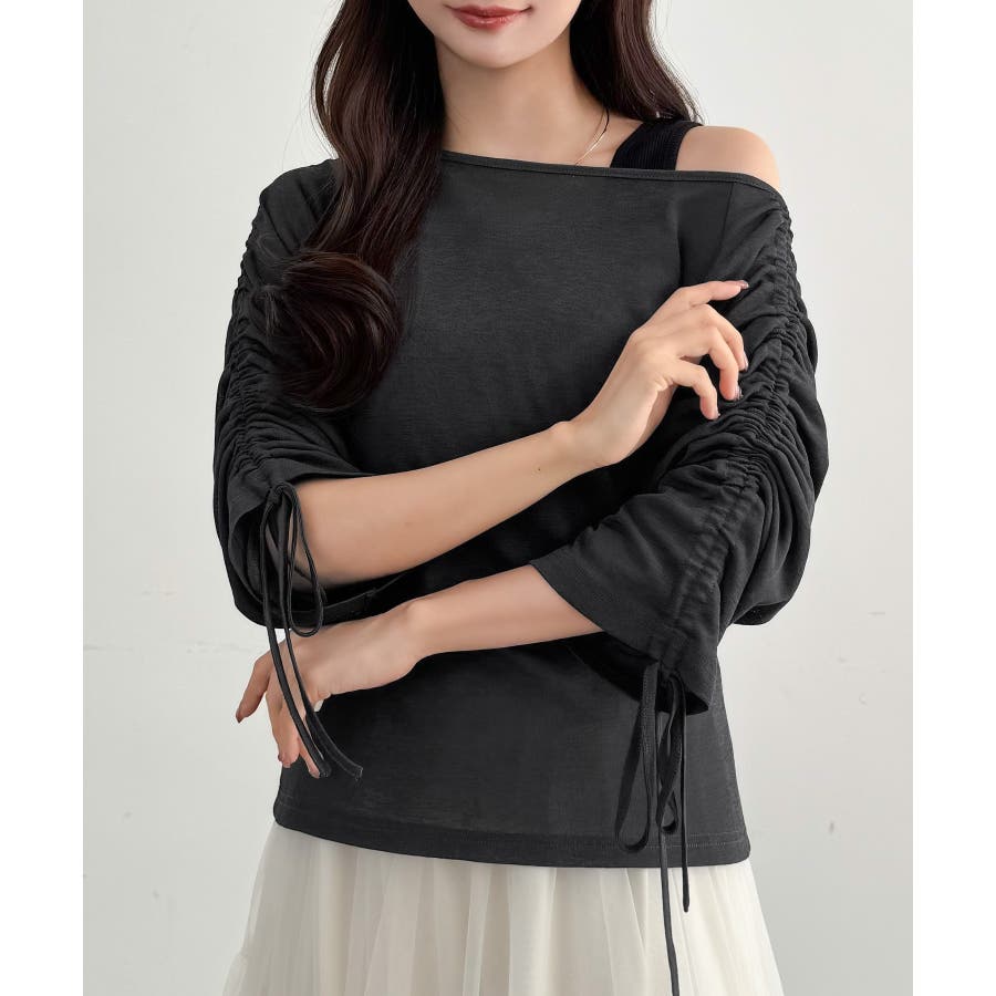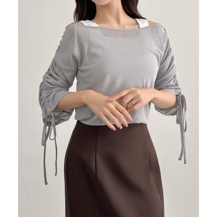 CENEA 【取り外し可能パット付き】袖ドロストカットソー+リブタンクトップSE…